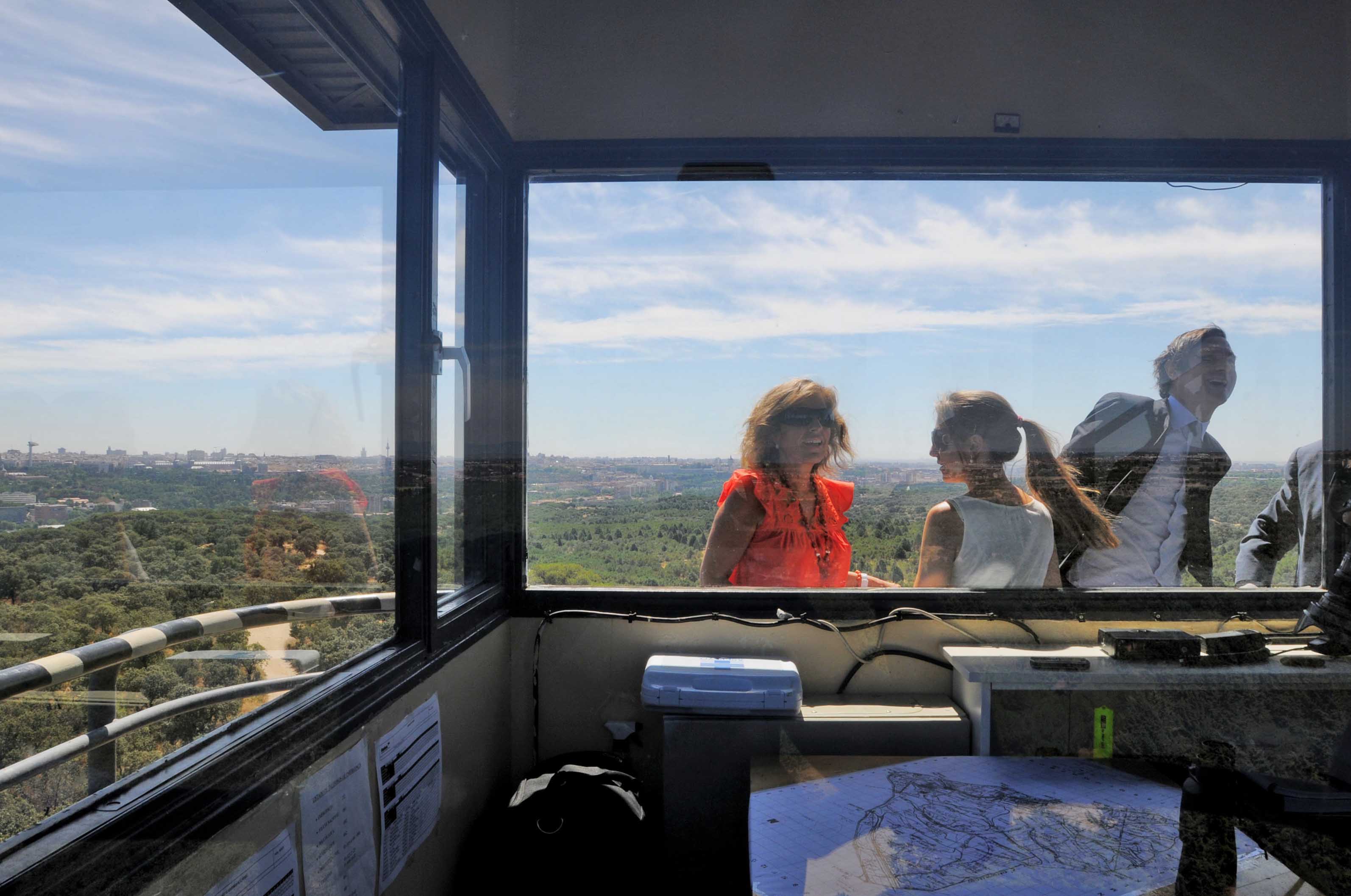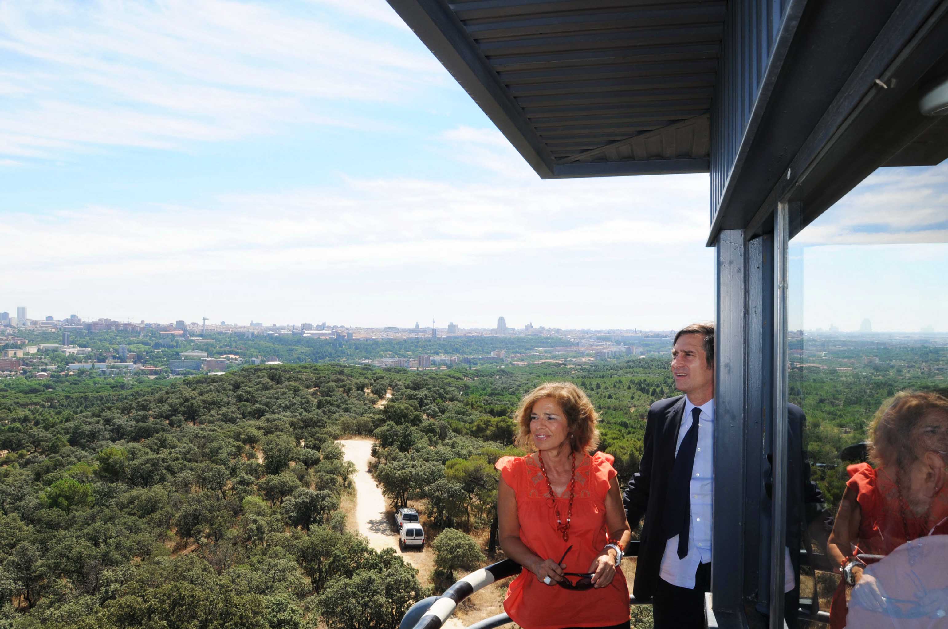 Dos torres de control para localizar conatos de incendios, nueve vehículos de extinción y 36 personas, además de un equipo de mañana, integran el Servicio de Prevención y Extinción de Incendios Forestales que tiene como misión impedir que la Casa de Campo, la gran masa arbórea de pinos y encinas, se vea acechada por el fuego. Hoy la teniente de alcalde y delegada de Medio Ambiente, Ana Botella, ha presentado a los pies de la Torre Garabitas, la vigía contra el fuego, el Plan de Defensa contra Incendios Forestales de la Casa de Campo, "un dispositivo esencial en la protección, cuidado y conservación de esta pieza clave de nuestro patrimonio verde", afirmó.