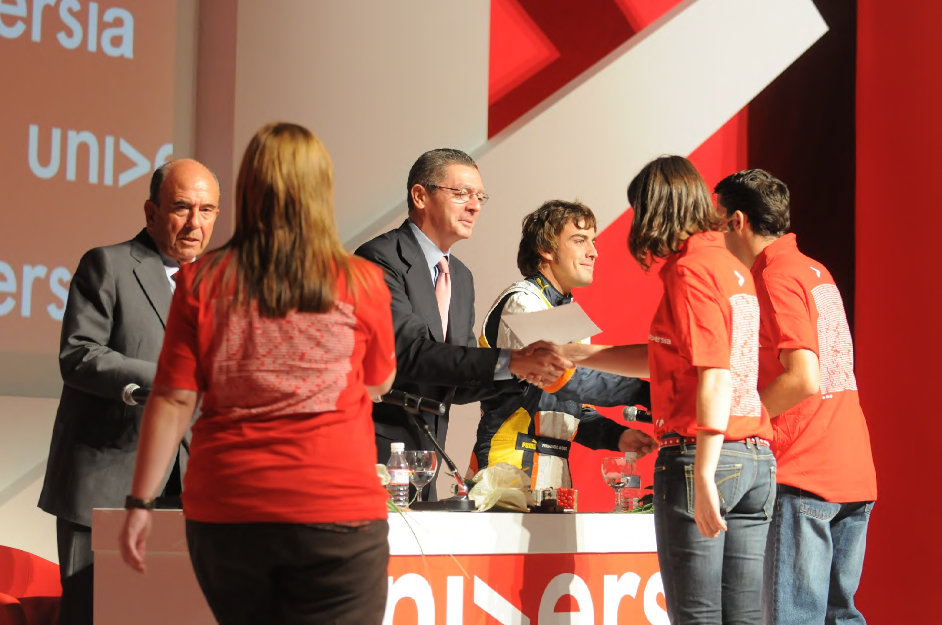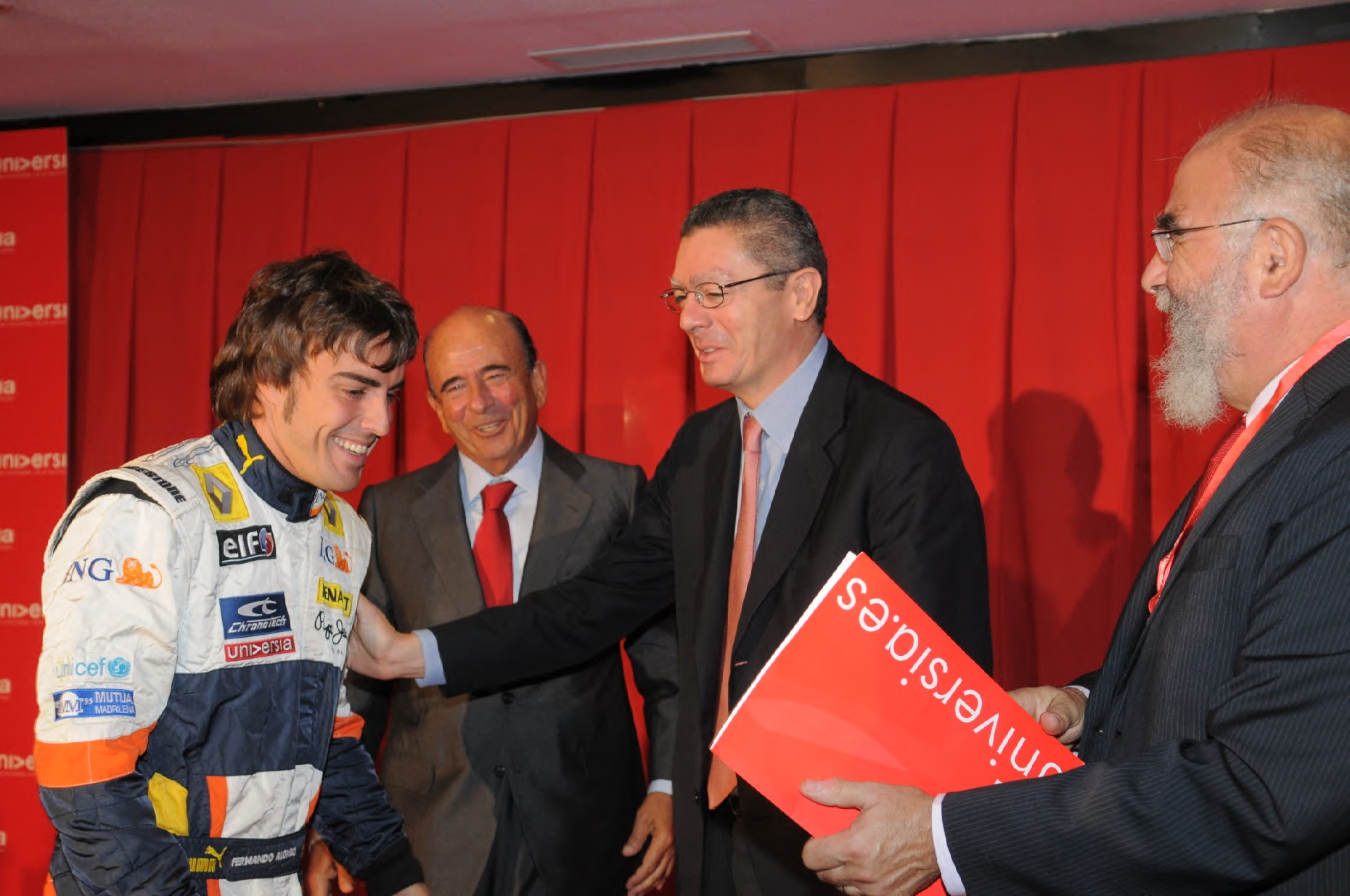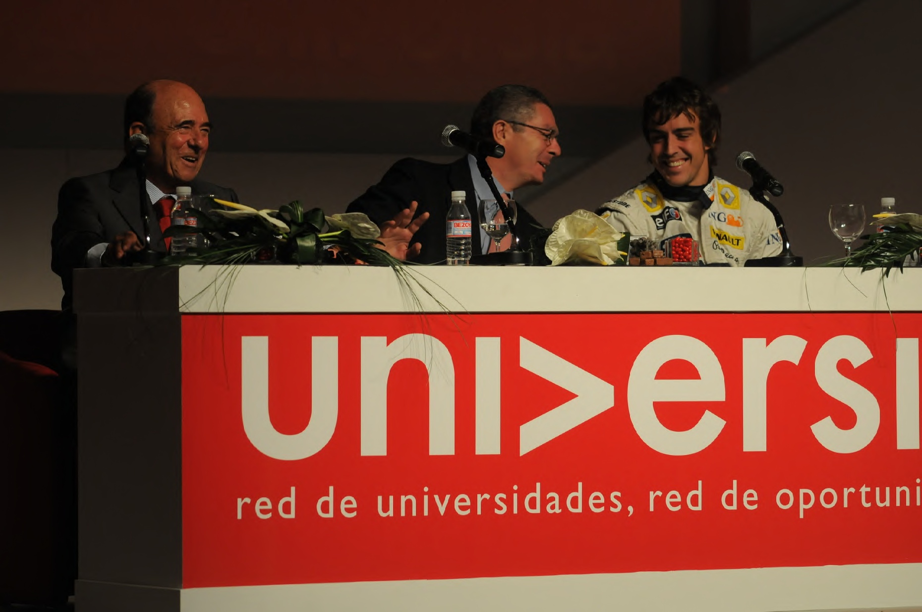 Para Alberto Ruiz-Gallardón, en el acto celebrado hoy convergen tres elementos (la actividad que desarrolla Universia, el modelo de progreso de Madrid y la deportividad que representa Fernando Alonso) con un factor común: la generosidad. "La generosidad de Universia al ofreceros una oportunidad para demostrar vuestra valía profesional y personal; la de un campeón como Fernando Alonso, dispuesto a compartir los secretos de sus triunfos en los circuitos, y la de una ciudad que os invita a que desarrolléis vuestro proyecto vital y profesional en ella"./