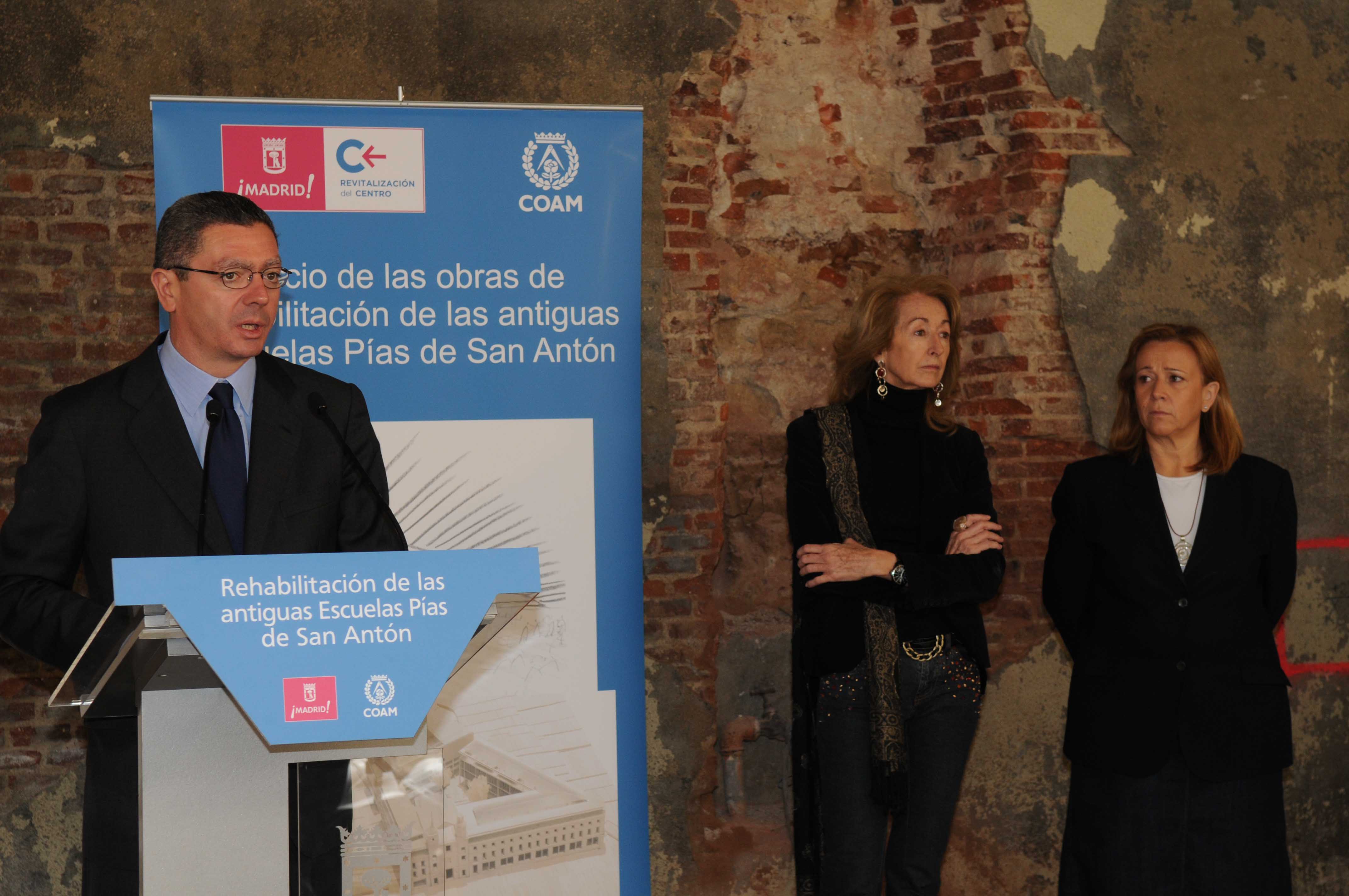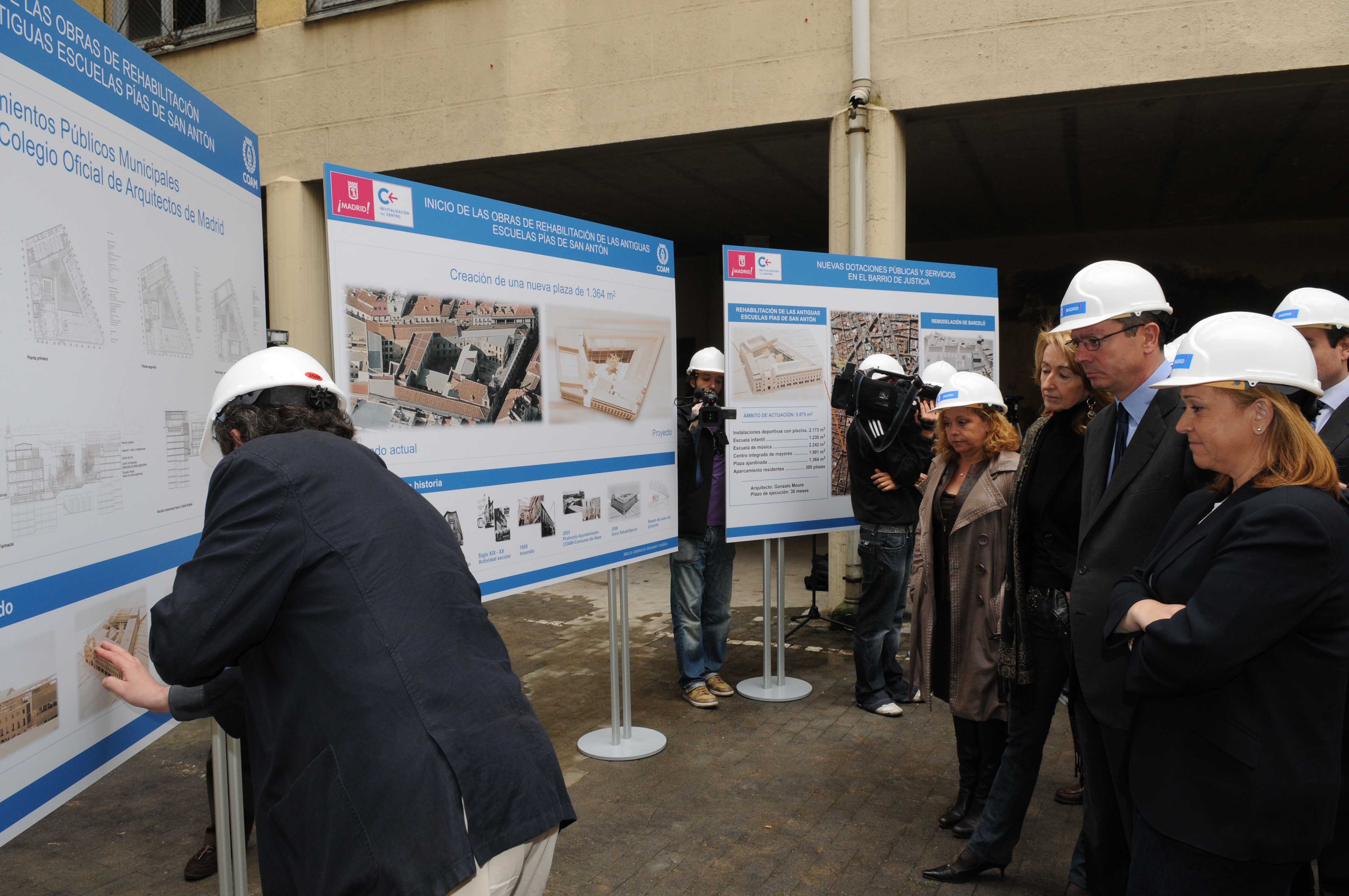 Un conjunto arquitectónico en pleno centro de la Ciudad de Madrid lleno de historia. Son las Escuelas Pías de San Antón, que han sido hospital, colegio e iglesia. Ocupan desde 1795 una parcela de 5.875 metros cuadrados que ya aparece en el Plano de Texeira. Tras su incendio en 1995 y su adquisición por parte del Ayuntamiento en 1999, ahora, a través de su rehabilitación, “vamos a introducir un nuevo lenguaje, tanto en el edificio como en el entorno donde se ubica”. El alcalde, Alberto Ruiz-Gallardón, ha asistido hoy al inicio de las obras de recuperación de este conjunto que, gracias a la colaboración del Colegio de Arquitectos de Madrid (COAM) va a ser ‘devuelto’ a los madrileños en forma de equipamientos y servicios públicos.