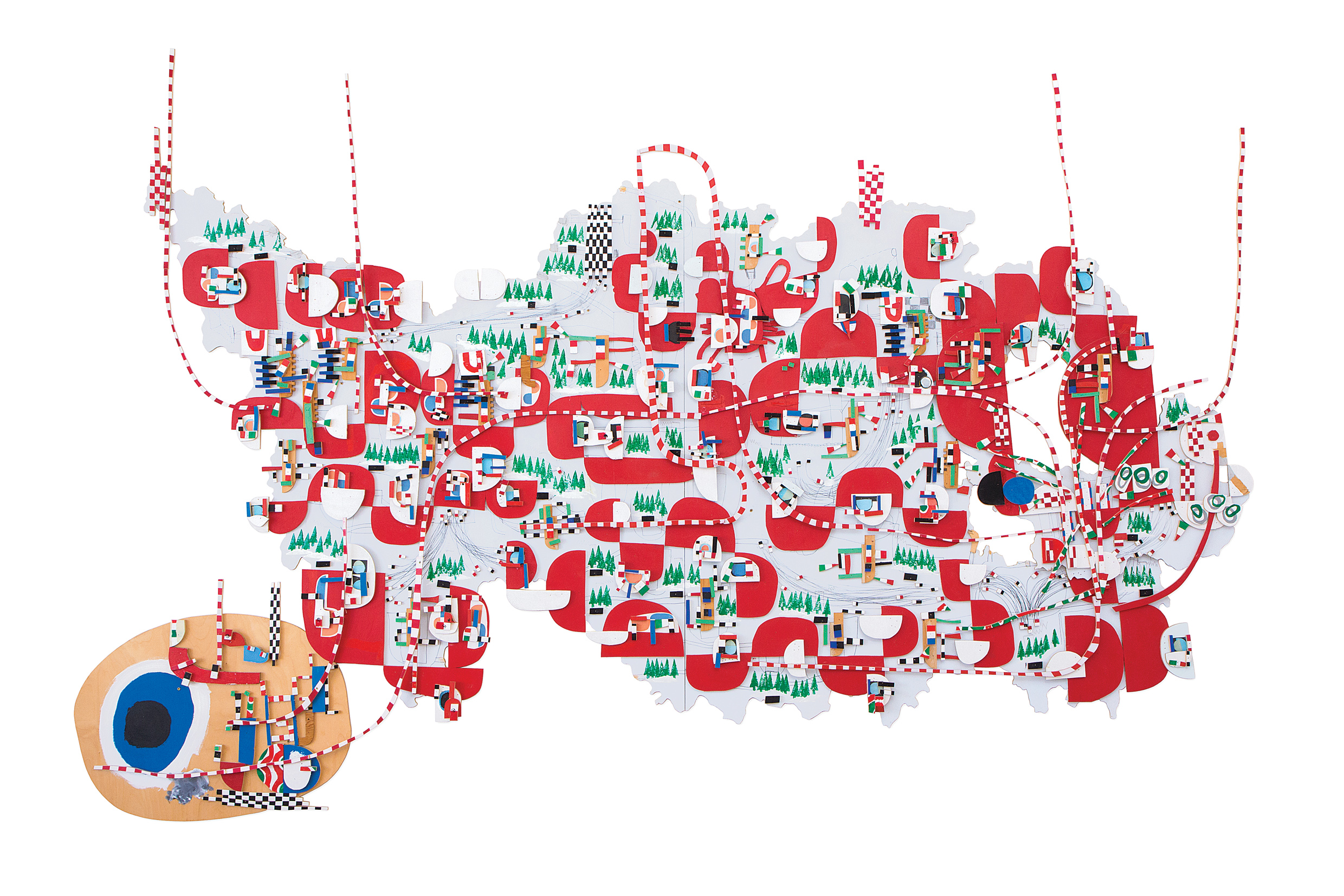 Arquitectura y espacios en la Colección Rac se articula en torno a tres temas principales: la arquitectura, el espacio urbano y el espacio doméstico. Conceptos sobre los que han trabajado los 37 artistas presentes en la muestra, a través de diferentes soportes como la pintura, dibujo, fotografía, escultura, instalación, vídeo y luz.