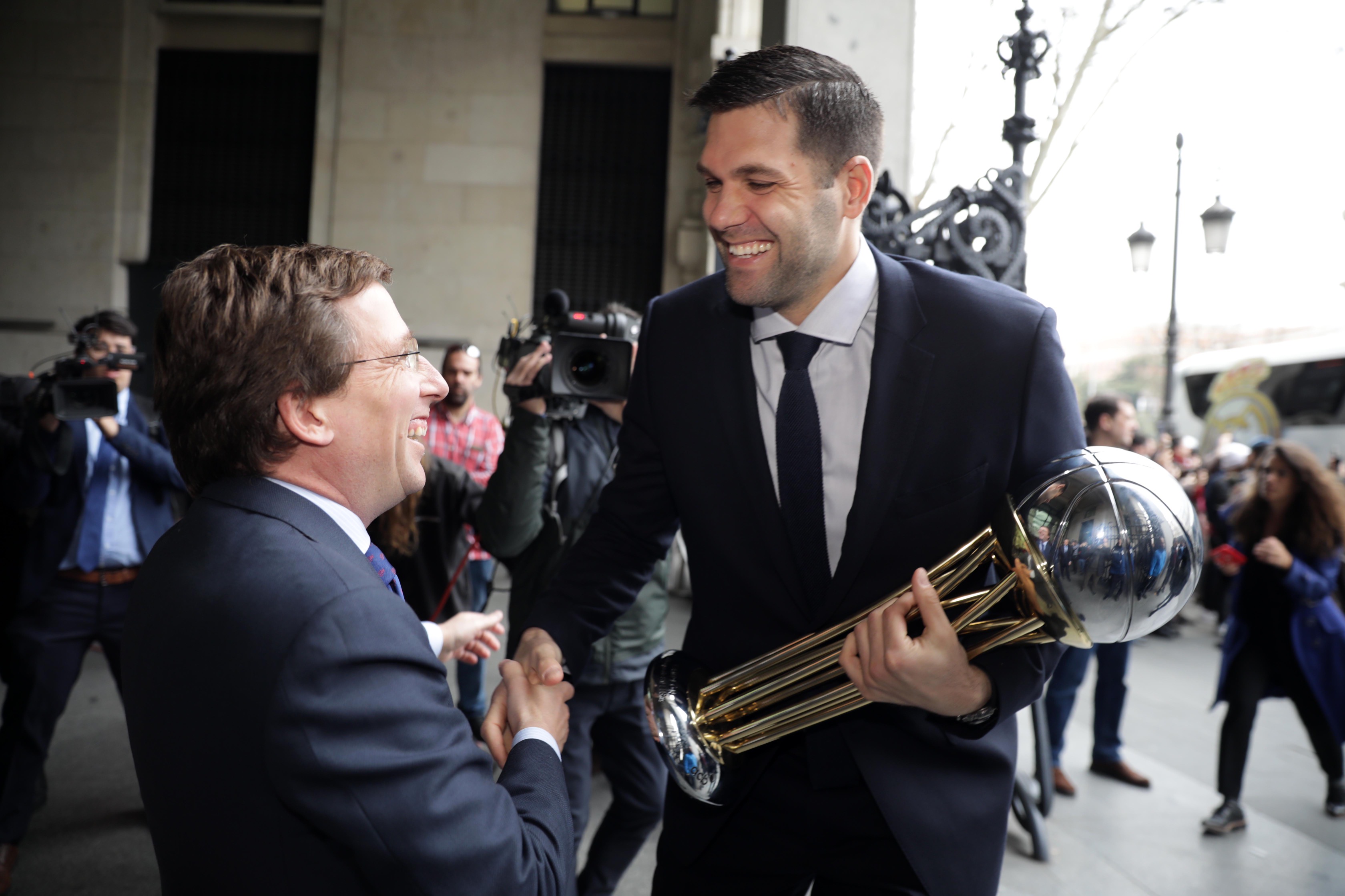 “Muchas gracias por traernos esta alegría al palacio de Cibeles y volved mucho por aquí. Hace apenas seis meses trajisteis el título de liga y seguís en la buena senda”, ha subrayado Almeida, quien ha elogiado los valores del club madridista y lo que representa para la ciudad, “la institución del Real Madrid es un símbolo de esta ciudad, vosotros habéis paseado el nombre de Madrid por todo el mundo logrando incontables éxitos, representáis los mejores valores del deporte, la superación, el sacrificio y el no dar nada por perdido”. El alcalde ha ensalzado también la figura del entrenador, “sin Pablo Laso este equipo glorioso no se podría entender”.
