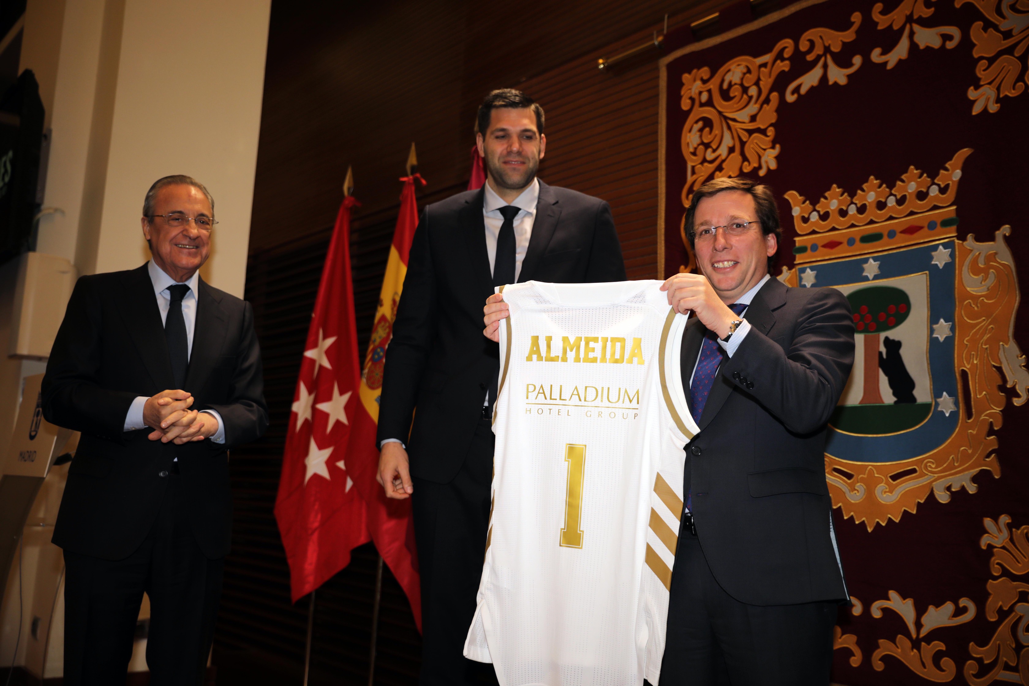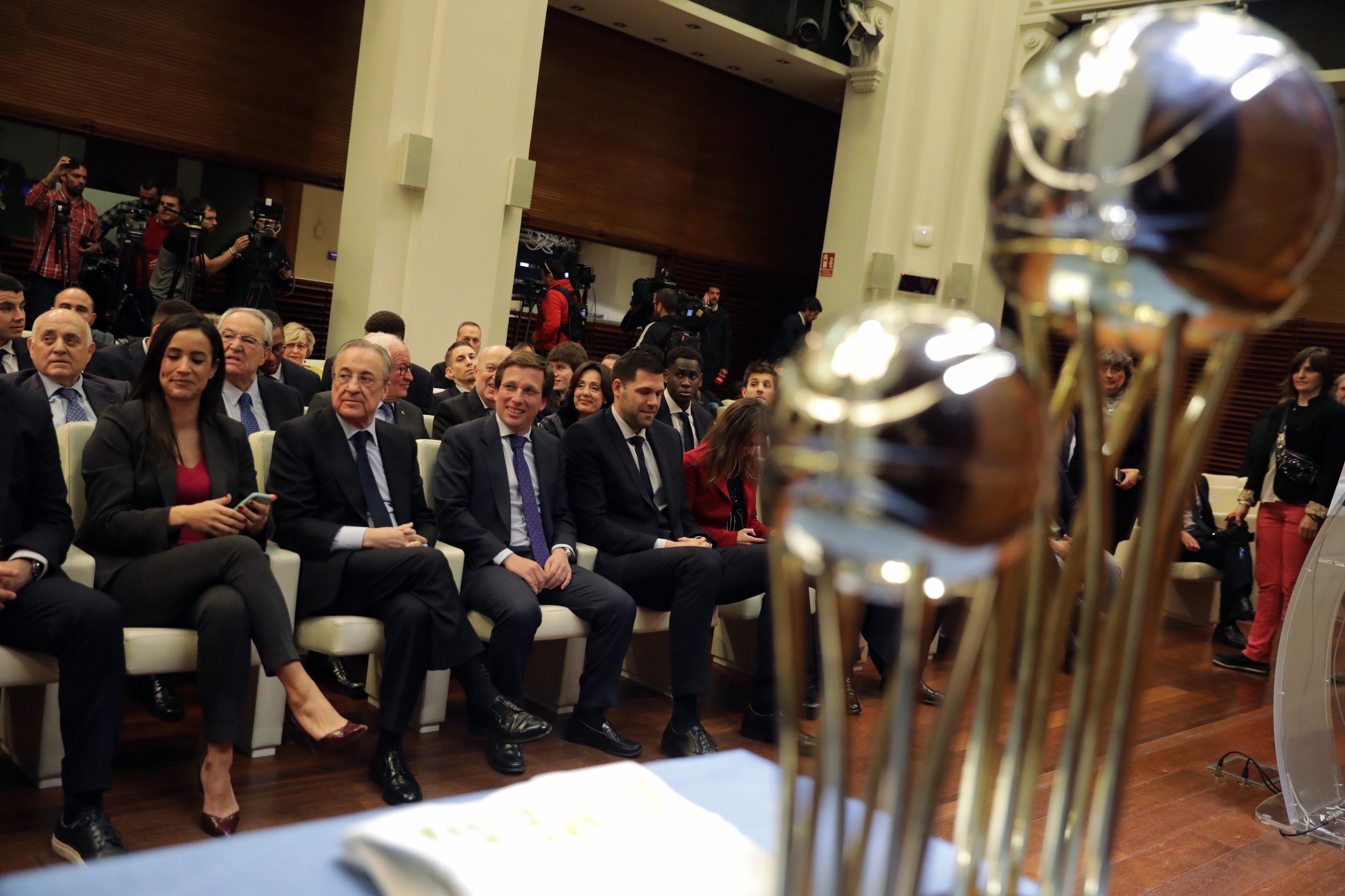 Durante el acto, Almeida ha entregado una placa conmemorativa al presidente del Real Madrid, Florentino Pérez, quien ha obsequiado al Ayuntamiento de Madrid con una réplica de la Copa de Su Majestad el Rey 2020, que ha recogido el alcalde junto a una camiseta del equipo madrileño entregada por su capitán, Felipe Reyes.