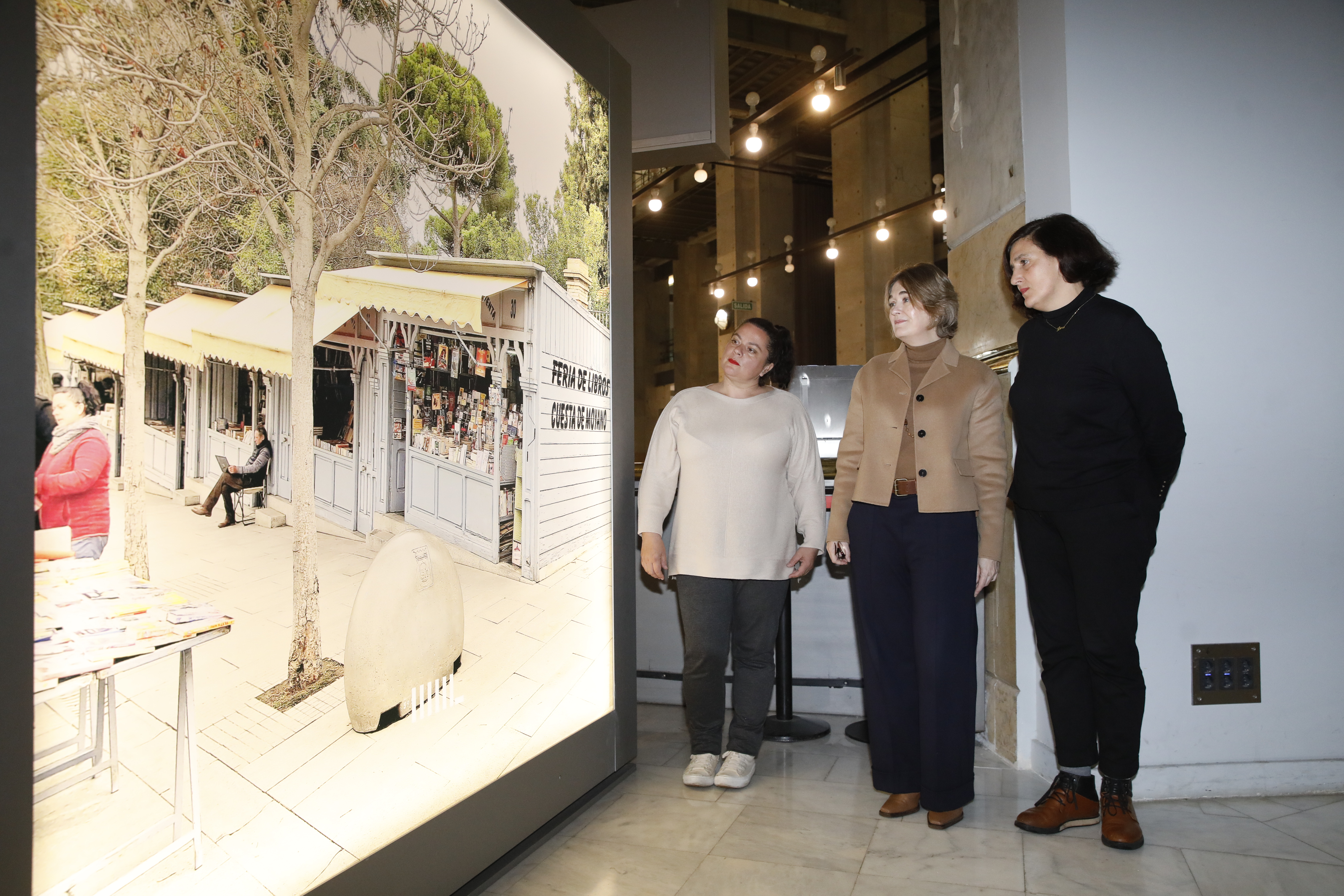 La delegada de Cultura, Turismo y Deporte, Marta Rivera de la Cruz, ha visitado hoy el Centro de Interpretación del Paisaje de la Luz, el espacio del Área de Cultura, Turismo y Deporte situado en el Patio de Operaciones de CentroCentro, donde se ha realizado el cambio de las piezas expuestas en la vitrina destinada a una institución invitada. En esta ocasión, la Cuesta de Moyano es la protagonista, con motivo del centenario de esta emblemática feria de libros de Madrid. La directora de la Asociación Soy de la Cuesta, Lara Sánchez, y la presidenta de la Asociación de Libreros, Carolina Méndez, han participado también en la visita, que ha puesto en valor la importancia de este enclave histórico y literario.