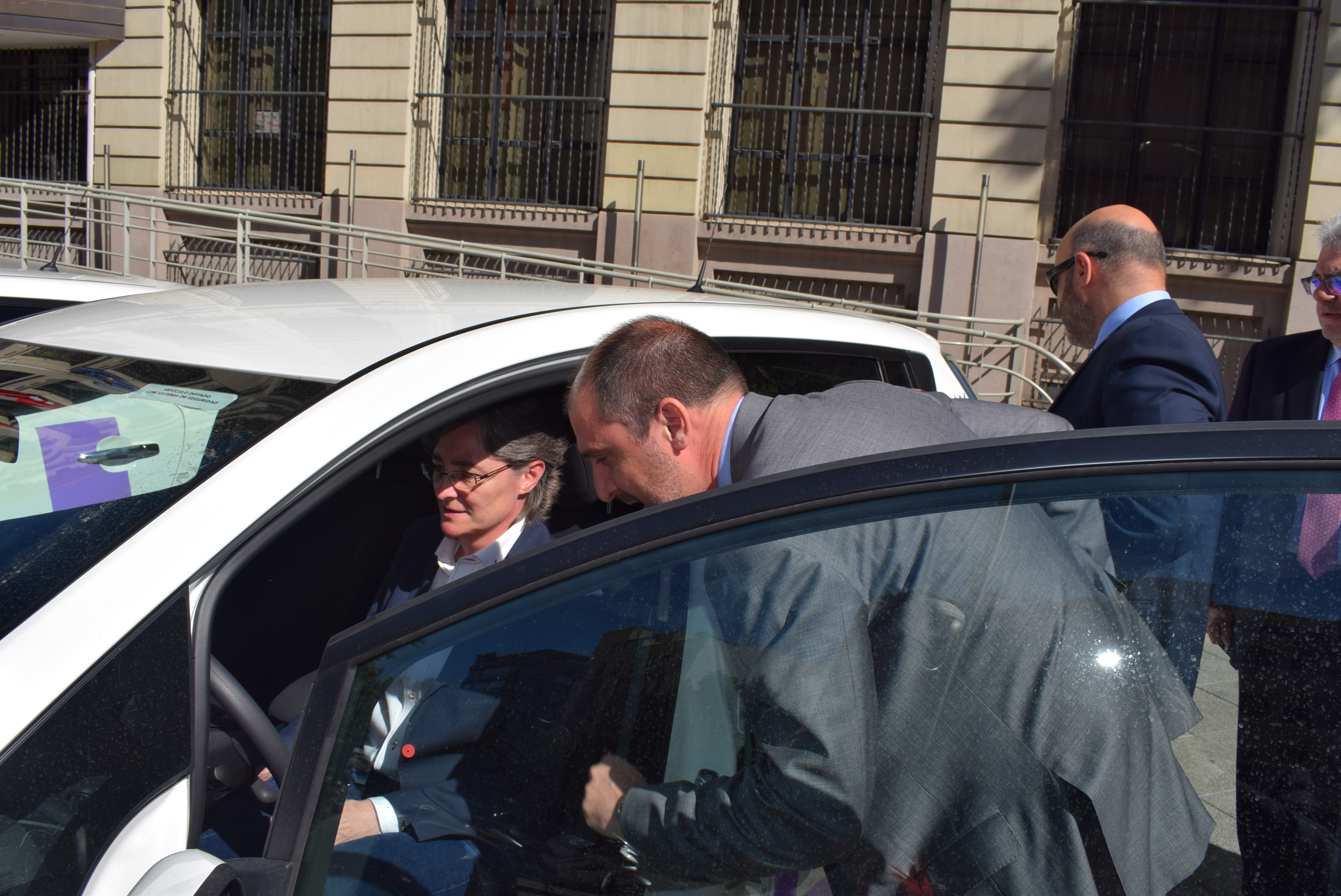 La delegada de Equidad, Derechos Sociales y Empleo, Marta Higueras, junto con el consejero delegado de la Empresa EMVS, Francisco López Barquero y la directora general de Sostenibilidad y Movilidad, Paz Valiente, han presentado esta mañana, a las puertas de la sede de la Empresa Municipal de la Vivienda y Suelo, la nueva flota de vehículos eléctricos.