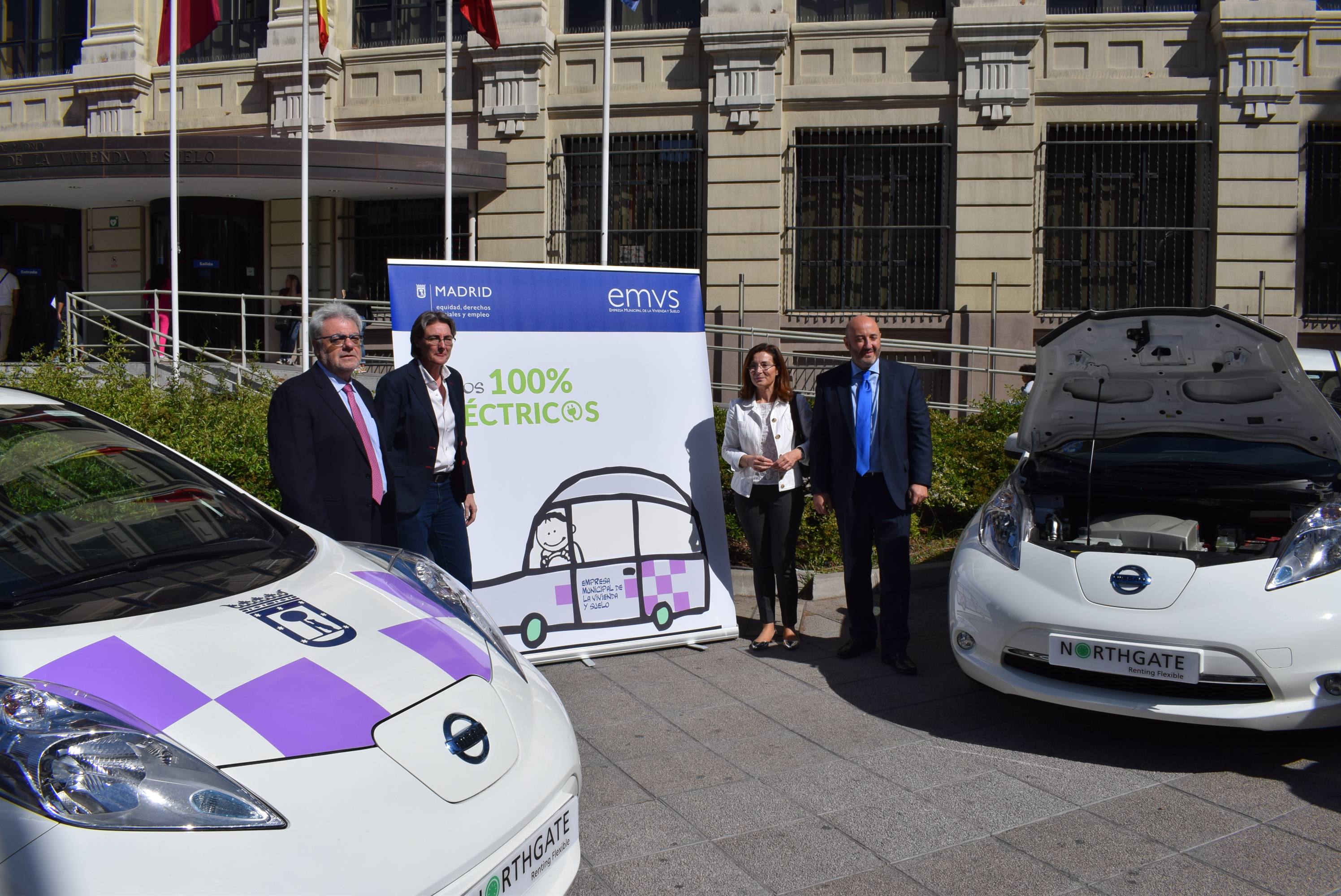 A la presentación han asistido Marta Higueras, presidenta de la EMVS; Paz Valiente, directora general de Sostenibilidad y Movilidad; Francisco López Barquero, consejero delegado de la EMVS; y Eduardo González de la Rocha,director comercial de Northgate Renting Flexible.