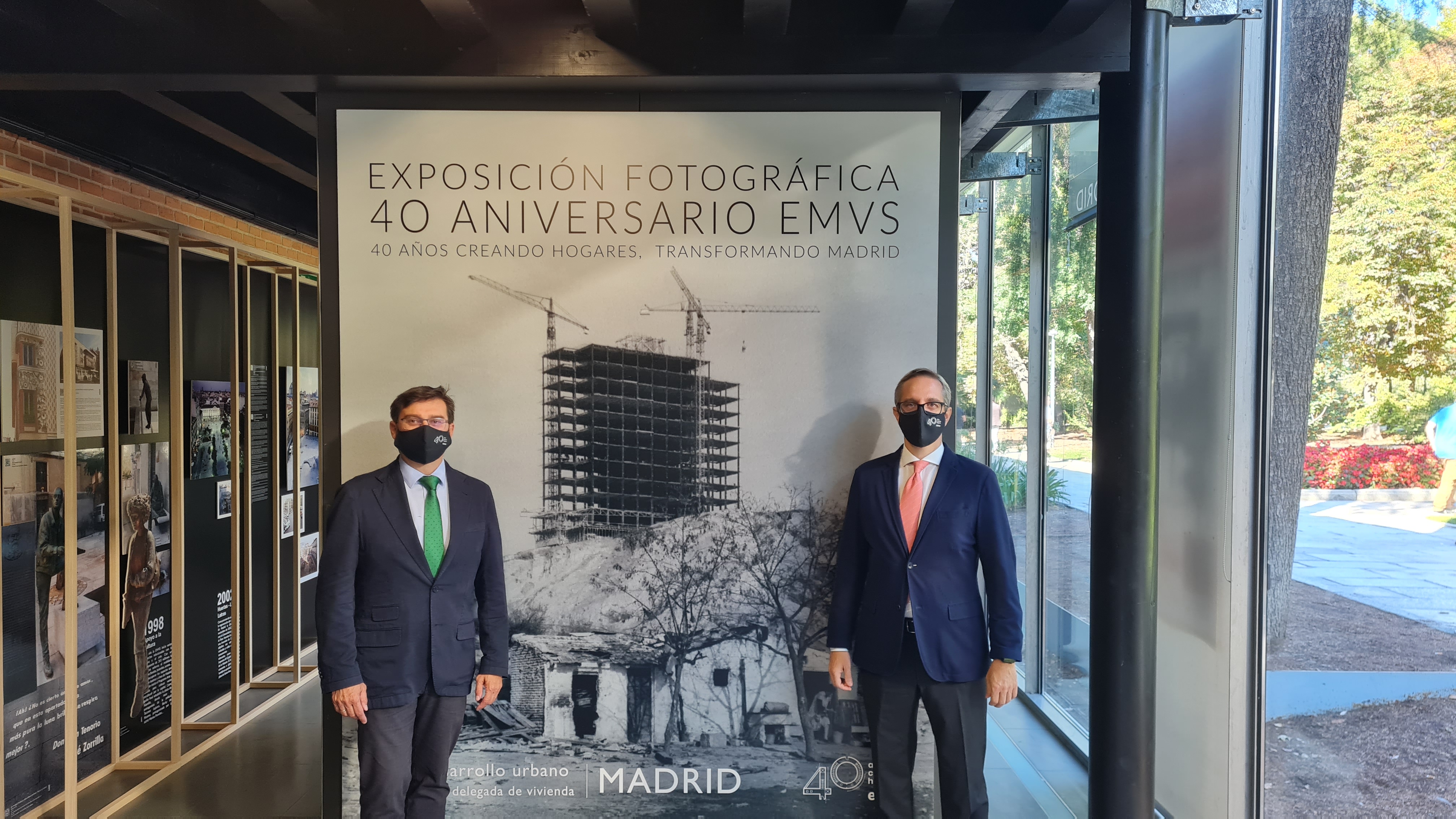 - El presidente y el consejero delegado de la EMVS, Álvaro Gonzalo y Diego Lozano, han inaugurado este viernes una muestra que resume cuatro décadas de historia