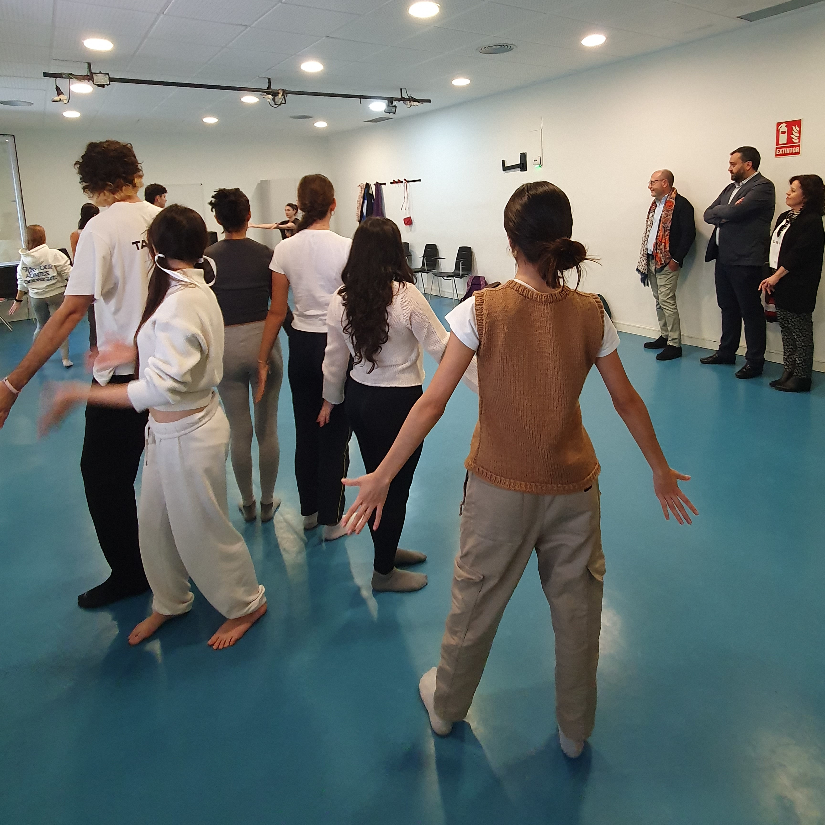 El delegado de Políticas Sociales, Familia e Igualdad, José Fernández, junto al concejal de Centro, Carlos Segura, ha visitado hoy este recurso del Ayuntamiento de Madrid que se configura como un centro de enseñanza y de difusión cultural en el que conviven diferentes generaciones. La escuela ofrece formación teatral mediante diferentes itinerarios formativos adaptados a los diferentes grupos, que comprenden desde menores a partir de 6 años hasta adultos sin límite de edad. Como novedad este curso, se han creado aulas específicas para mayores de 65 años que, no obstante, tienen la oportunidad de compartir experiencias con los más jóvenes.
