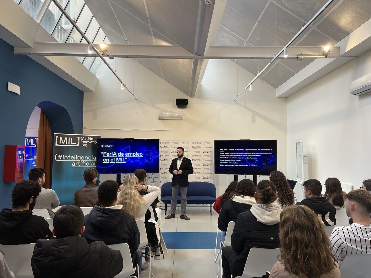 El Ayuntamiento de Madrid, a través del centro municipal Madrid Innovation Lab (MIL), ha organizado la I edición de la FerIA de Empleo de Inteligencia Artificial y Deep Tech, una iniciativa que tiene el objetivo de unir la demanda y la oferta de trabajo en un ámbito especializado como es el de la inteligencia artificial (IA) y la deep tech (avances tecnológicos con implicaciones empresariales). El concejal delegado de Innovación y Emprendimiento, Ángel Niño, ha asistido a la inauguración de esta feria que tiene lugar durante la jornada de hoy y mañana en la sede de MIL.