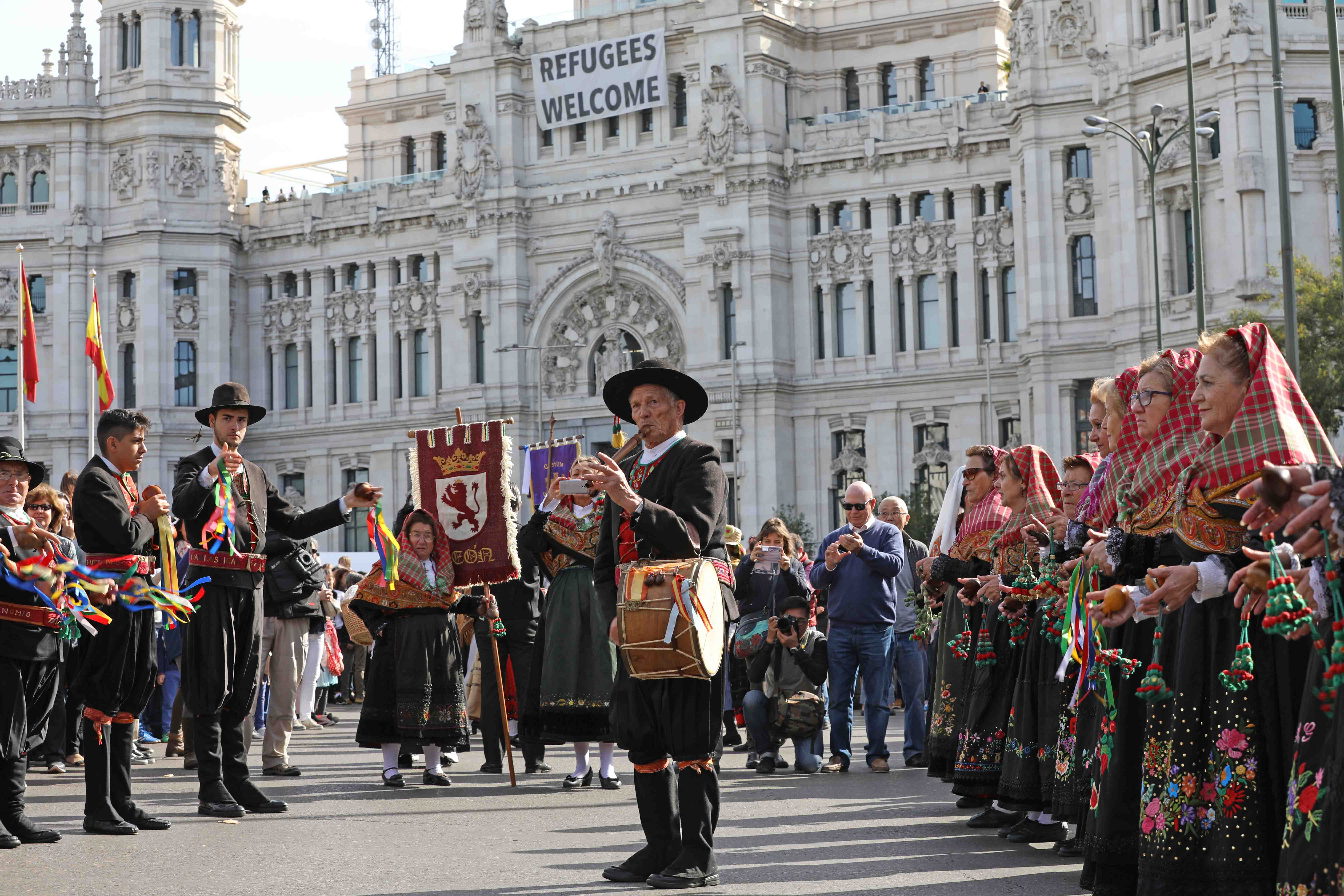 Es el segundo año que la alcaldesa recibe a los pastores y rebaños en Cibeles