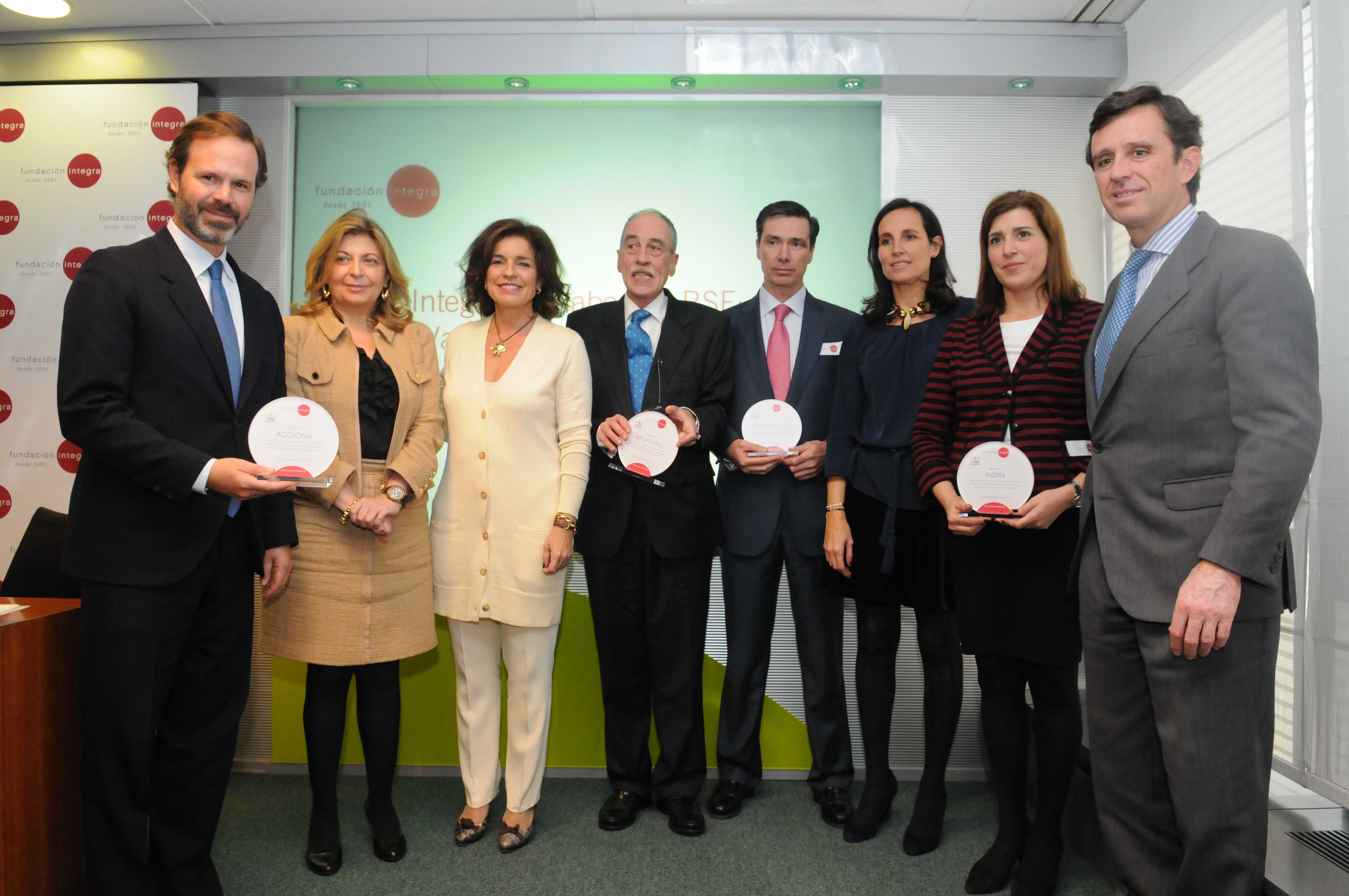 La alcaldesa de Madrid, Ana Botella, ha asistido hoy a la reunión anual de la Fundación Integra –de la que es presidenta fundadora–, en la que se han entregado los premios a las empresas que más contrataciones de personas en riesgo de exclusión social han realizado. Desde su creación en 2001, la Fundación Integra ha ayudado a 4.800 personas ha encontrar empleo. Sólo en lo que va de este año han sido 1.300 las que han conseguido un puesto de trabajo. La Fundación Integra, además, ha recibido de manos de la secretaria de Estado para el Empleo, Engracia Hidalgo, la placa de Adhesión a la Estrategia de Emprendimiento y Empleo Joven del Ministerio de Trabajo y Seguridad Social. Las imágenes recogen varios momentos del acto, que ha tenido lugar en la sede de Bankia, en las Torres Kio.