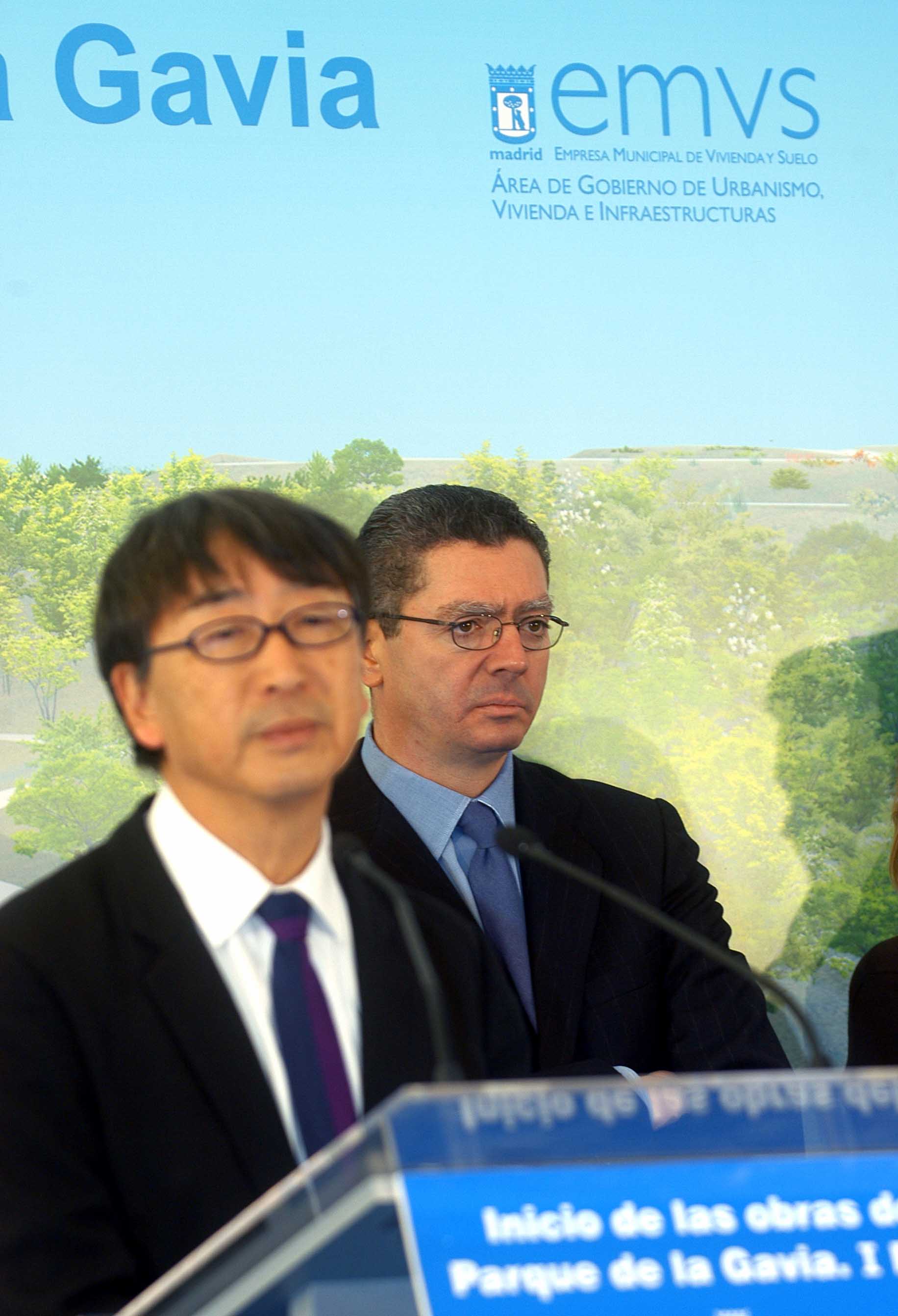 Las imágenes recogen varios momentos de la visita que ha realizado hoy el alcalde de la Ciudad de Madrid, Alberto Ruiz-Gallardón, a las obras del Parque de la Gavia. Ruiz-Gallardón ha estado acompañado por el arquitecto japonés Toyo Ito, encargado del diseño del frente noroeste de este nuevo parque./