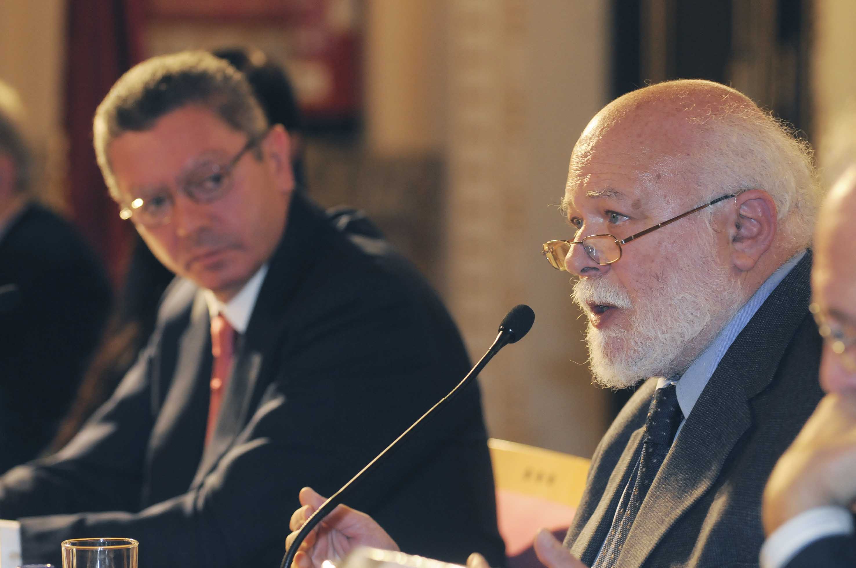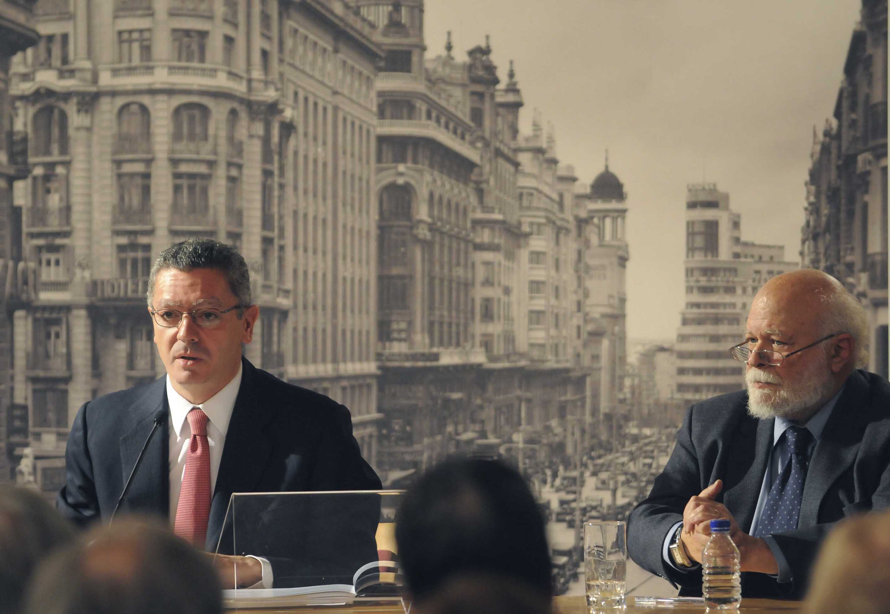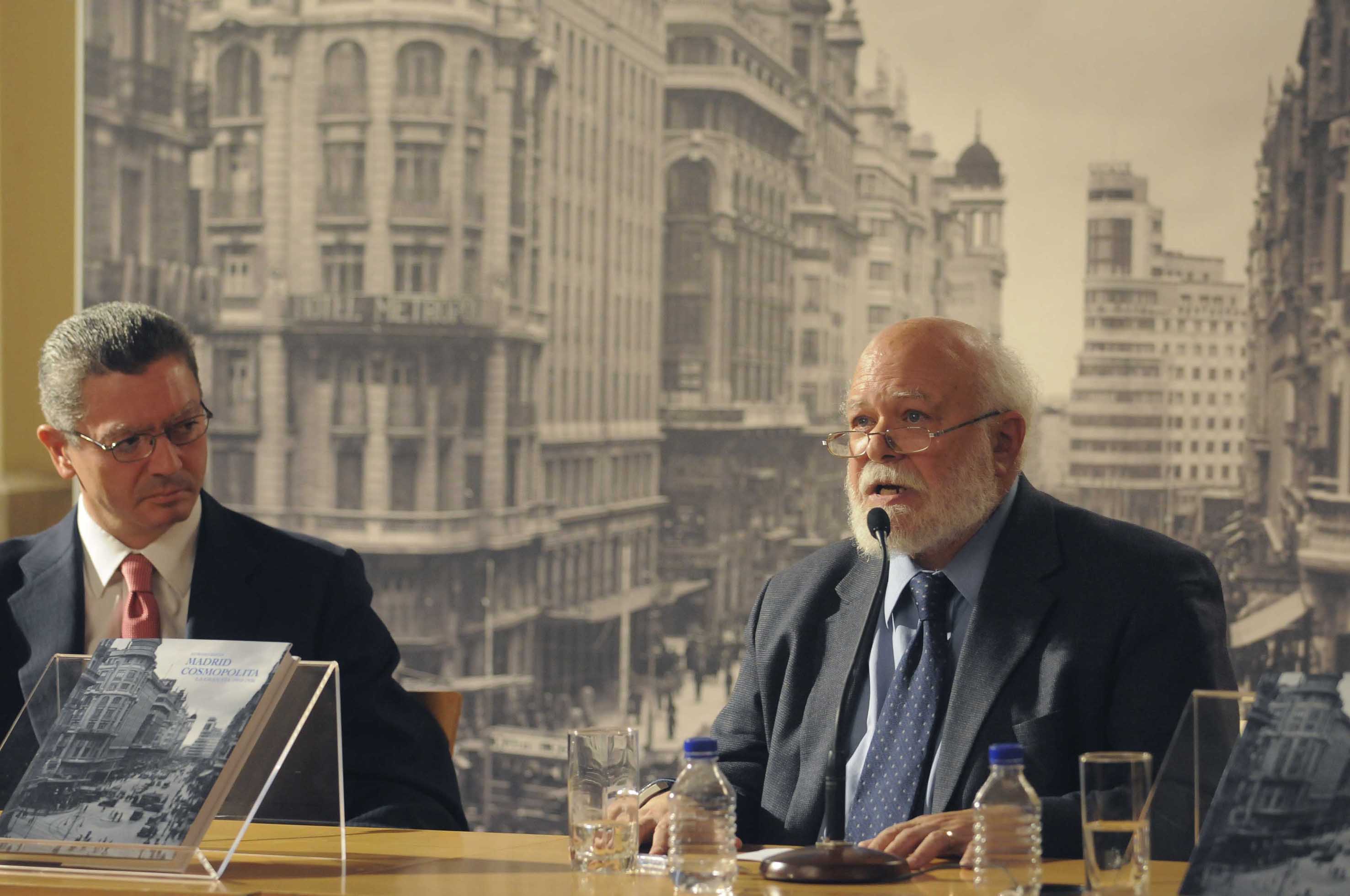 El alcalde, Alberto Ruiz-Gallardón, durante la presentación del libro "Madrid Cosmopolita. La Gran Vía 1910-1936", del hispanista estadounidense Edward Baker.