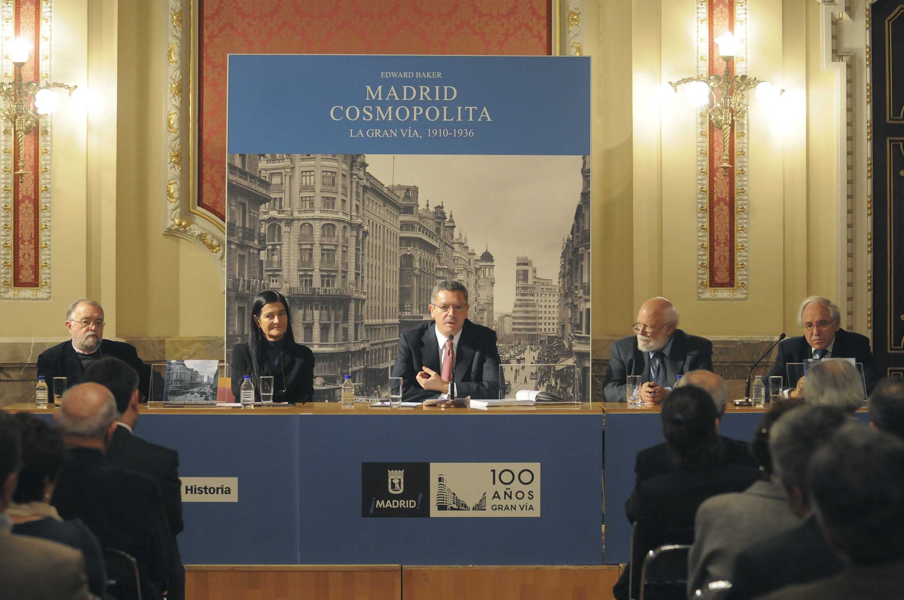 "Una ciudad que no se reforma declina y el acierto de los promotores de la Gran Vía fue estar a la altura del reto que supone gobernar Madrid, que no es otro que adecuar medios y espacios a la capacidad de la sociedad que le da vida", ha declarado el alcalde de Madrid, Alberto Ruiz-Gallardón, durante la presentación del libro "Madrid Cosmopolita. La Gran Vía 1910-1936" del hispanista estadounidense Edward Baker.