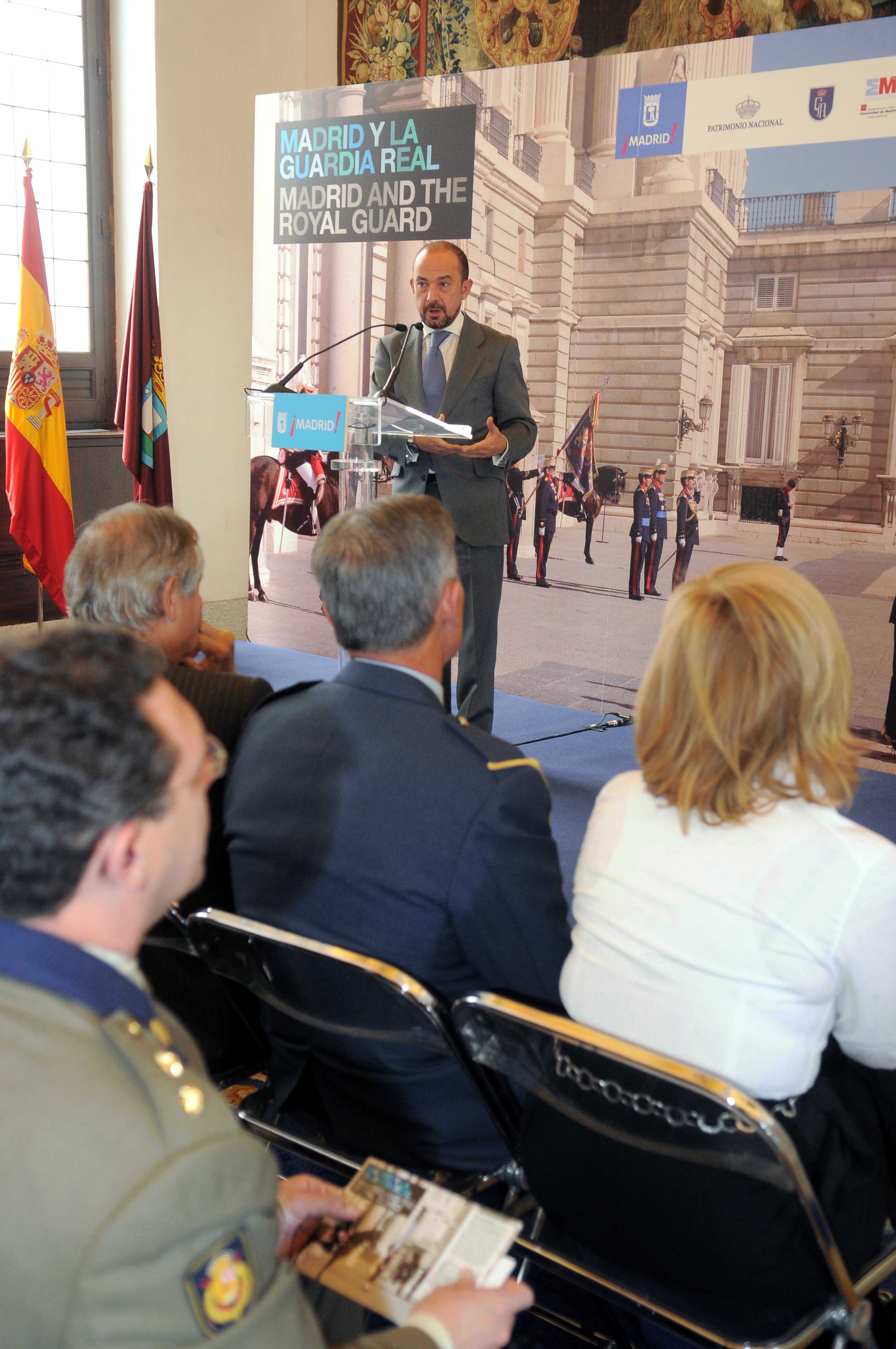 El delegado de Economía y Empleo, Miguel Ángel Villanueva, acompañado del presidente de Patrimonio Nacional, Yago Pico de Coaña, y del Jefe del Cuarto Militar del Rey, Carlos Felipe Victoria de Ayala, ha presentado hoy estas iniciativas, que se enmarcan en el producto turístico "Madrid y la Guardia Real", elaborado por el Patronato de Turismo de Madrid.