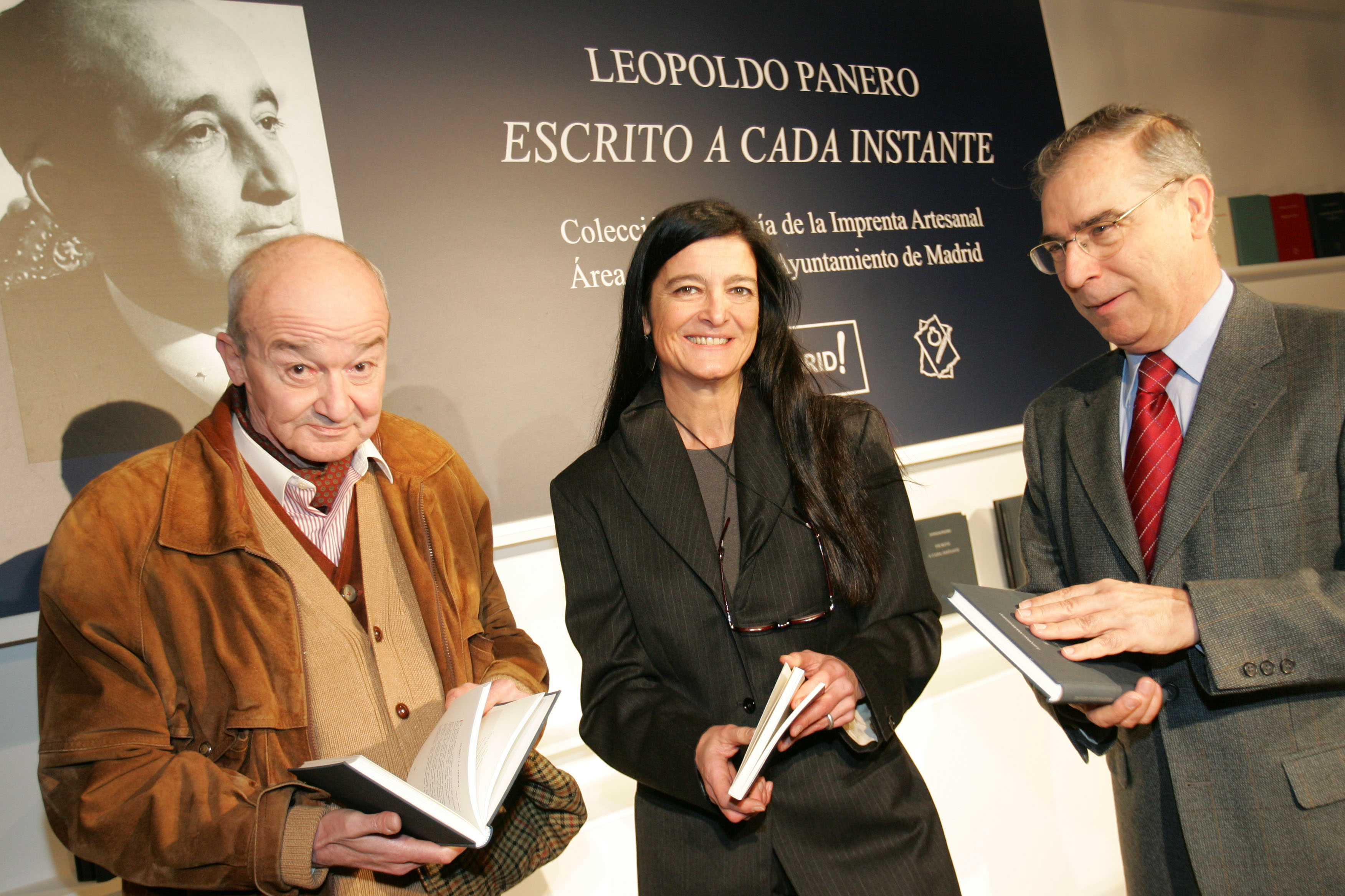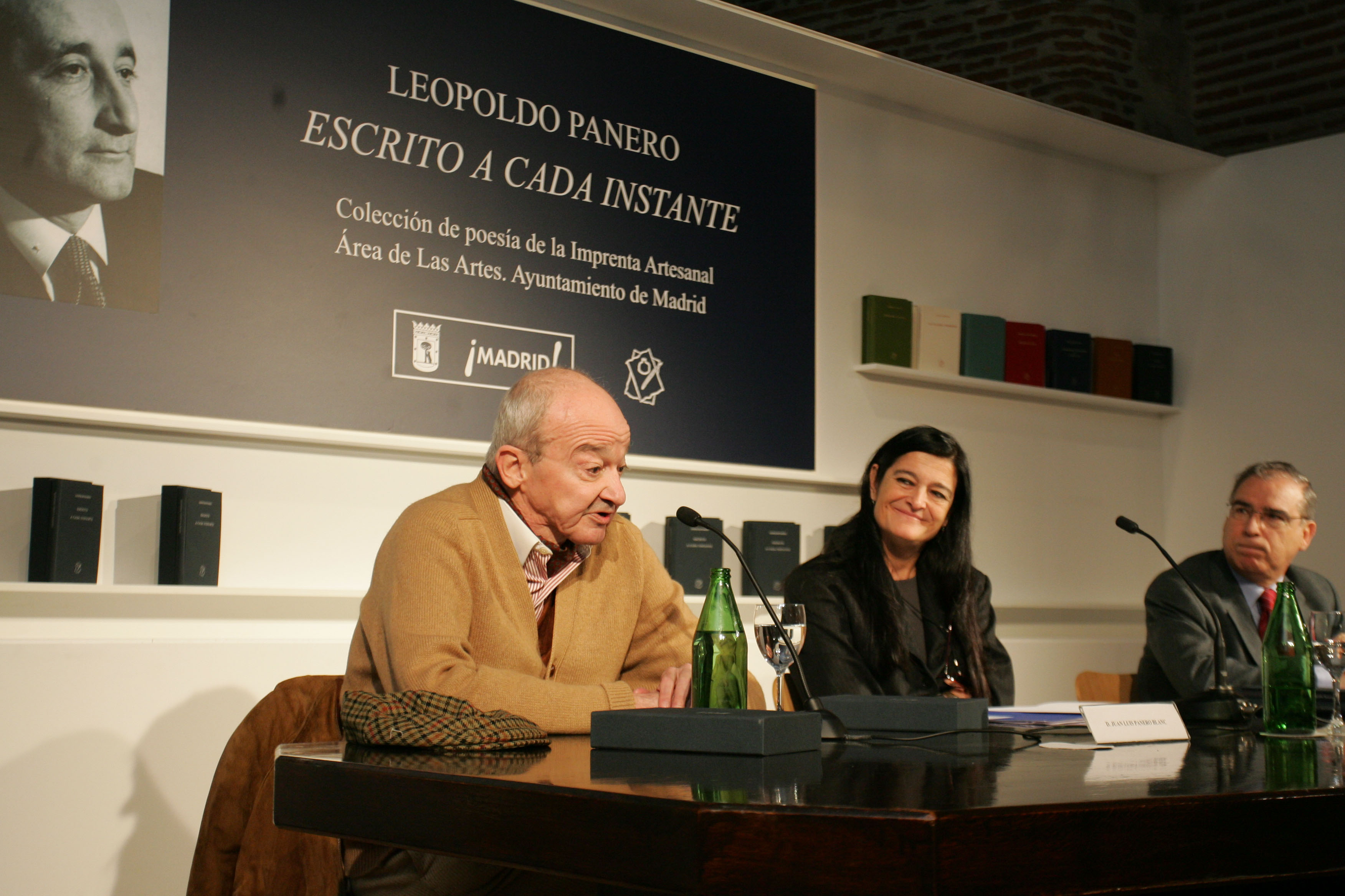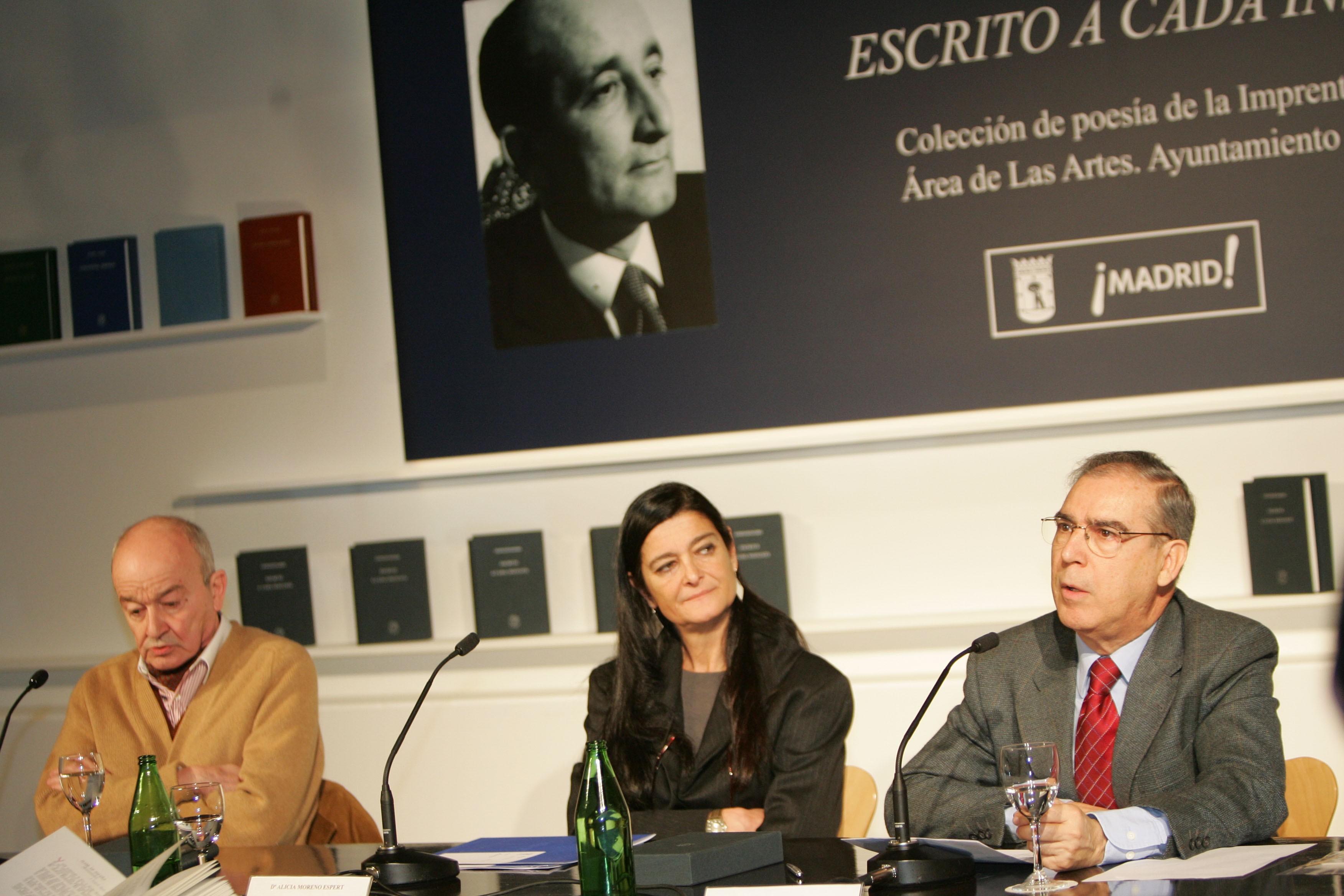 De izquierda a derecha Juan Luis Panero, Alicia Moreno y José Paulino Ayuso durante la presentación de la colección de poesía de la Generación del 36
