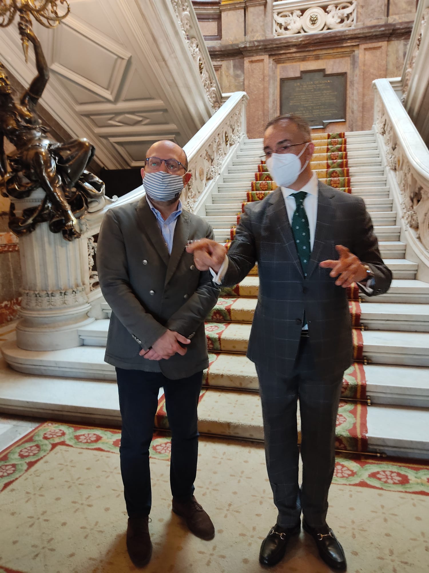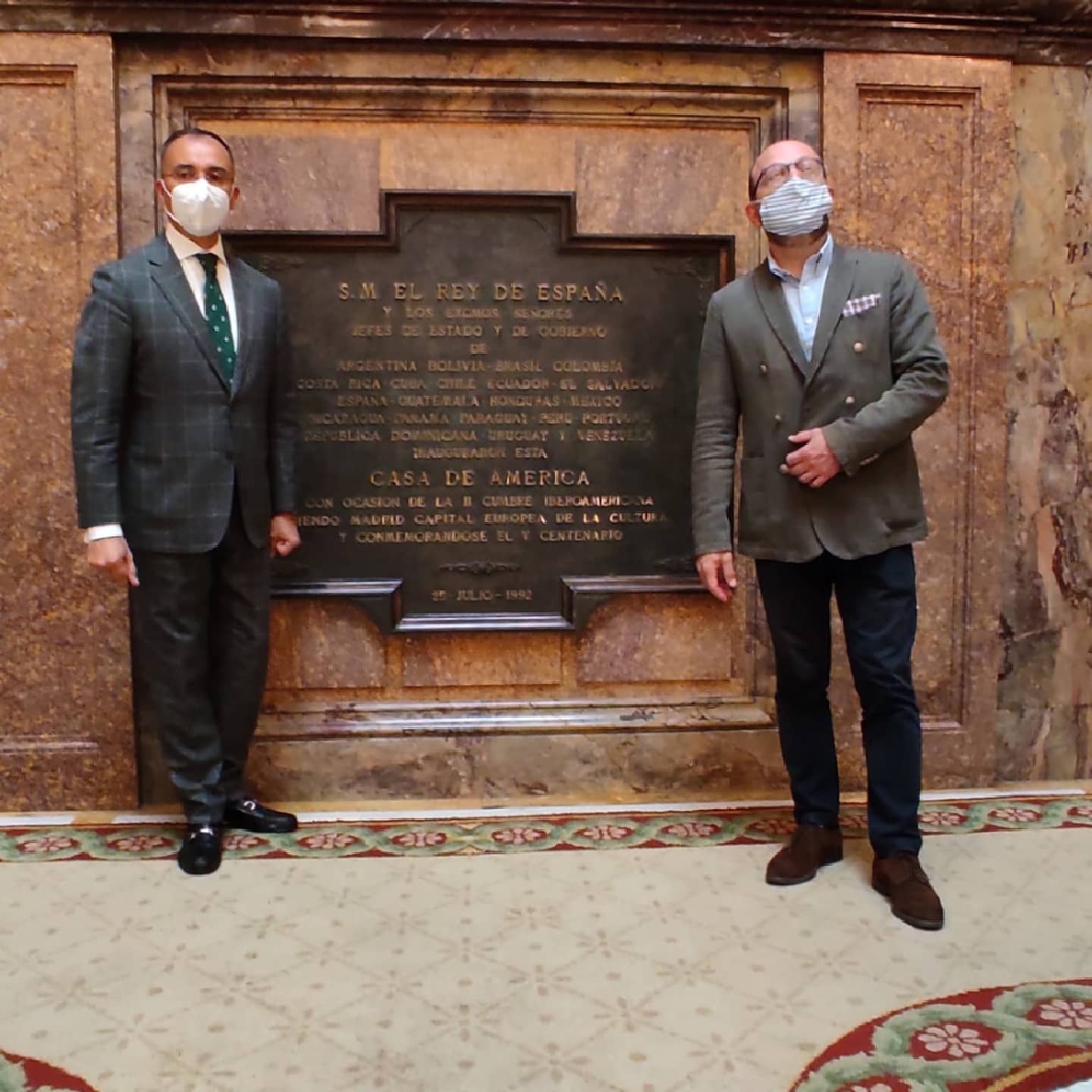 El concejal del distrito de Salamanca, José Fernández, ha visitado junto al gerente de la Casa de América, Óscar Dávila, las instalaciones del Palacio de Linares, uno de los edificios con más historia de Madrid y sede de dicha institución. Este encuentro se enmarca en las visitas periódicas que realiza el concejal a entidades e instituciones privadas con gran presencia en el distrito para fomentar la colaboración público-privada y acercar la cultura a los vecinos. “Los interesantes proyectos que se desarrollan en la Casa de América son un modo de incluir sus actividades en las propuestas culturales del distrito”, ha señalado Fernández.