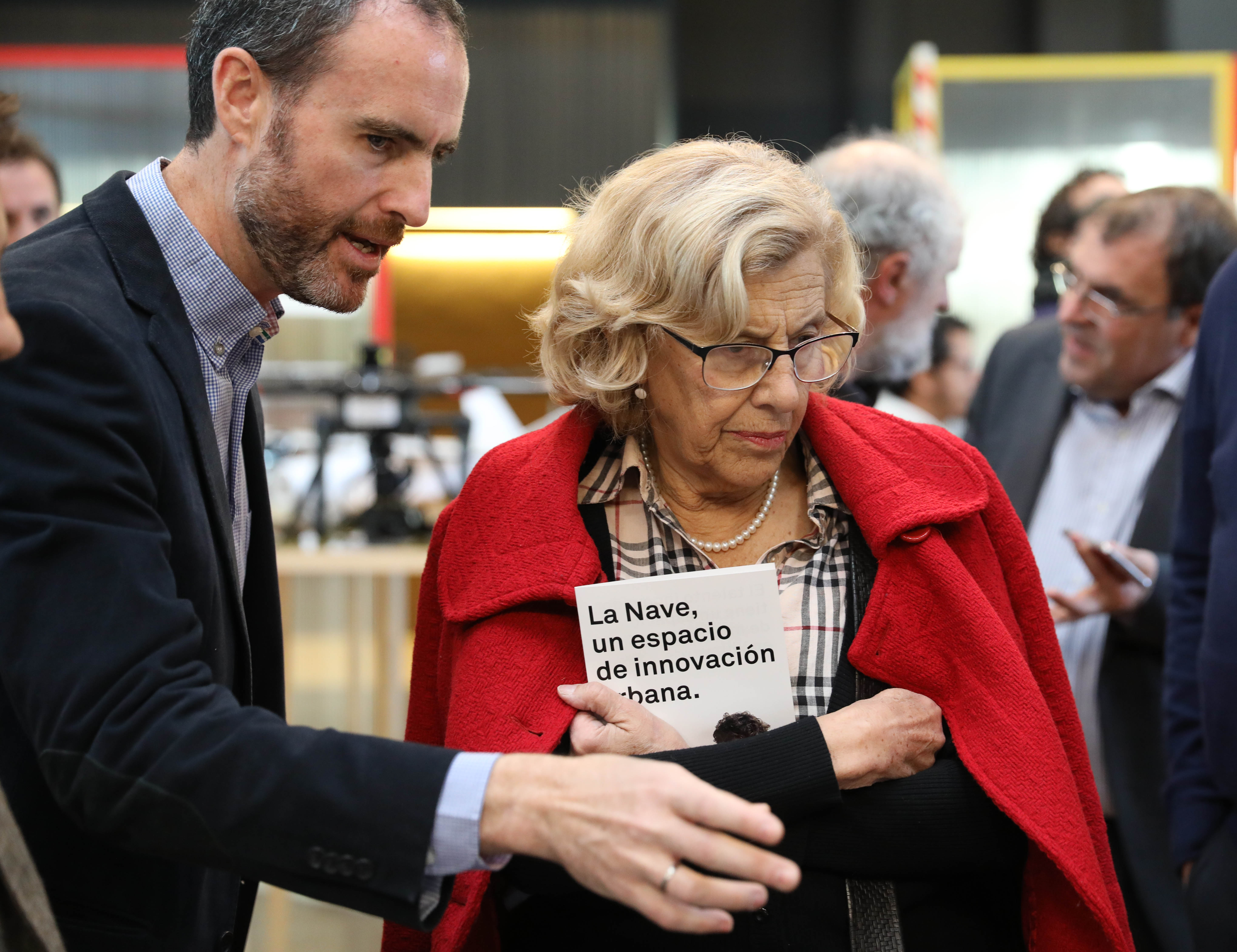 La alcaldesa de Madrid, Manuela Carmena, acompañada por el coordinador general de Alcaldía, Luis Cueto, y el concejal del distrito de Villaverde, Guillermo Zapata, ha visitado hoy La Nave para conocer directamente el trabajo que allí se está desarrollando. En el acto, con la presencia de Carlos Barrabés, fundador de la empresa ganadora, se ha informado de los detalles de esta nueva etapa, cuyo objetivo fundamental es conseguir que la ciudad de Madrid se convierta en un foco de innovación de primer nivel europeo, atrayendo talento e inversión, generando proyectos, empresas y empleos de alta calidad.