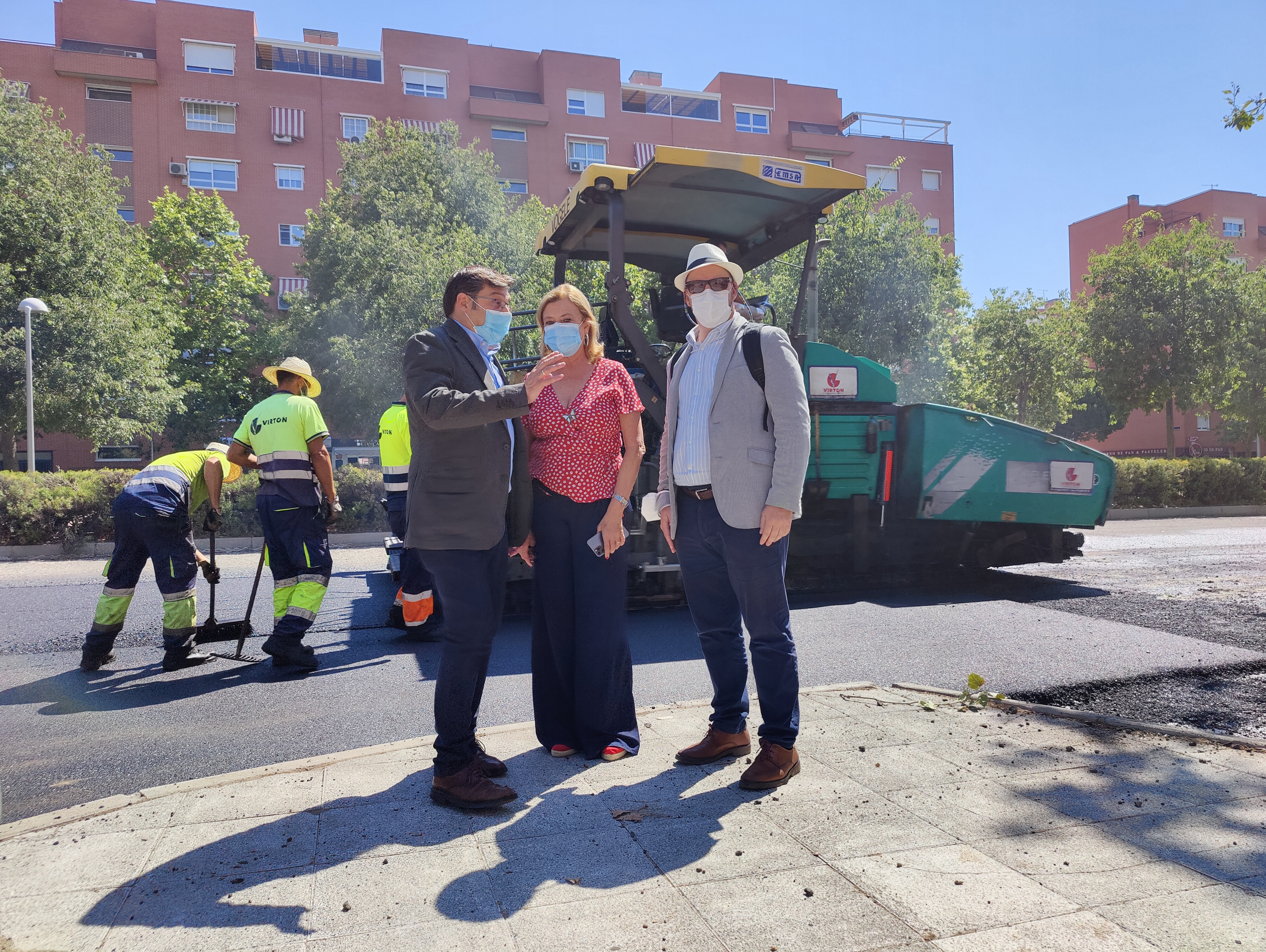 Paloma García Romero y Álvaro González en su visita a la Operación Asfalto 2021 en la avenida de la Peseta de Carabanchel