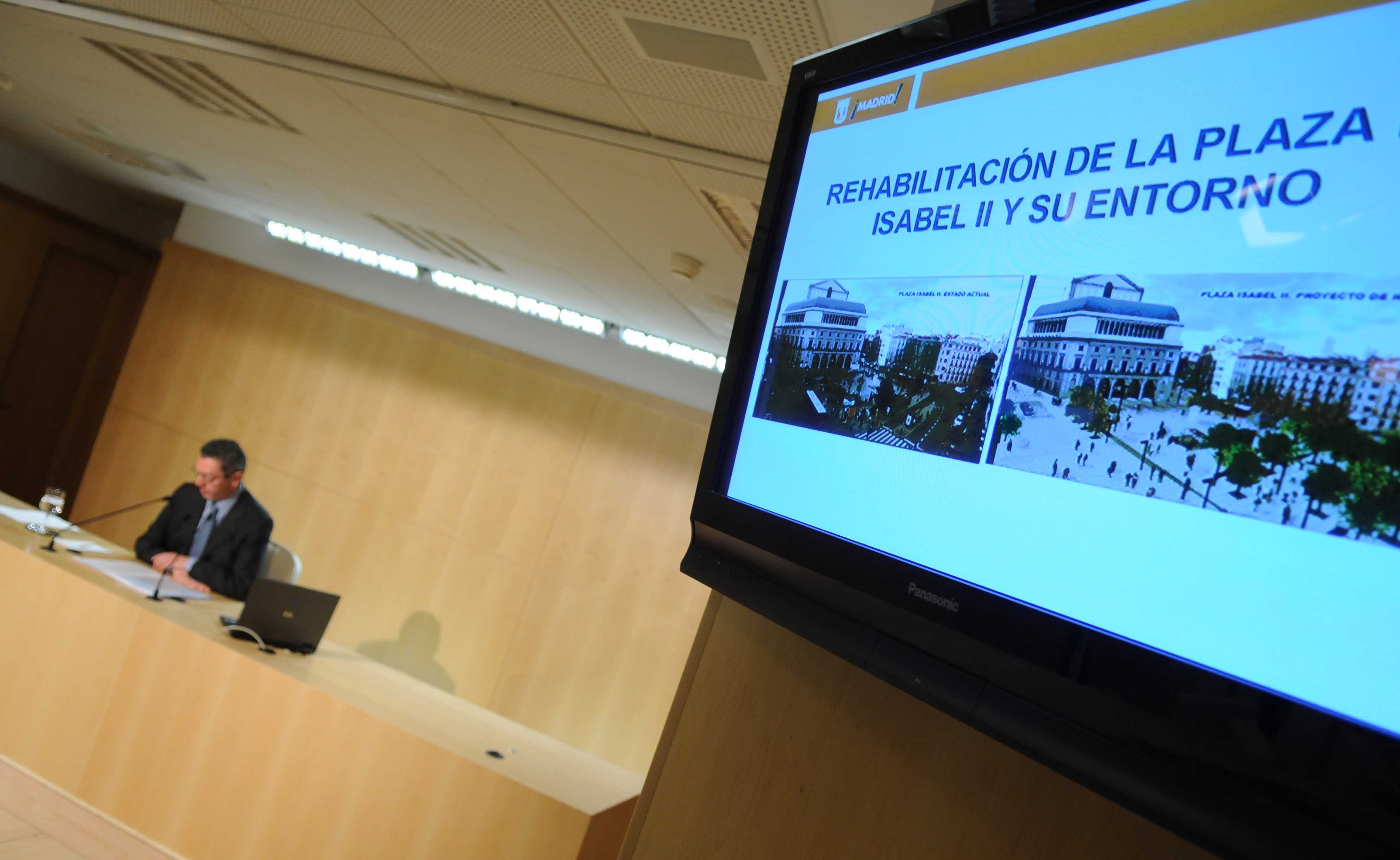 El alcalde de la Ciudad de Madrid, Alberto Ruiz-Gallardón, informó que la remodelación de la plaza de Isabel II permitirá liberarla del tráfico y que ganará un 49% más de espacio para los peatones.