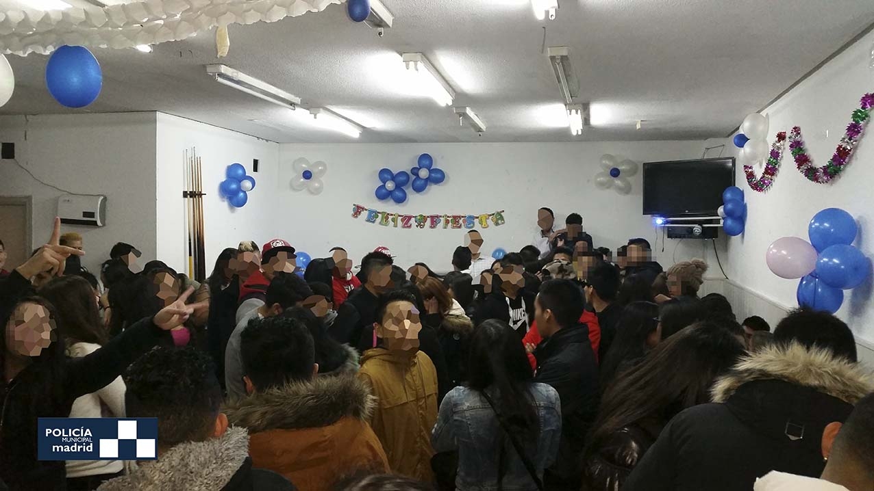 La Policía Municipal ha intervenido en dos fiestas ilegales que se celebraron el pasado fin de semana en los distritos de Puente de Vallecas y Fuencarral. Un locutorio y una nave industrial servían de locales para organizar fiestas en las que se concentraban mayor número de personas de las que cabían y donde se vendía alcohol a menores.