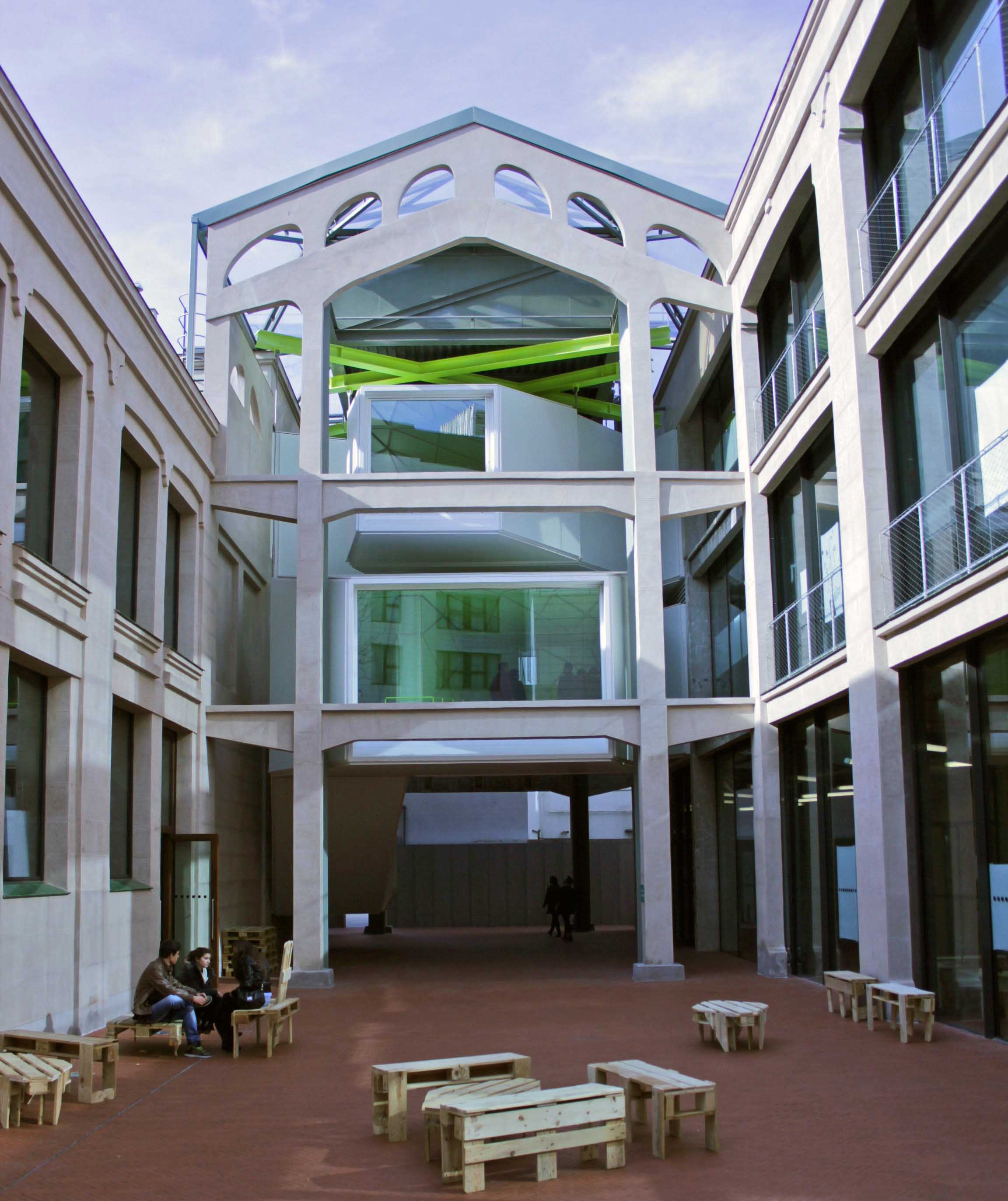El edificio cuenta con espacios diáfanos y estructuras singulares, como "La Cosa", una escalera central fluorescente y retroiluminada que comunica las dos naves, o la fachada digital, un dispositivo que cubre como un tapiz de luces la fachada norte y que se enciende para la proyección de piezas experimentales que juegan y se activan con el espacio el espacio exterior de la plaza de las Letras.