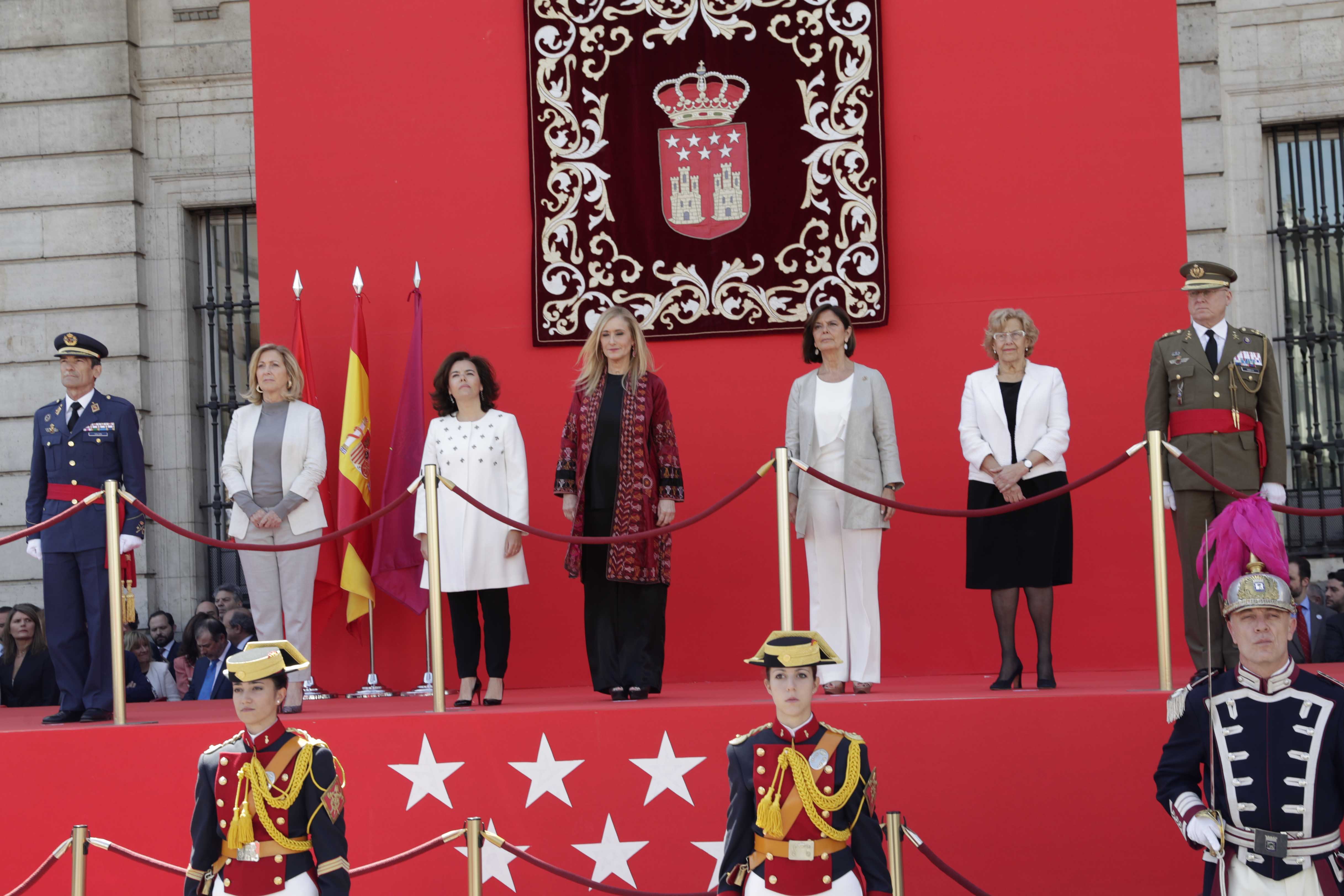 La alcaldesa de Madrid, Manuela Carmena, ha asistido al acto oficial de celebración del Día de la Comunidad de Madrid en la Real Casa de Correos, sede de la presidencia autonómica. Al acto ha acudido también la primera teniente de alcalde, Marta Higueras; el segundo teniente de alcalde y delegado de Coordinación Territorial, Nacho Murgui; y los delegados de Salud y Seguridad, Javier Barbero; de Desarrollo Urbano Sostenible, José Manuel Calvo y del distrito Centro, Jorge García Castaño. También han estado presentes los portavoces de los grupos municipales de la oposición: Purificación Causapié -PSOE-, Begoña Villacís -C’s- y José Luis Martínez-Almeida -PP-. La alcaldesa ha participado junto con la presidenta autonómica, Cristina Cifuentes, en la ofrenda floral a los héroes del 2 de mayo.
