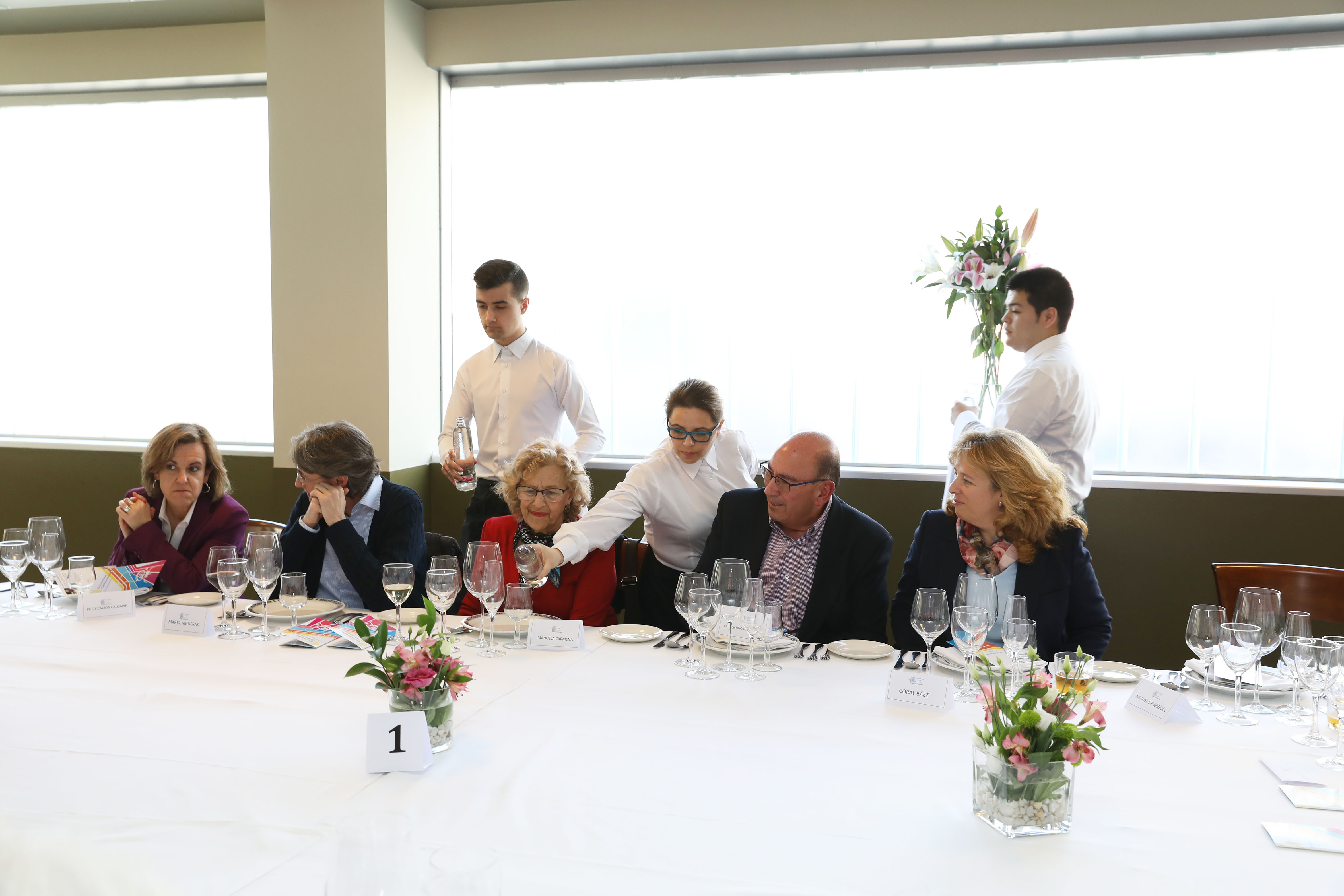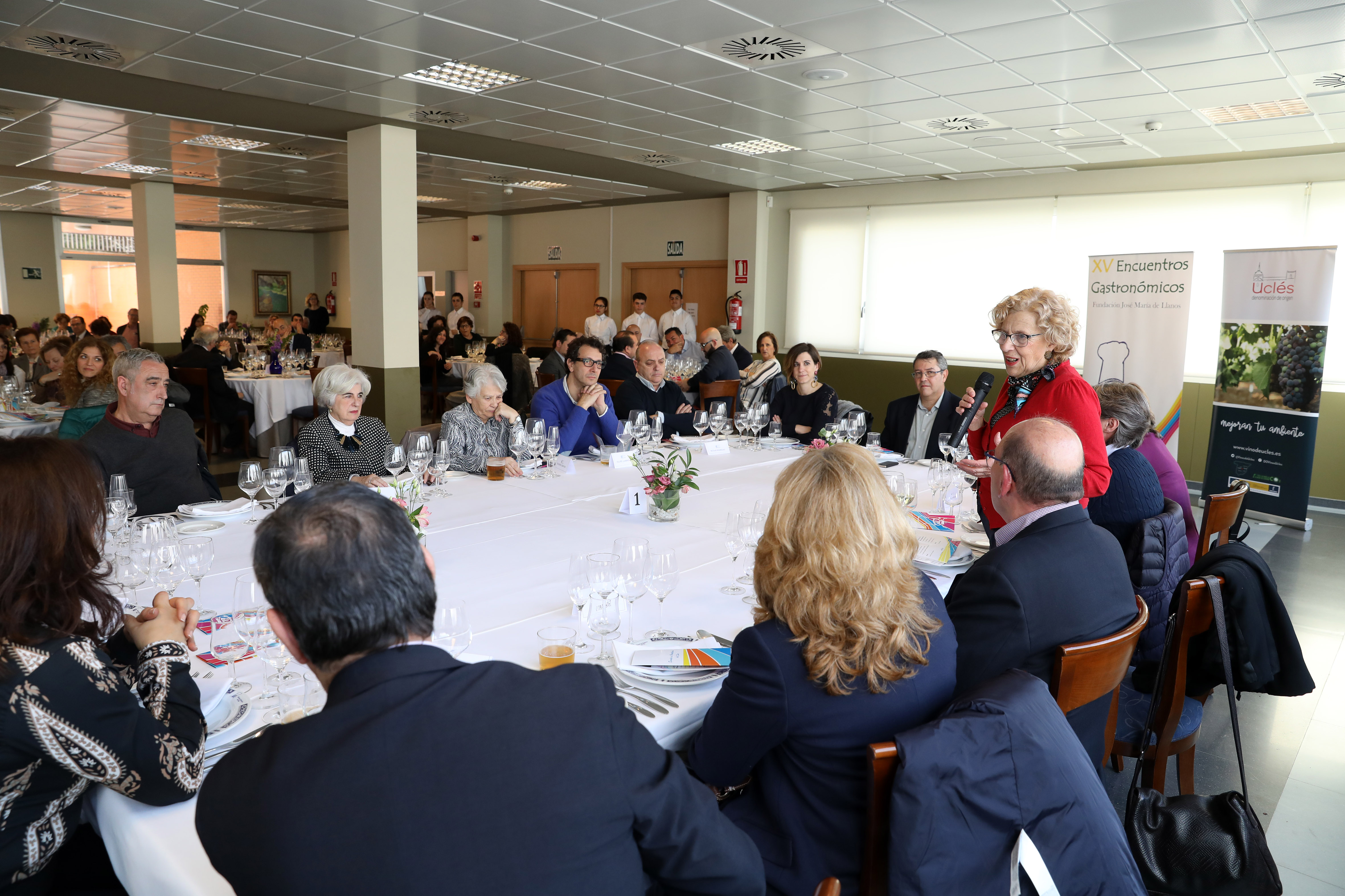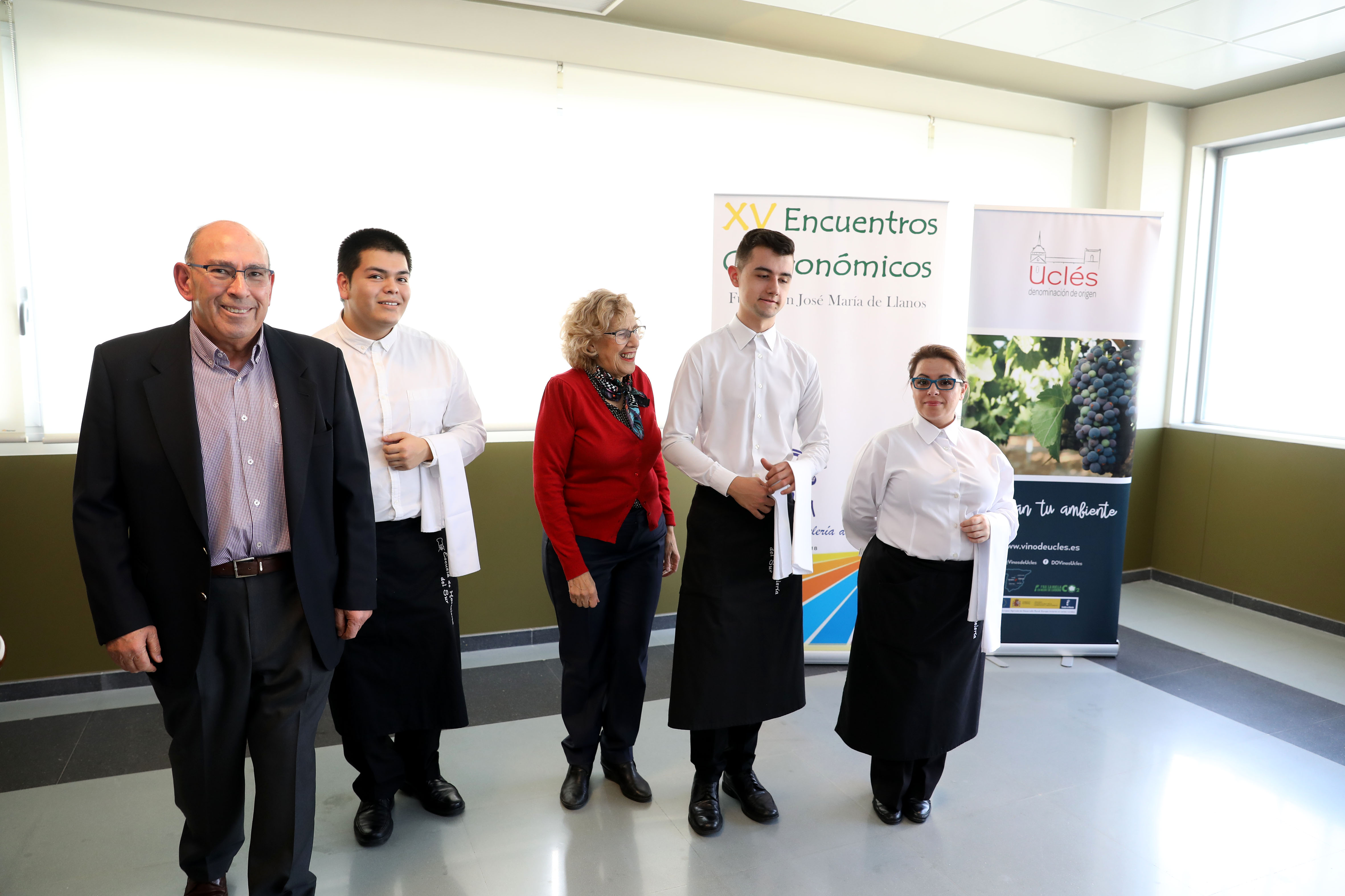 Manuela Carmena, alcaldesa de Madrid, ha compartido mesa con algunos concejales y responsables de educación tanto del centro como de la Comunidad de Madrid, en la decimoquinta edición de los Encuentros Gastronómicos que, durante tres días, reúnen en la escuela a los alumnos con algunos de los profesionales de la cocina más prestigiosos de país. Por estos encuentros han pasado nombres como Mario Sandoval, Jean Pierre Vandelle, Ramón Freixa y María Mestanza. Si Carmena ha sido la encargada de la apertura, el cierre de esta edición correrá a cargo del secretario general de la Organización Mundial del Turismo (OMT), Zurab Pololikashvili.
