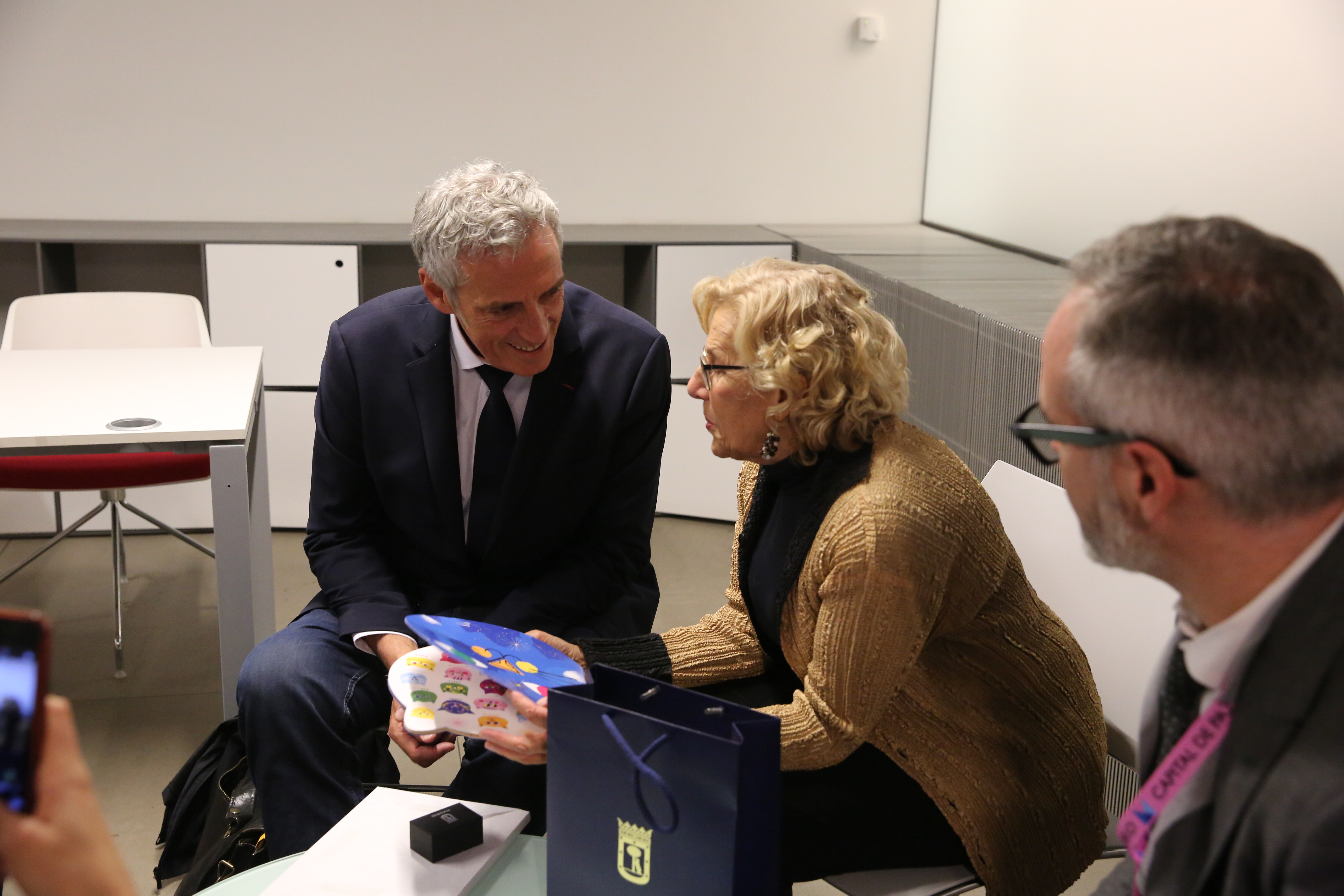 Por otro lado, Manuela Carmena, se ha reunido también hoy en Matadero Madrid con el alcalde de la urbe francesa de Montpellier , Philippe Saurel, con quien ha conversado sobre la posibilidad de generar sinergias y colaborar entre ambas ciudades. /