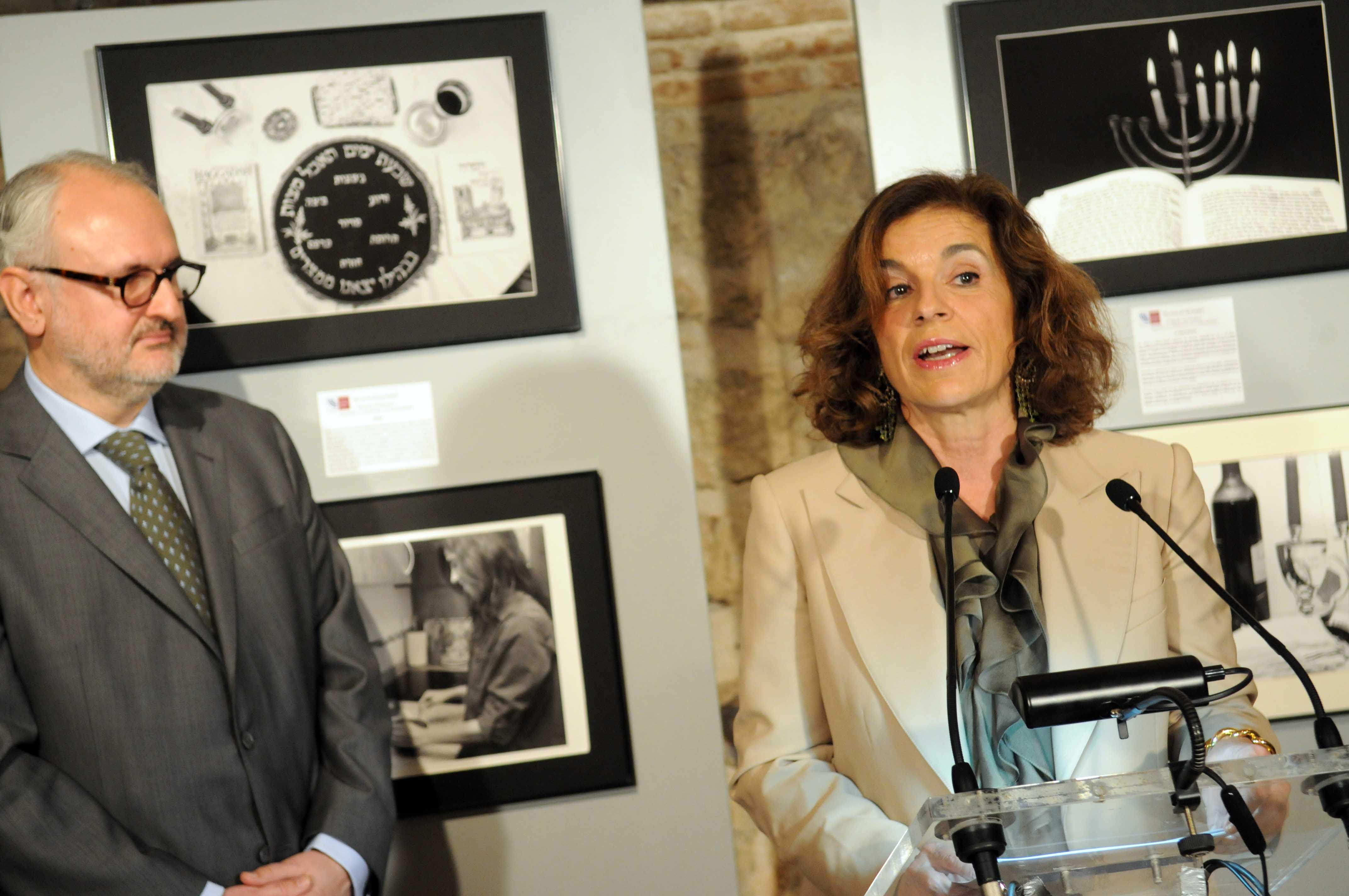 En las imágenes la alcaldesa Ana Botella, acompañada del delegado de Las Artes, Fernando Villalonga, y el concejal Diego San Juan Benito, además del director de la casa Sefarad, Florentino Portero, y el vicepresidente de la comunidad judía en Madrid, Vidal Israel.