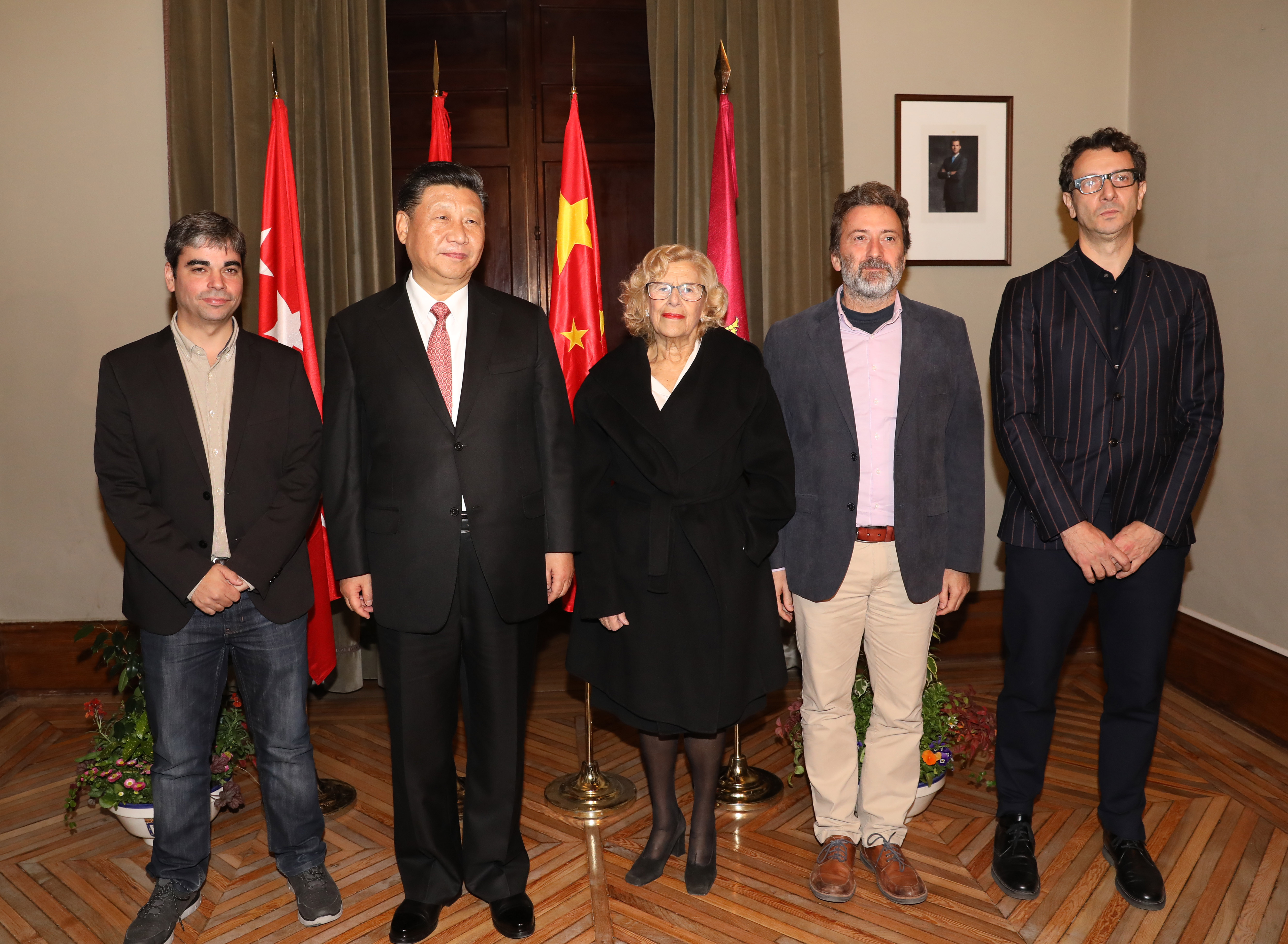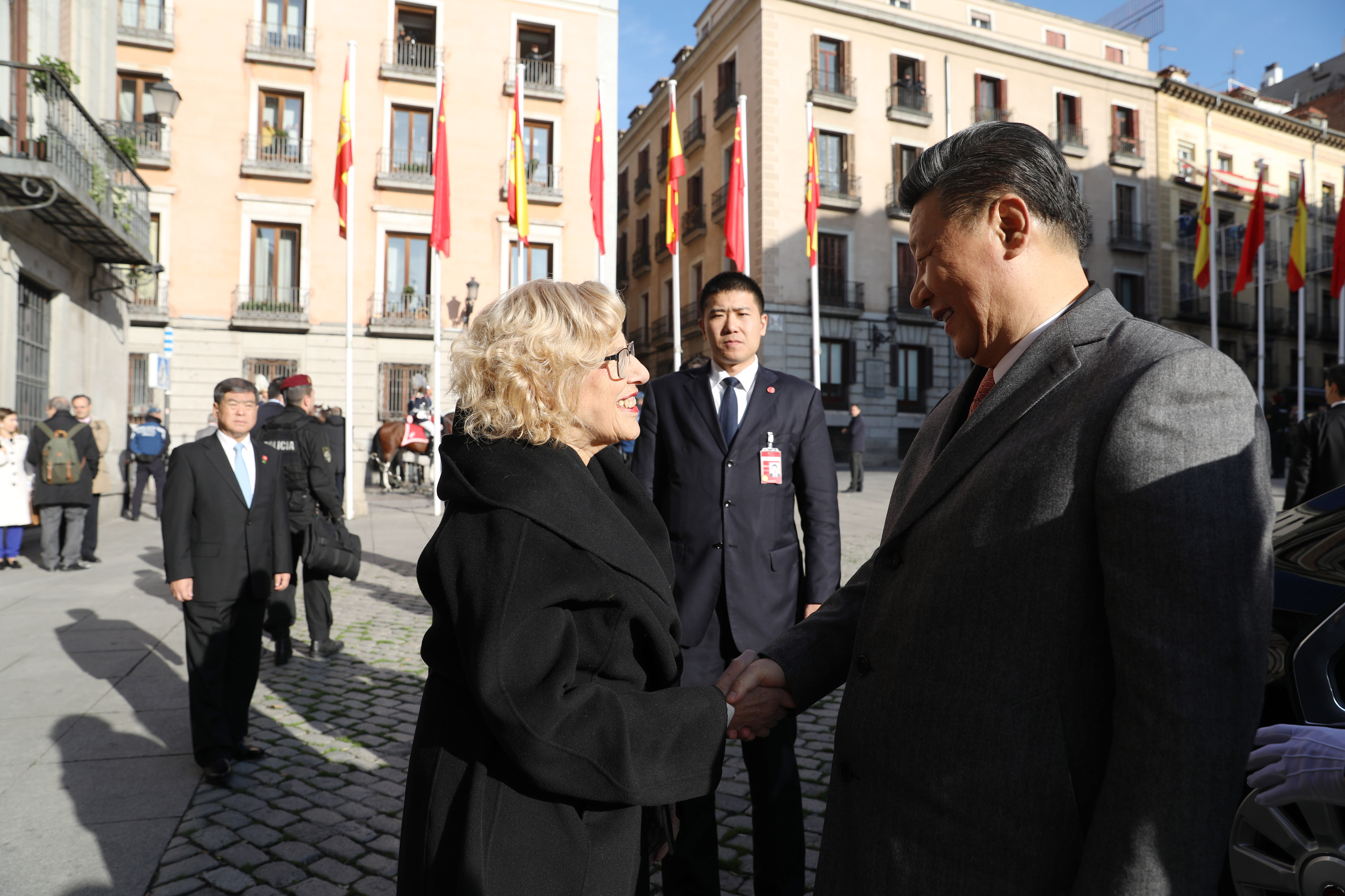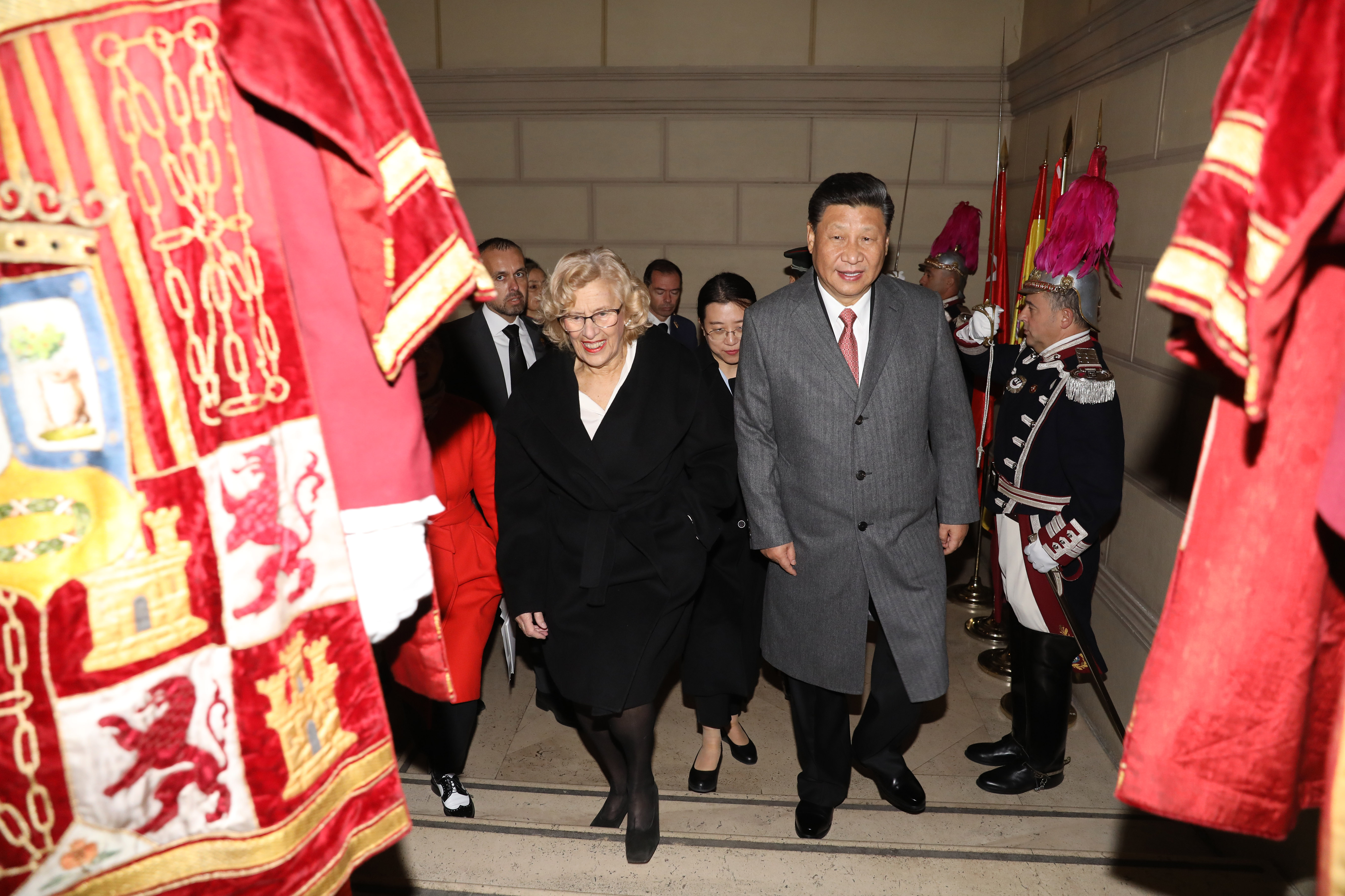 La alcaldesa entrega la Llave de Madrid al presidente chino en su visita al Ayuntamiento