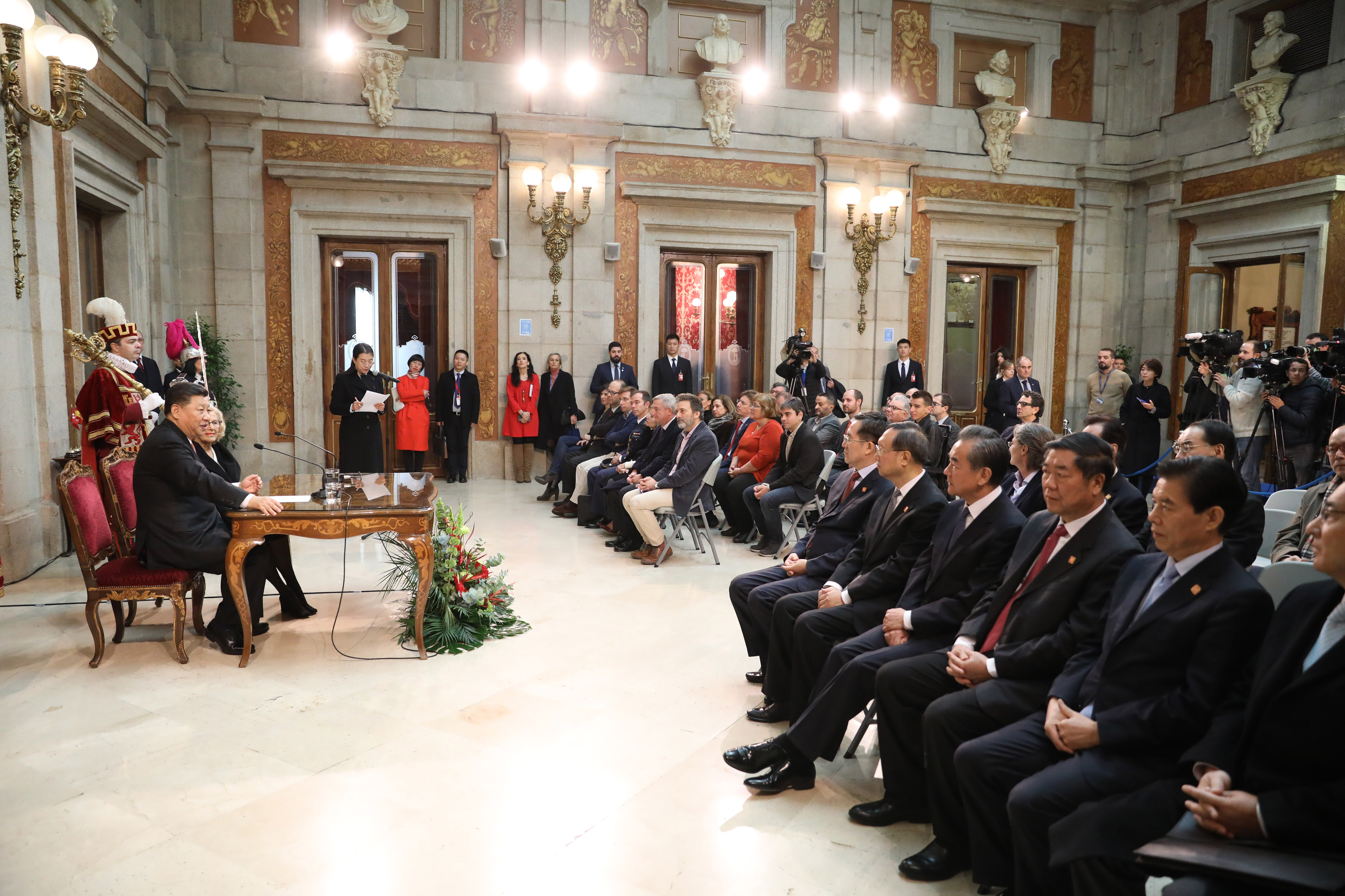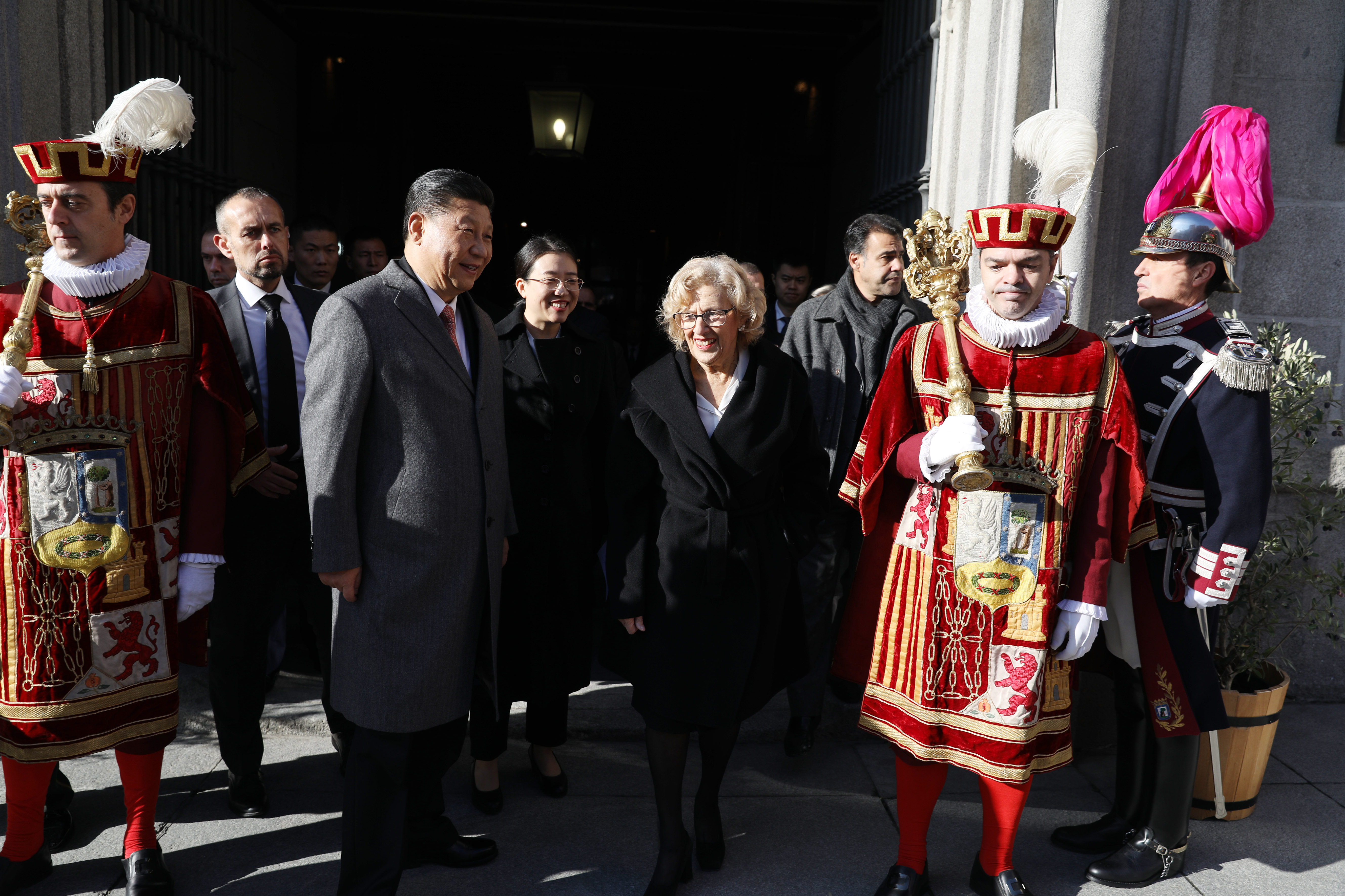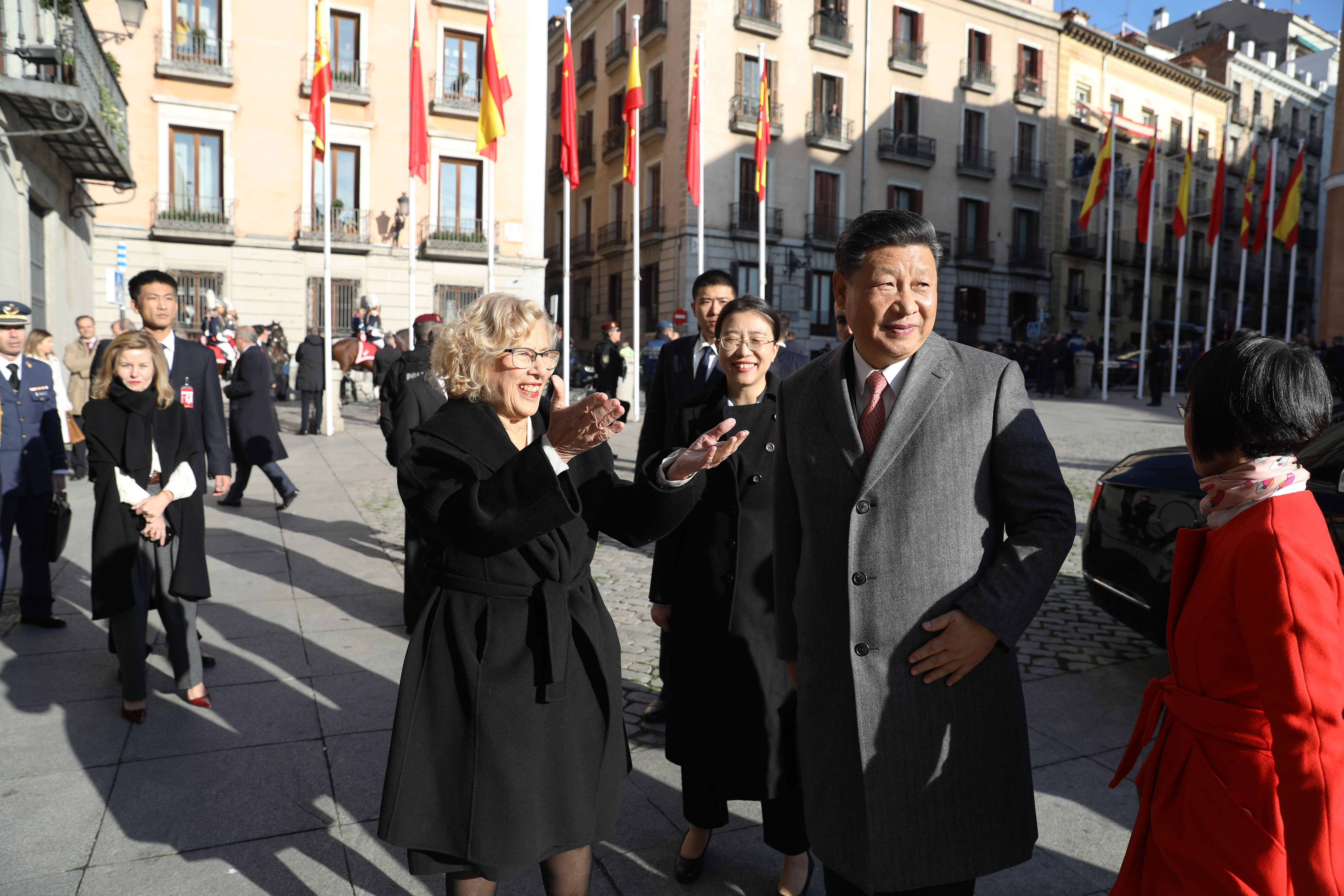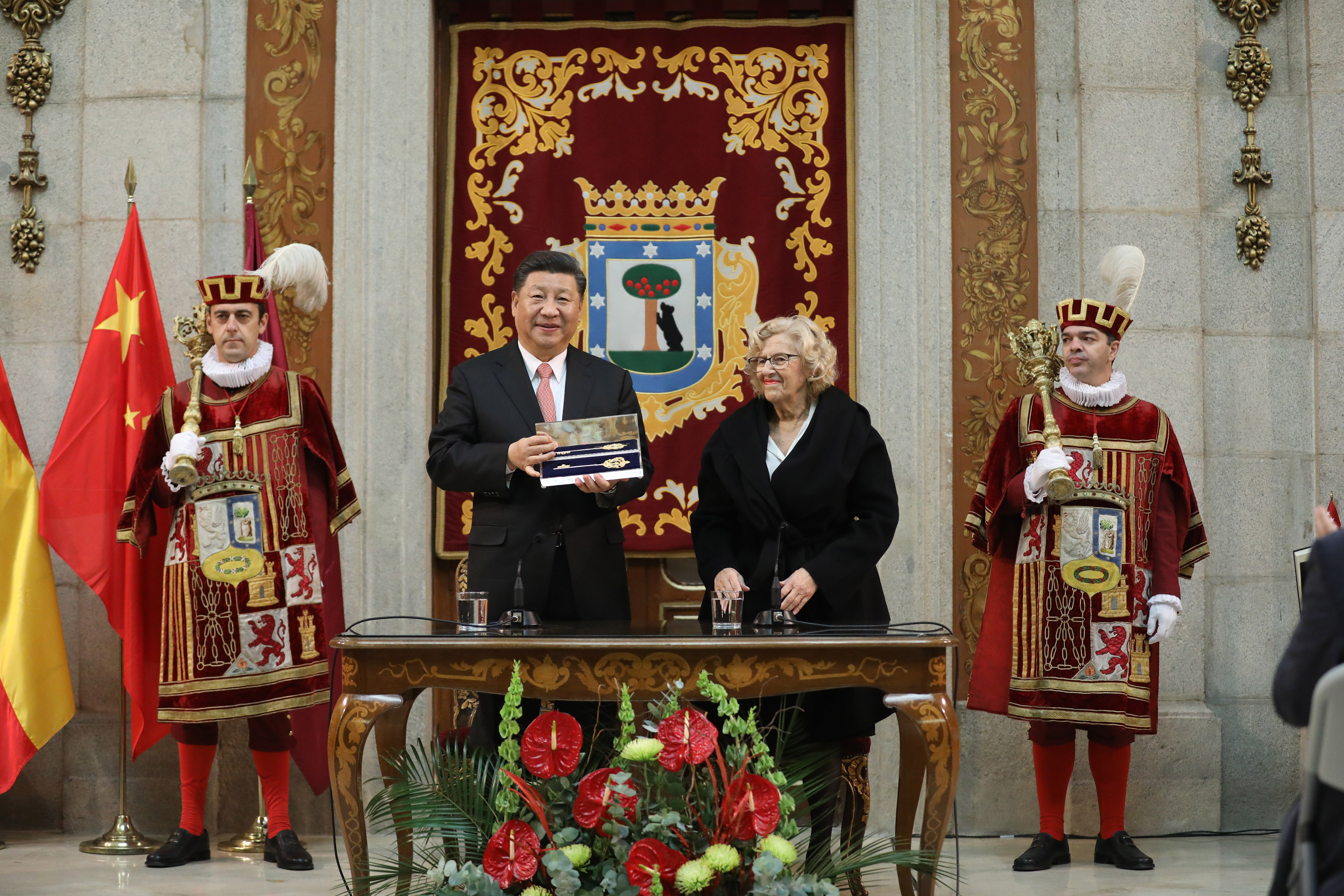 Manuela Carmena, alcaldesa de Madrid ha entregado esta mañana, miércoles 28 de noviembre, la Llave de oro de la ciudad al presidente Chino, Xi Jinping, que se encuentra de visita oficial en Madrid, en lo que es su primera parada del viaje a Europa que realiza tras su nombramiento al frente del país asiático. En la Casa de la Villa, Carmena ha subrayado la importante presencia de la comunidad china en la ciudad, lo que ha llevado al Ayuntamiento de Madrid a incorporar “como una fiesta suya”, la celebración del Año Nuevo Chino, que ya se ha consolidado en el calendario cultural madrileño.