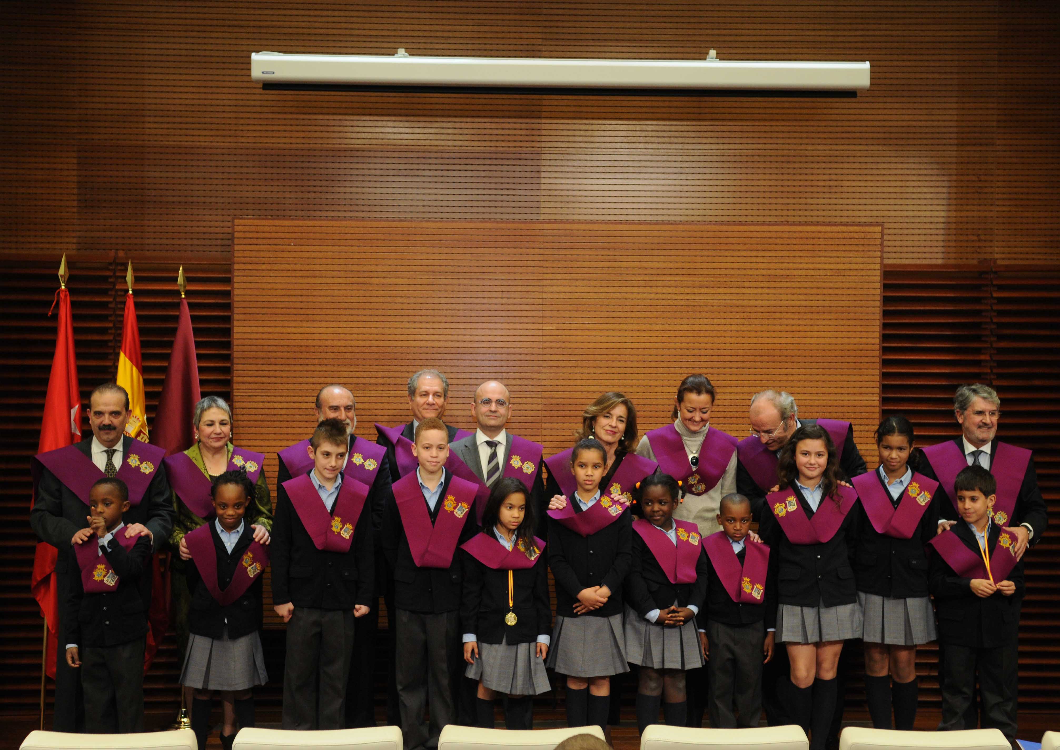 Los niños de San Ildefonso han dejado hoy las aulas de su colegio y se han trasladado al palacio de Cibeles, donde la alcaldesa, Ana Botella, les ha recibido y les ha concedido las becas que anualmente entrega la institución académica a sus alumnos y antiguos alumnos, a profesionales que trabajan en el internado y a otras personalidades que han hecho labores favorecedoras para el buen funcionamiento del centro. Las becas colegiales se han concedido a doce nuevos residentes: Kevin, Naomi, Alex, Darius, Leonardo, Yaneiri, Isabel, Samira, Loida, Julián Steven, Adriana Arisel y Youssef. Los premios han sido para la Fundación Germán Sánchez Ruipérez, Disney España, Sociedad de Loterías y Apuestas del Estado, Ángel del Río, y Pedro Corral, concejal presidente de la Junta de Distrito de Centro.
