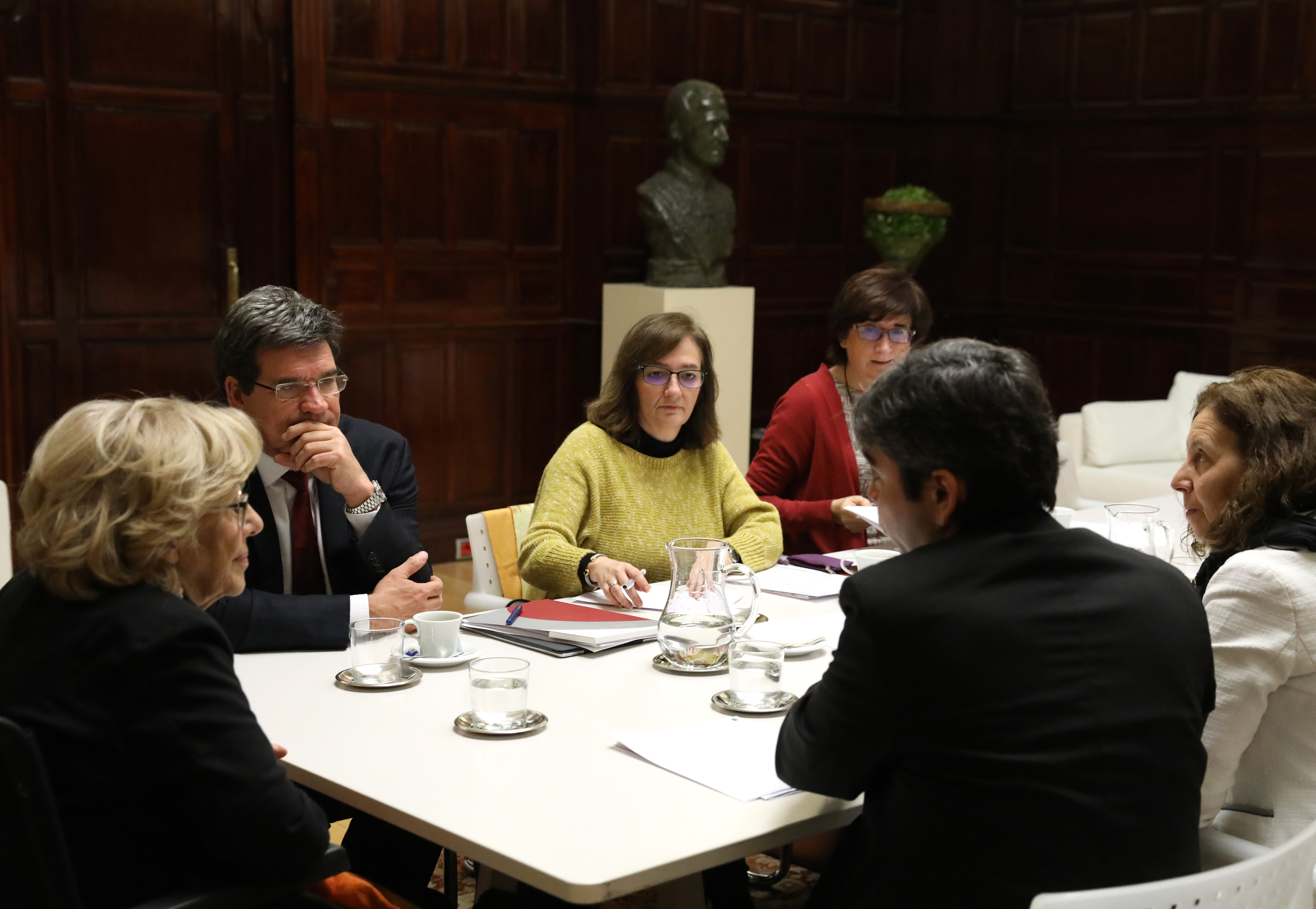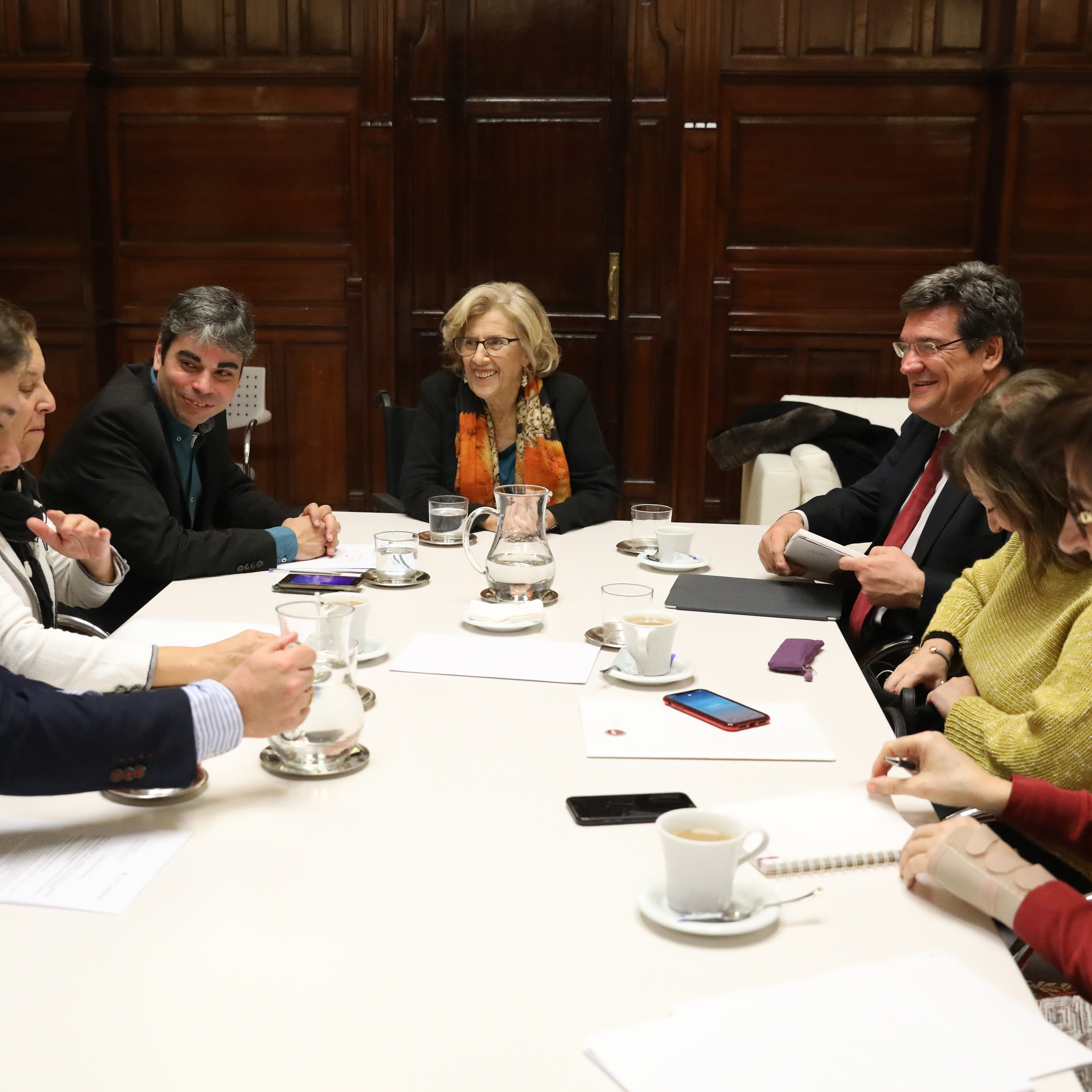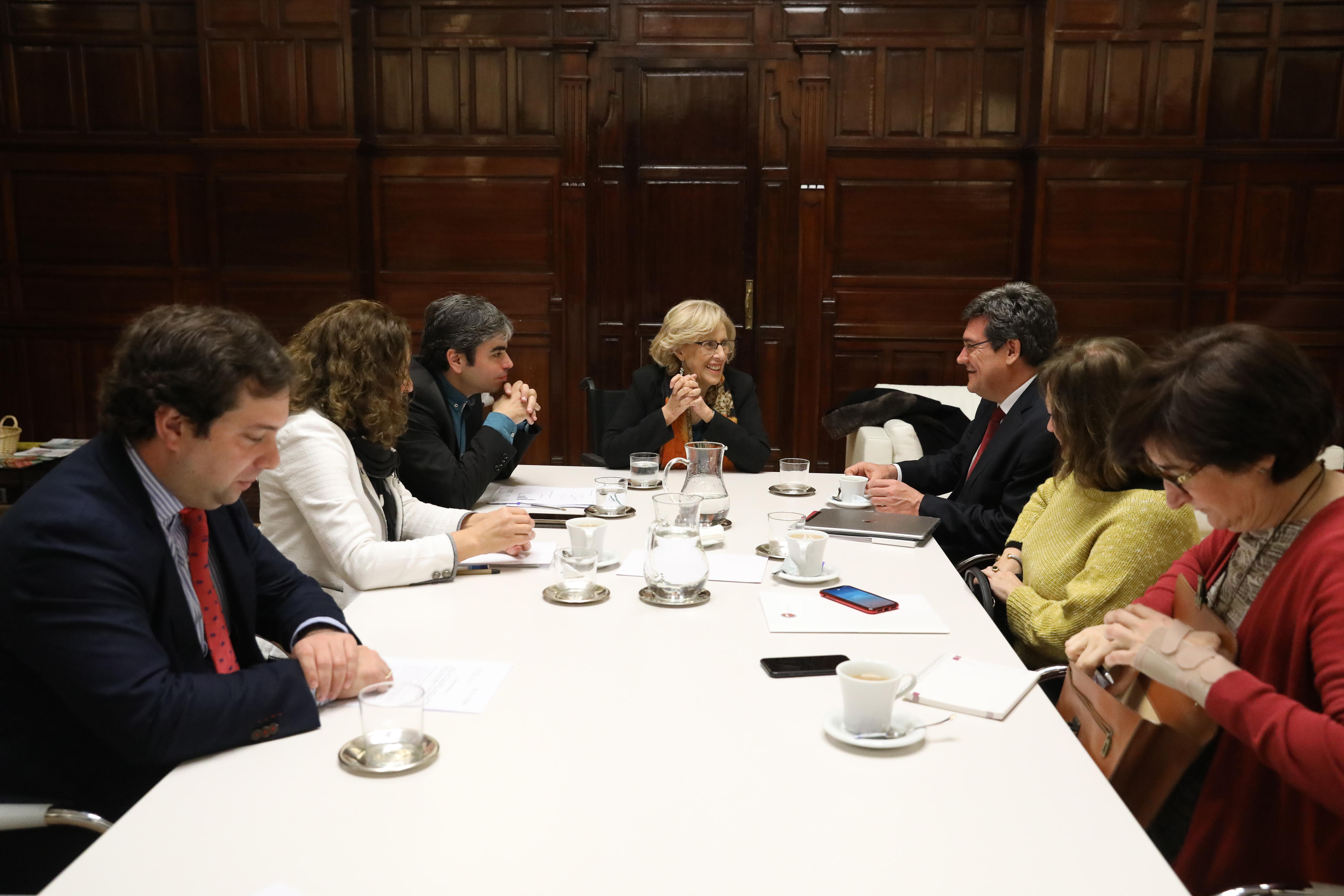 La alcaldesa de Madrid, Manuela Carmena, ha mantenido hoy, viernes, una reunión de trabajo con José Luis Escrivá, presidente de la Autoridad Independiente de Responsabilidad Fiscal (AIREF), en su despacho del palacio de Cibeles. En el encuentro también han participado el delegado de Economía y Hacienda, Jorge García Castaño, y la interventora general del Ayuntamiento, María José Monzón, así como la directora de la división de Análisis Presupuestario de la AIREF y la subdirectora general del área de Comunidades Autónomas y Entidades Locales./