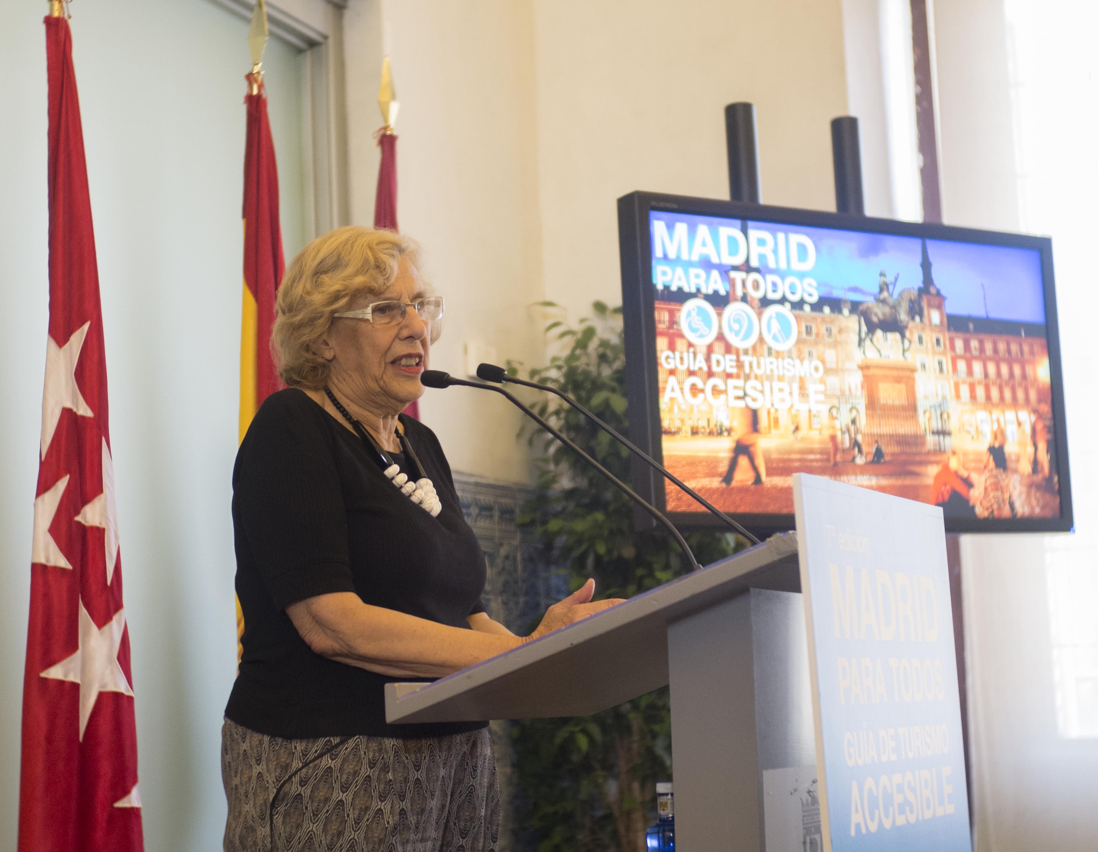Esta mañana (lunes, 18 de julio), la alcaldesa de Madrid, Manuel Carmena, ha presentado la séptima edición de la guía de turismo accesible, dentro del programa Madrid para todos, una de las herramientas de turismo inclusivo del Ayuntamiento de Madrid que está a disposición de todos los madrileños y visitantes. La presentación ha tenido lugar en el Salón Real de la Casa de la Panadería en la Plaza Mayor.