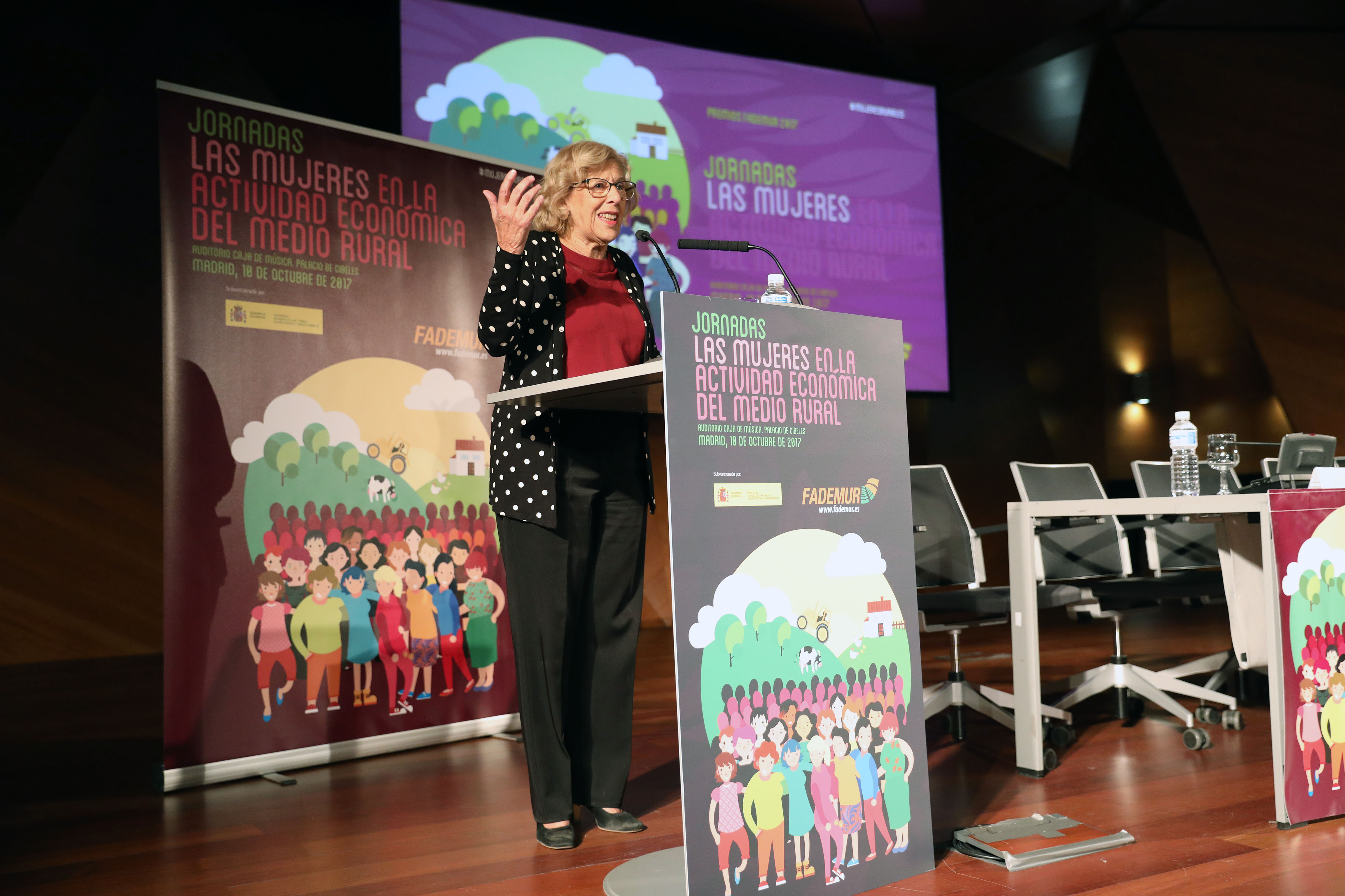 La necesidad de mantener el equilibrio entre lo rural y lo urbano, entre el campo y la ciudad, apoyándose además en quienes, por cultura, están más relacionadas con lo cotidiano, las mujeres. Ese es el mensaje que Manuela Carmena, alcaldesa de Madrid, ha transmitido hoy martes, 10 de octubre, a las más de 300 mujeres que han participado en CentroCentro en una jornada organizada por la Federación de Asociaciones de Mujeres Rurales (FADEMUR).