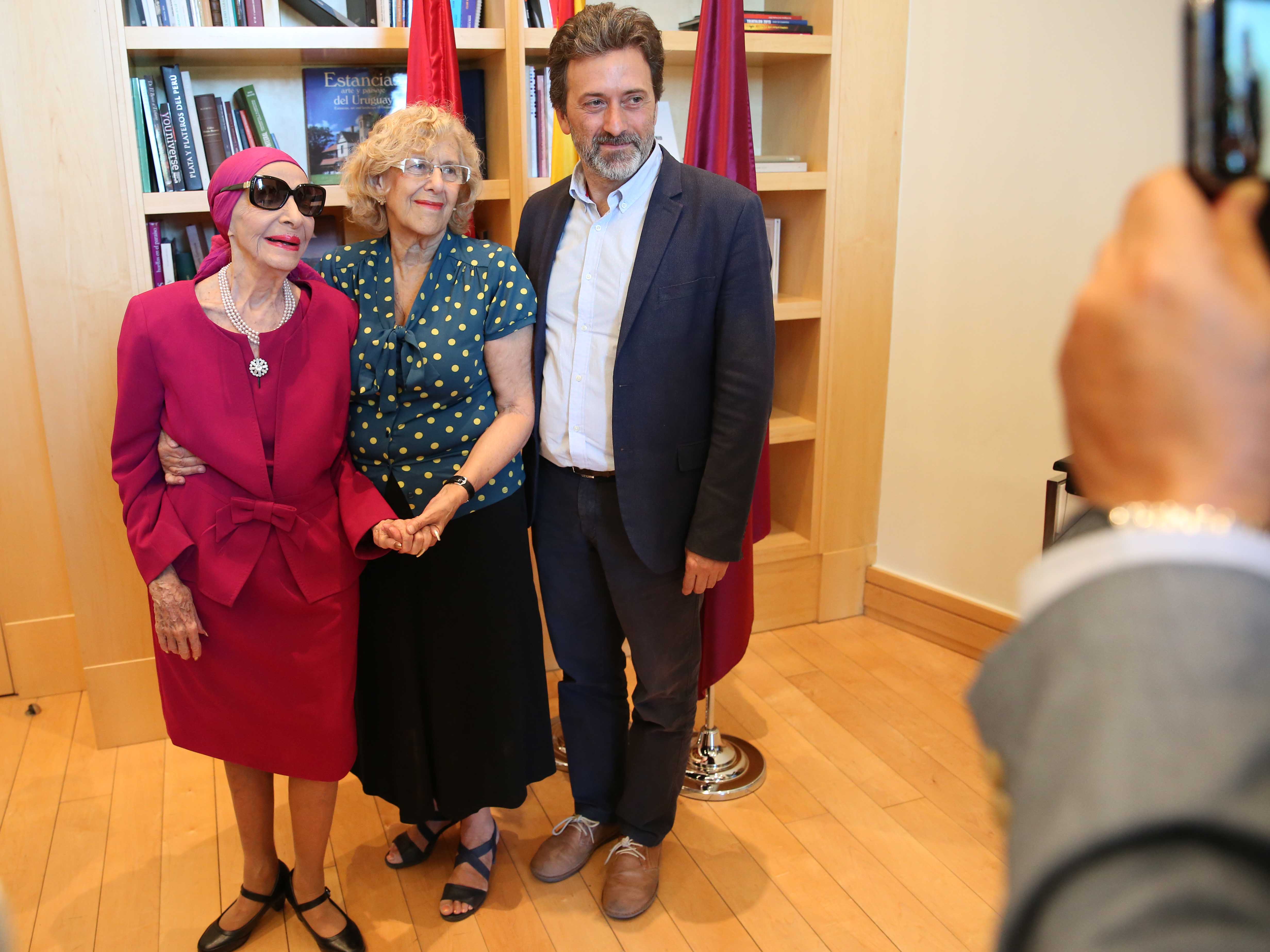 Leyenda de la danza, prima ballerina assoluta, gran dama del ballet. Son solo tres de los calificativos que reúne la figura de Alicia Alonso. La alcaldesa de Madrid, Manuela Carmena, ha recibido hoy en su despacho del palacio de Cibeles a la bailarina cubana, acompañada de su marido, el escritor Pedro Simón. Nacida en La Habana, hija de padres españoles, fue en su ciudad natal donde se inició en el ballet y en 1948 fundó el Ballet Alicia Alonso, hoy Ballet Nacional de Cuba. Ha sido la inspiración y el referente para la formación de varias generaciones de bailarines cubanos.