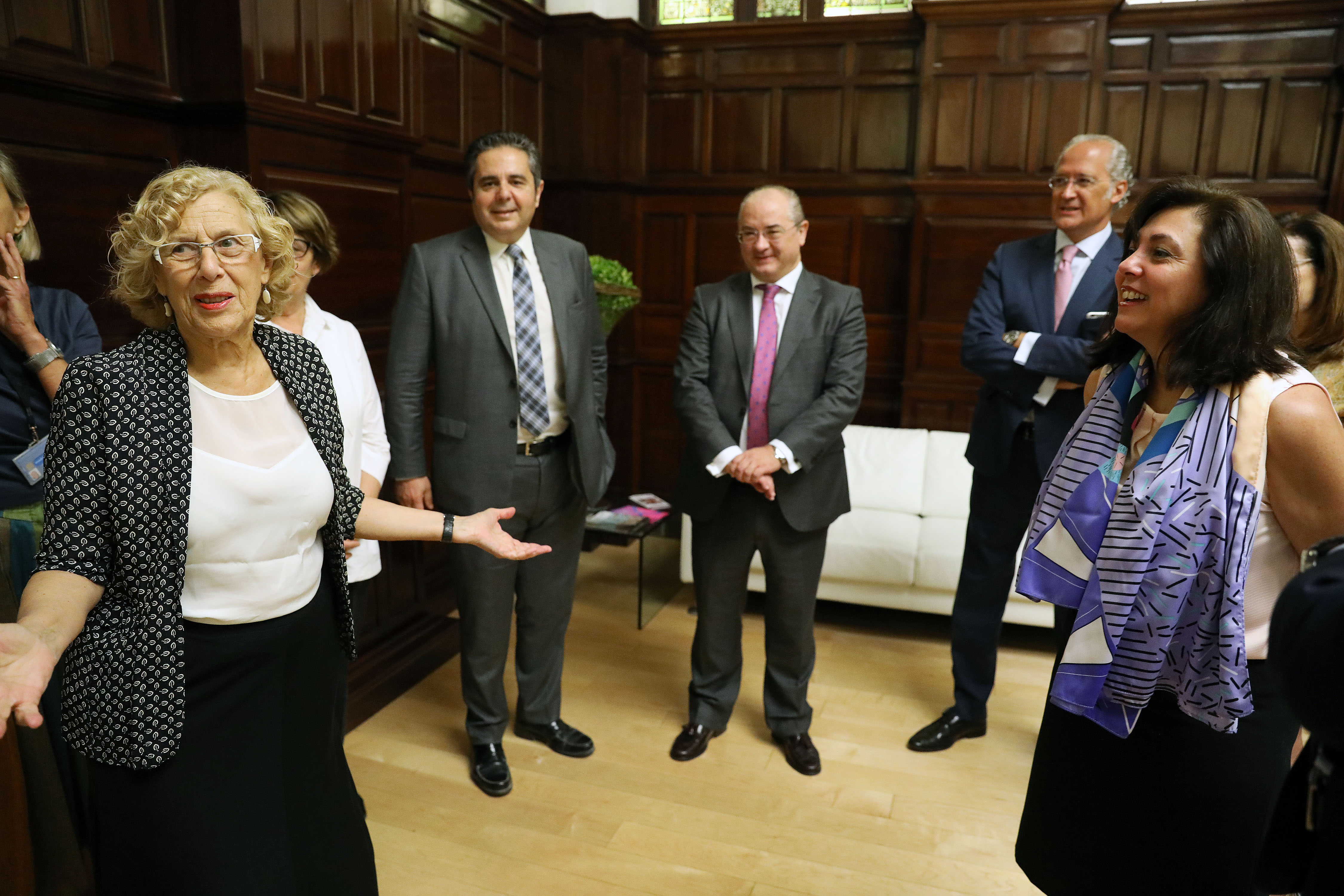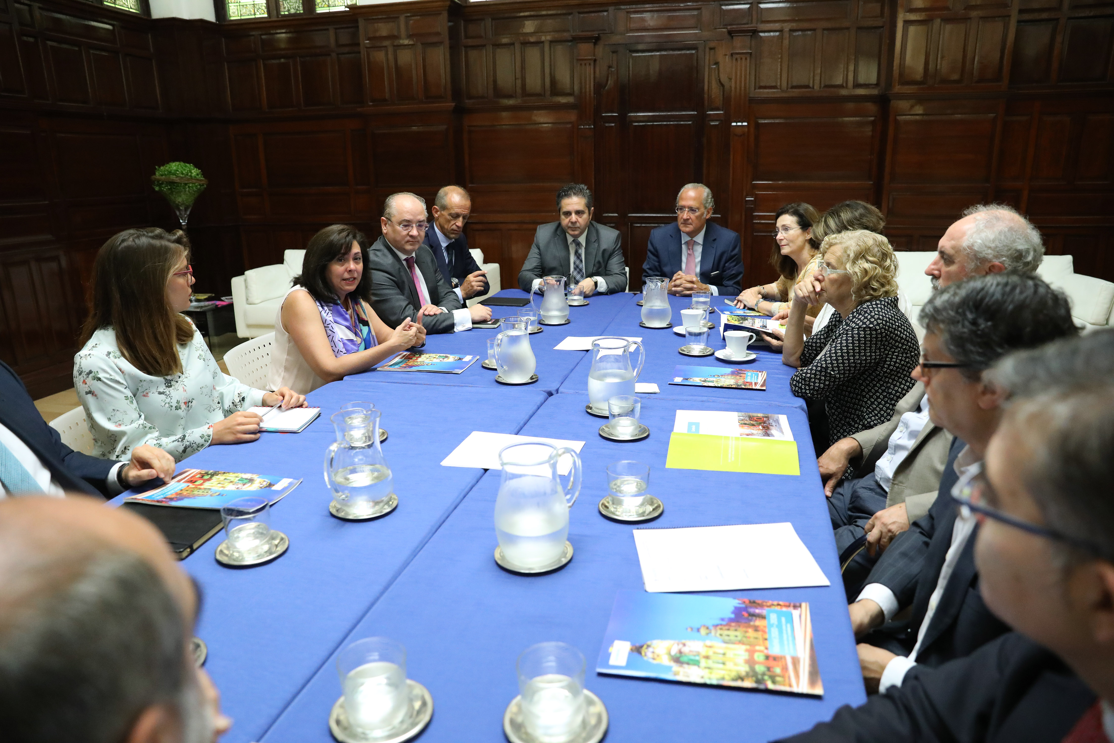 Manuela Carmena durante la reunión mantenida con Rosa García, presidenta de Siemens España