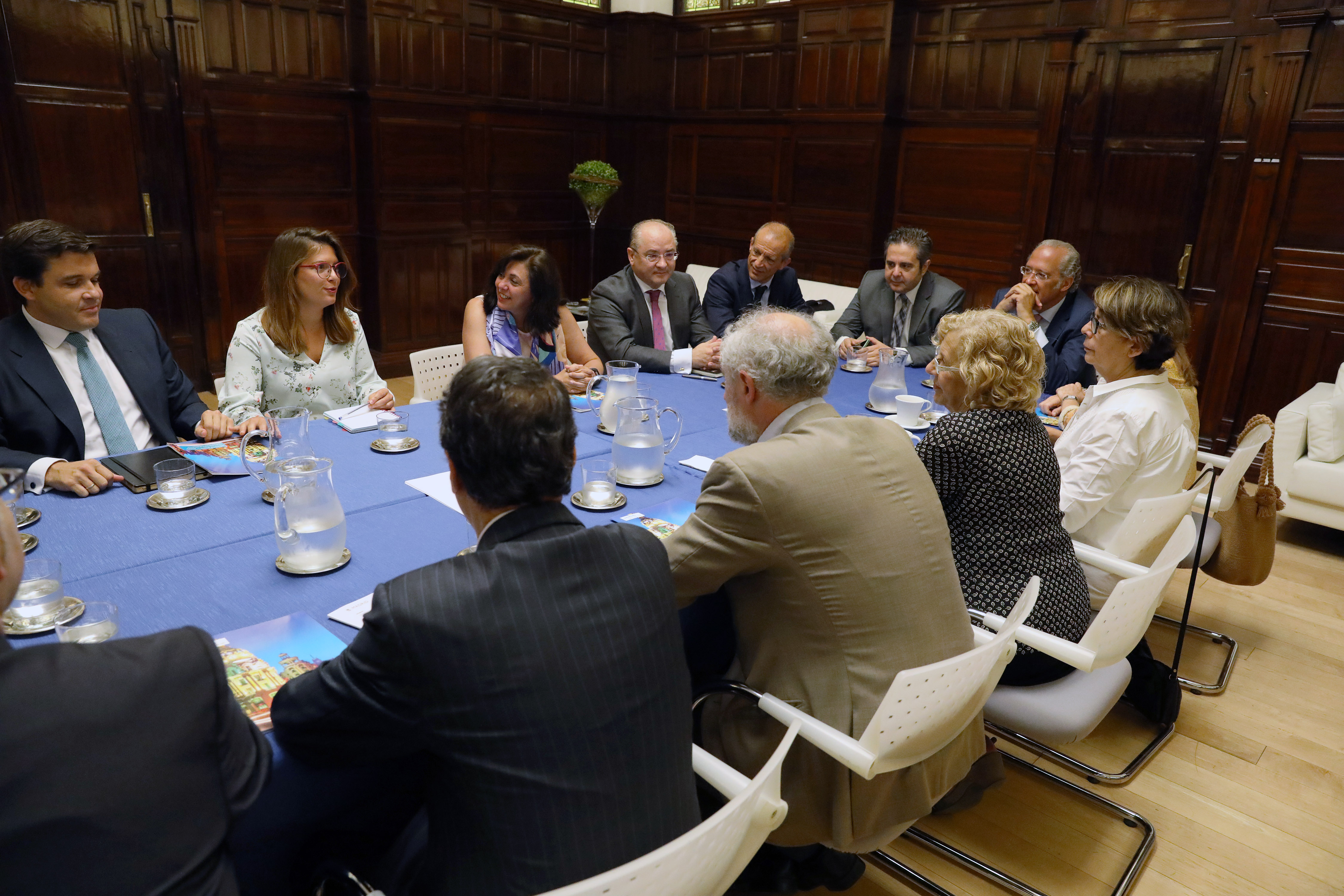 La alcaldesa de Madrid, Manuela Carmena, se ha reunido esta mañana en el palacio de Cibeles con la presidenta de Siemens España, Rosa García, y otros directivos de la empresa quienes le han presentado el resultado de un estudio, basado en más de 200 datos facilitados por el Ayuntamiento, encaminado a disminuir los gases contaminantes y mejorar la calidad del aire en la capital.