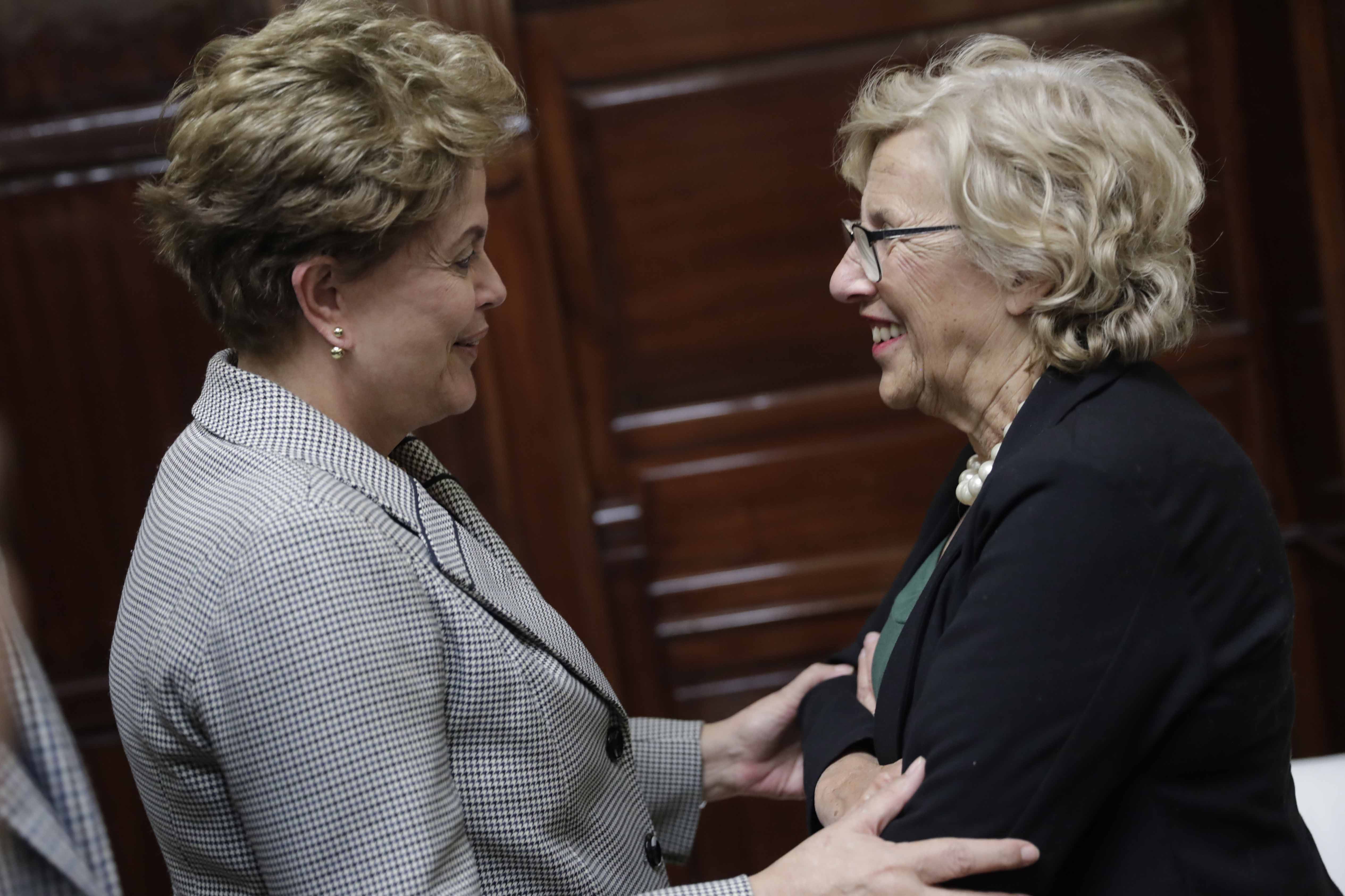 Antes de la conferencia, celebrada en el salón de actos del Ayuntamiento, Rousseff y Samper conversaron con Carmena sobre el creciente papel de las ciudades en el mundo, así como sobre diversos aspectos de la situación política general. Tras la reunión con la alcaldesa, Rousseff y Samper pronunciaron sendas conferencias y más tarde participaron en un debate en el que también intervinieron Esther del Campo, decana de la Facultad de Ciencias Políticas y Sociología de la Complutense; María Eugenia Palop, de la Universidad Carlos III, y Ludolfo Paramio, del Consejo Superior de Investigaciones Científicas. /