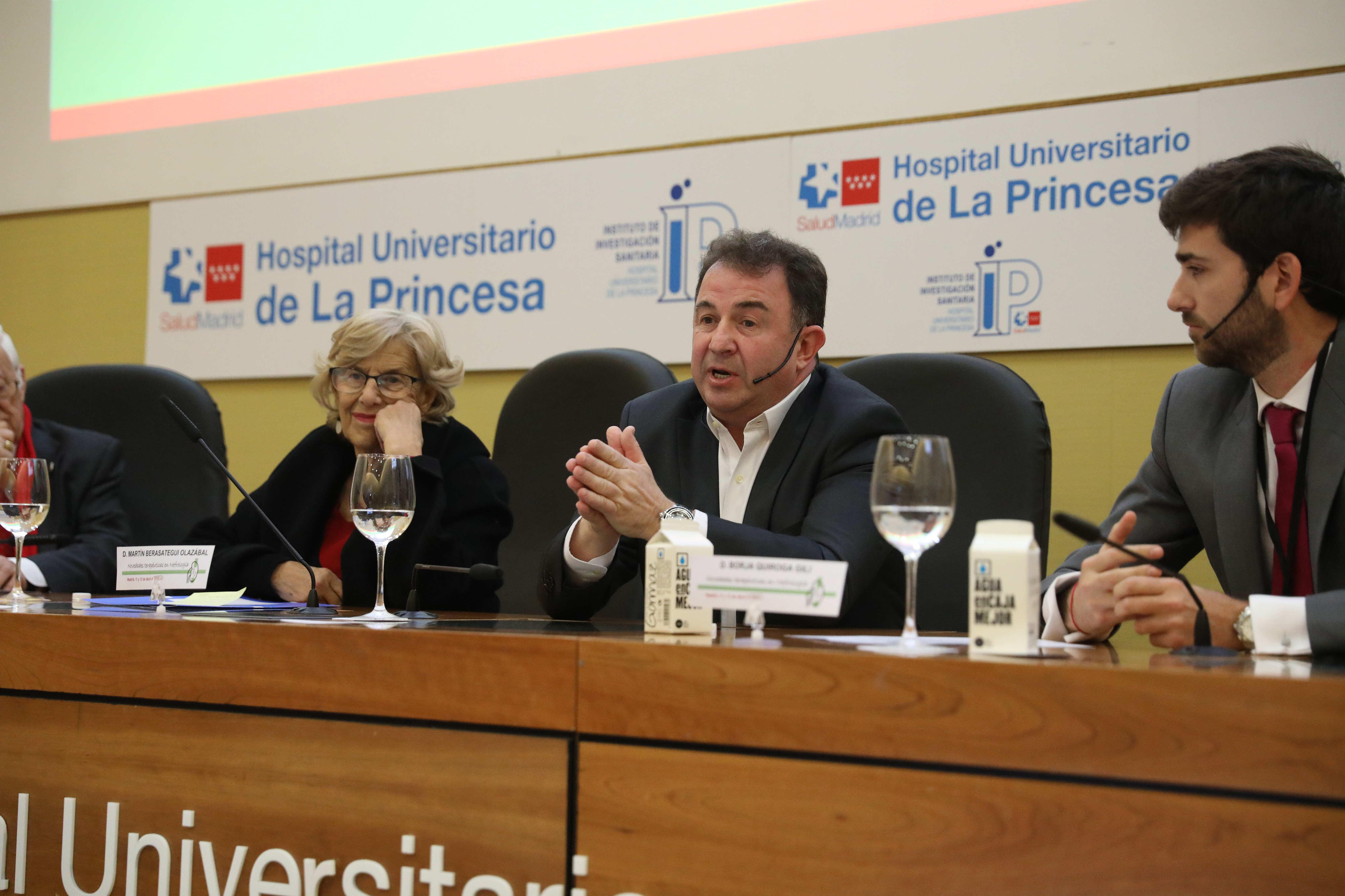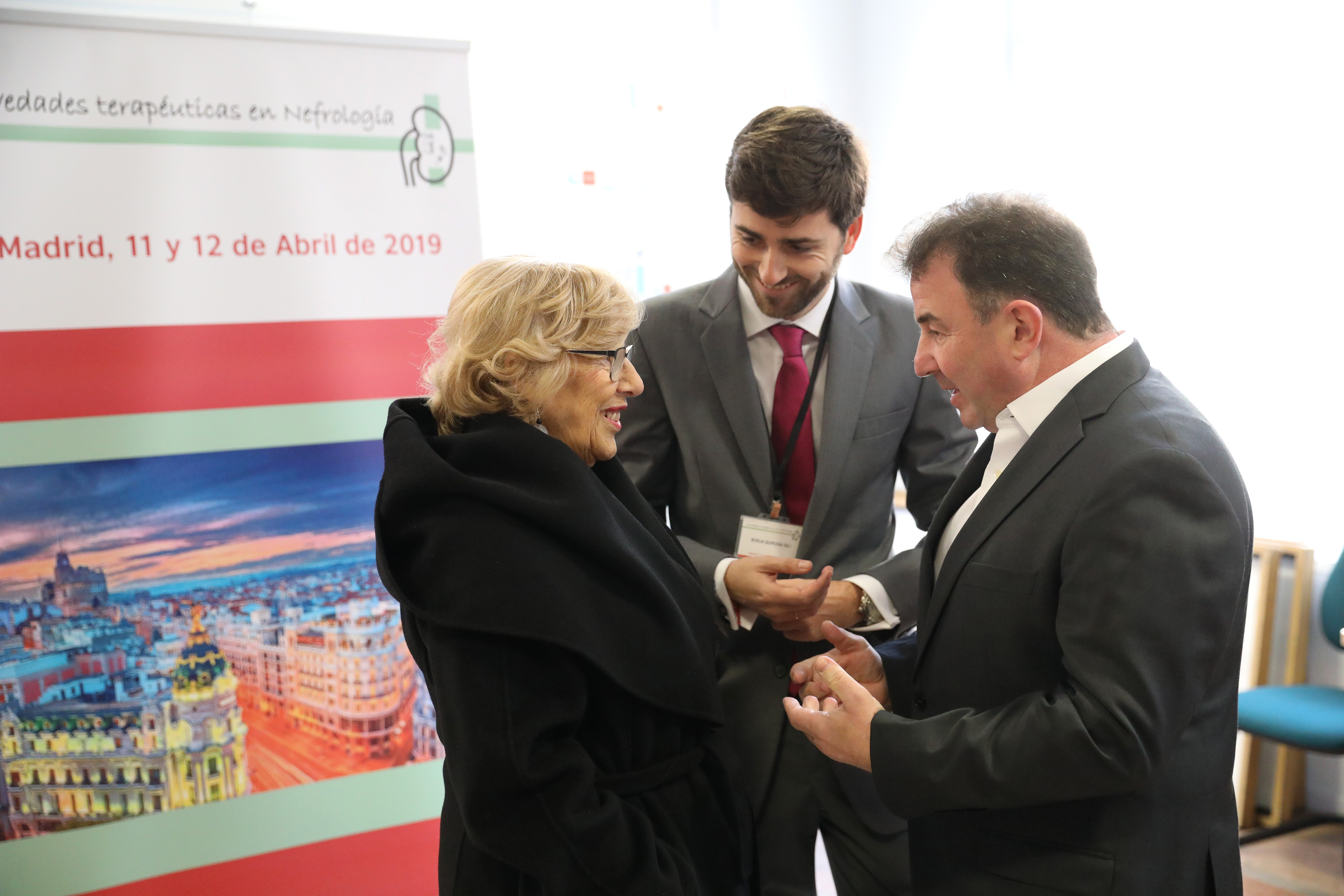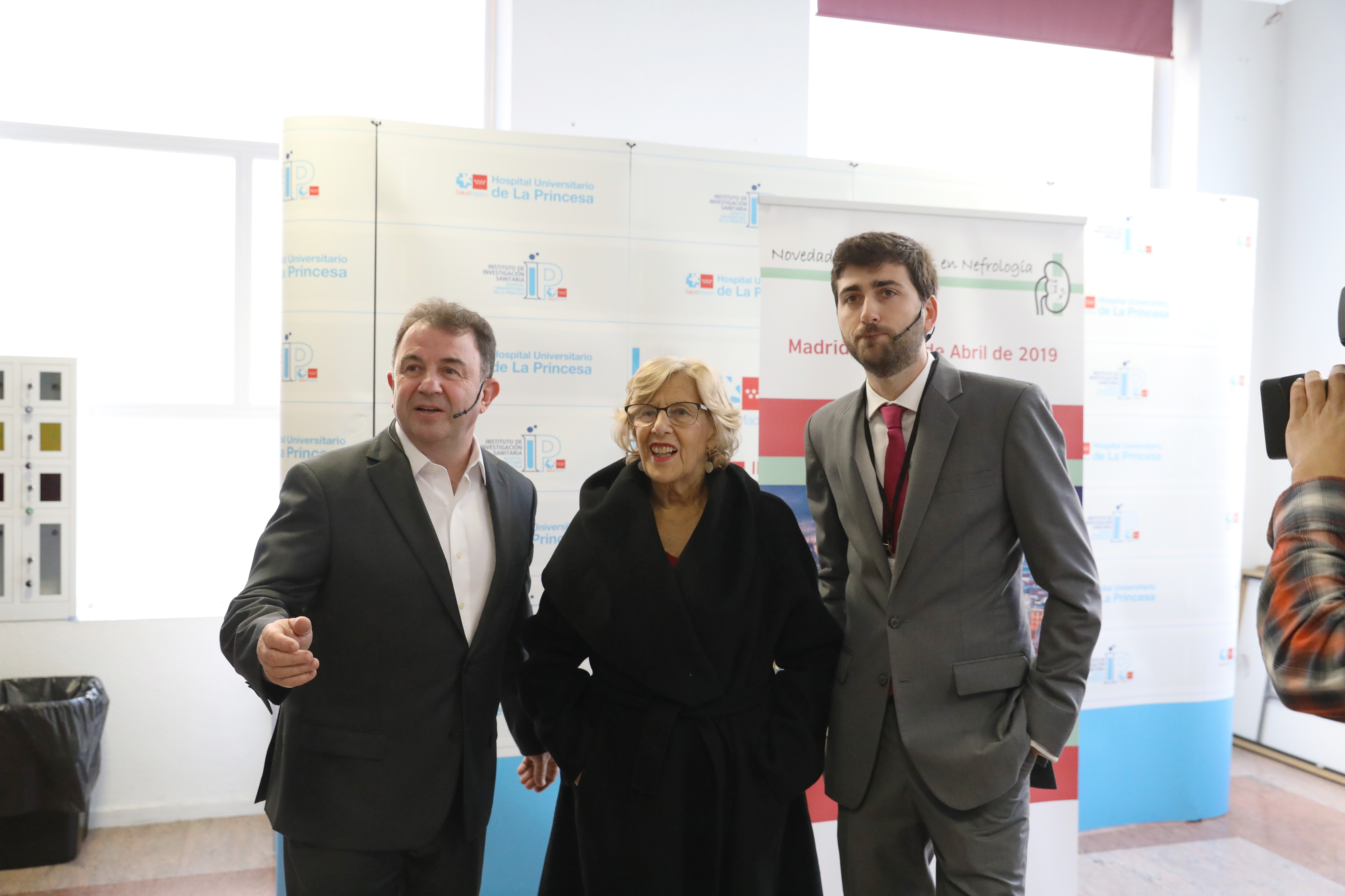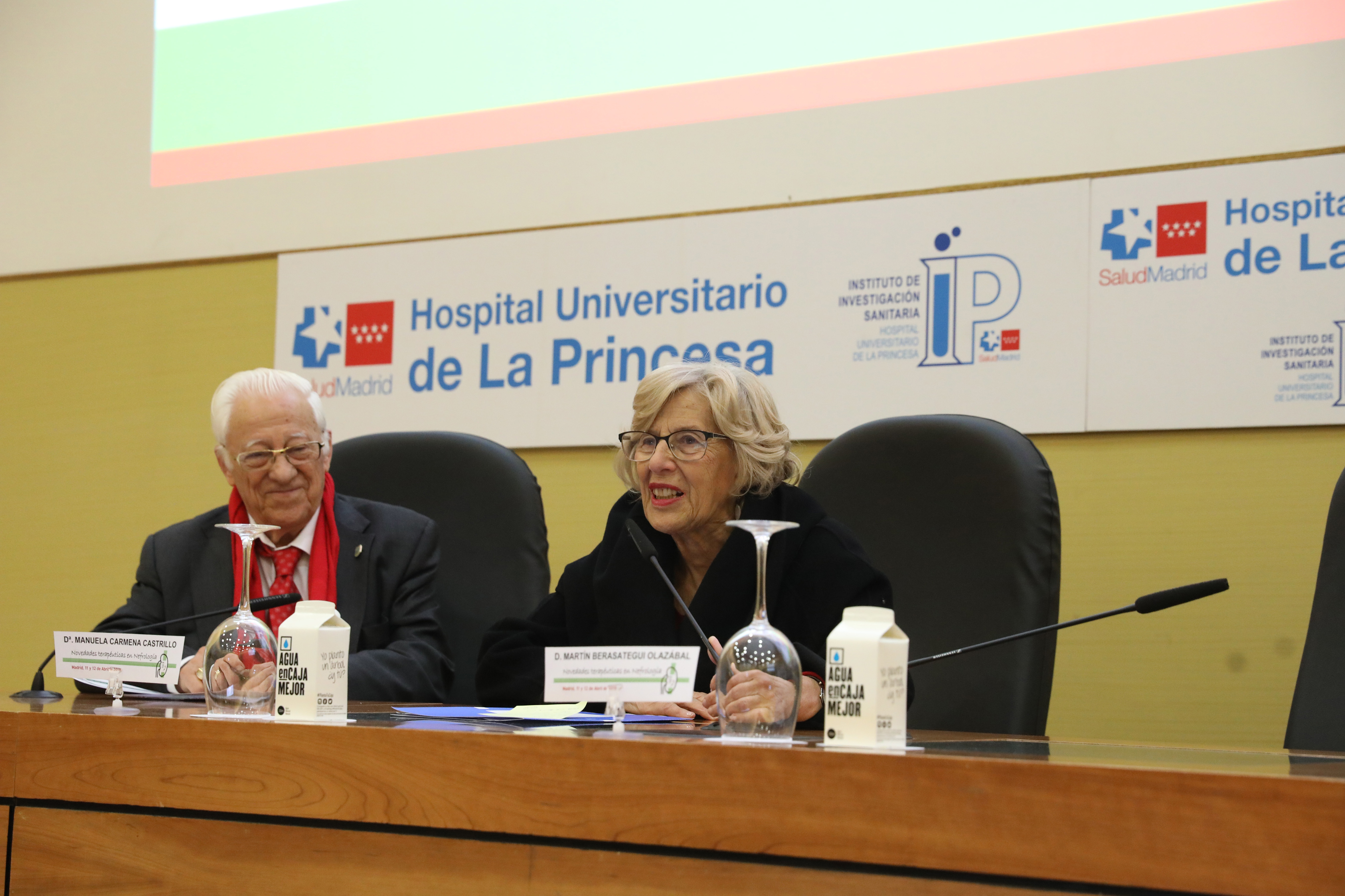 La alcaldesa de Madrid, Manuela Carmena, ha asistido hoy a la conferencia solidaria ‘Las claves del éxito’ que ha impartido el chef Martín Berasategui a beneficio de Mensajeros de la Paz, la fundación del padre Ángel García, en el Hospital de La Princesa. La conferencia cerraba el simposio titulado ‘Novedades Terapéuticas en Nefrología’ en el que, de la mano de los mejores expertos a nivel nacional e internacional, se han presentado los avances más relevantes en el tratamiento de la enfermedad renal que afecta a 850 millones de personas en el mundo y al 15% de la población española.