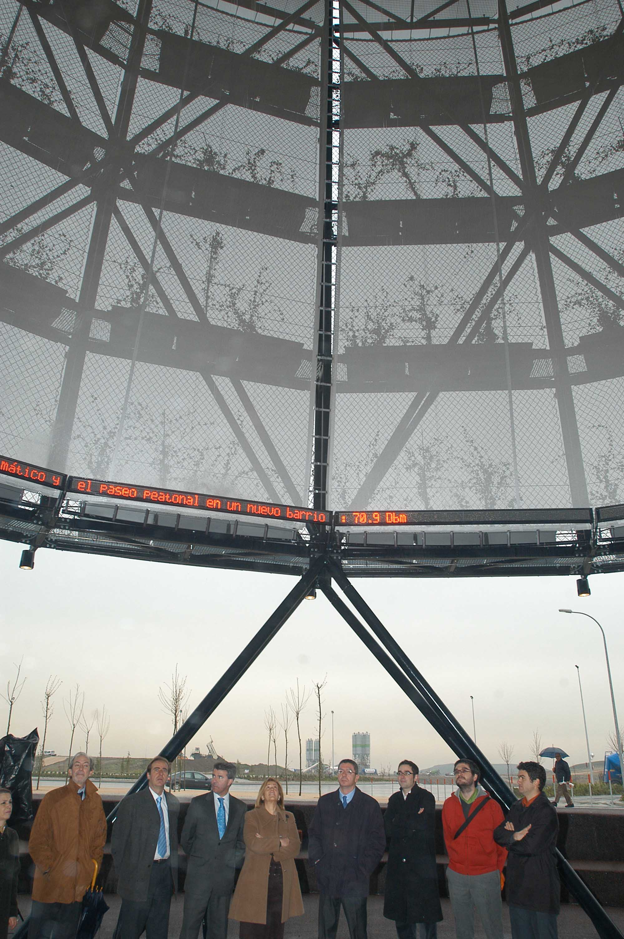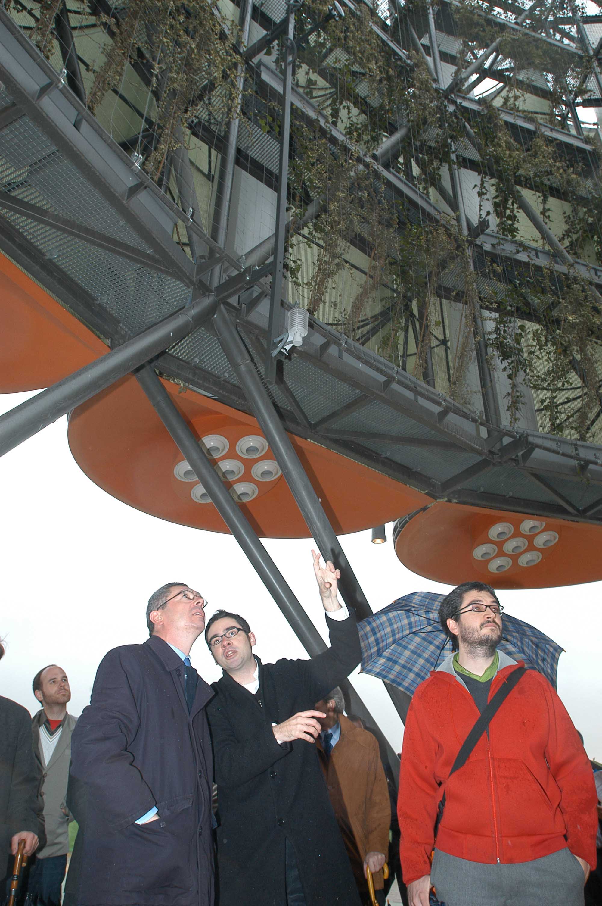 La primera parada del recorrido ha sido en el bulevar bioclimático, un proyecto de la EMVS incluido en un programa de la Unión Europea para recrear en las ciudades entornos mediterráneos, y que se caracteriza por introducir en el diseño urbano elementos de naturaleza. Para ello, explicó el alcalde, se recurre a estructuras de acero revestidas de vegetación, denominadas árboles de aire o pabellones.