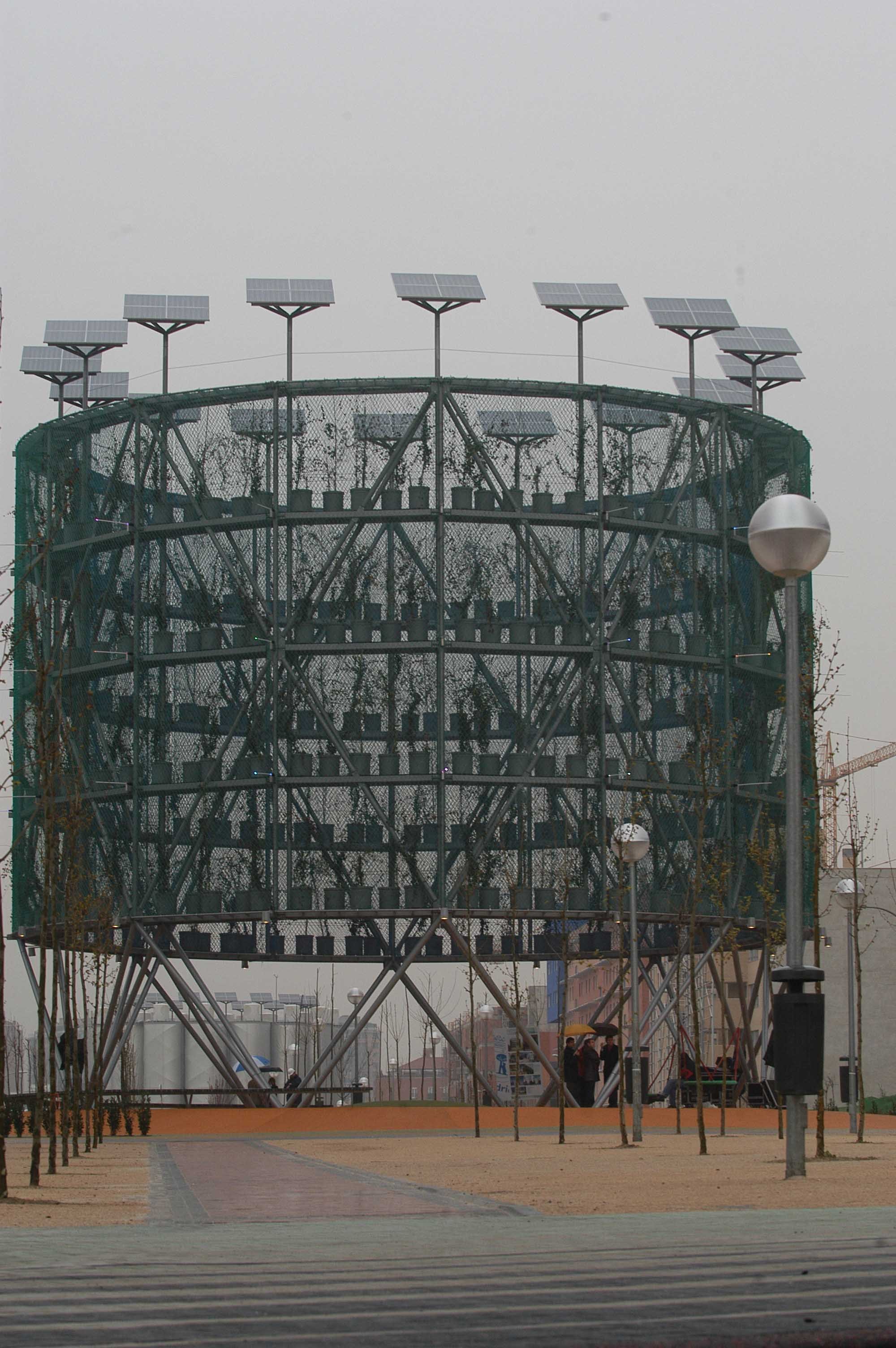 - Cada uno de los árboles está construido en un 90% con material reciclado. Su diseño permite rebajar las altas temperaturas hasta en 12º C, generar energía y reducir la contaminación