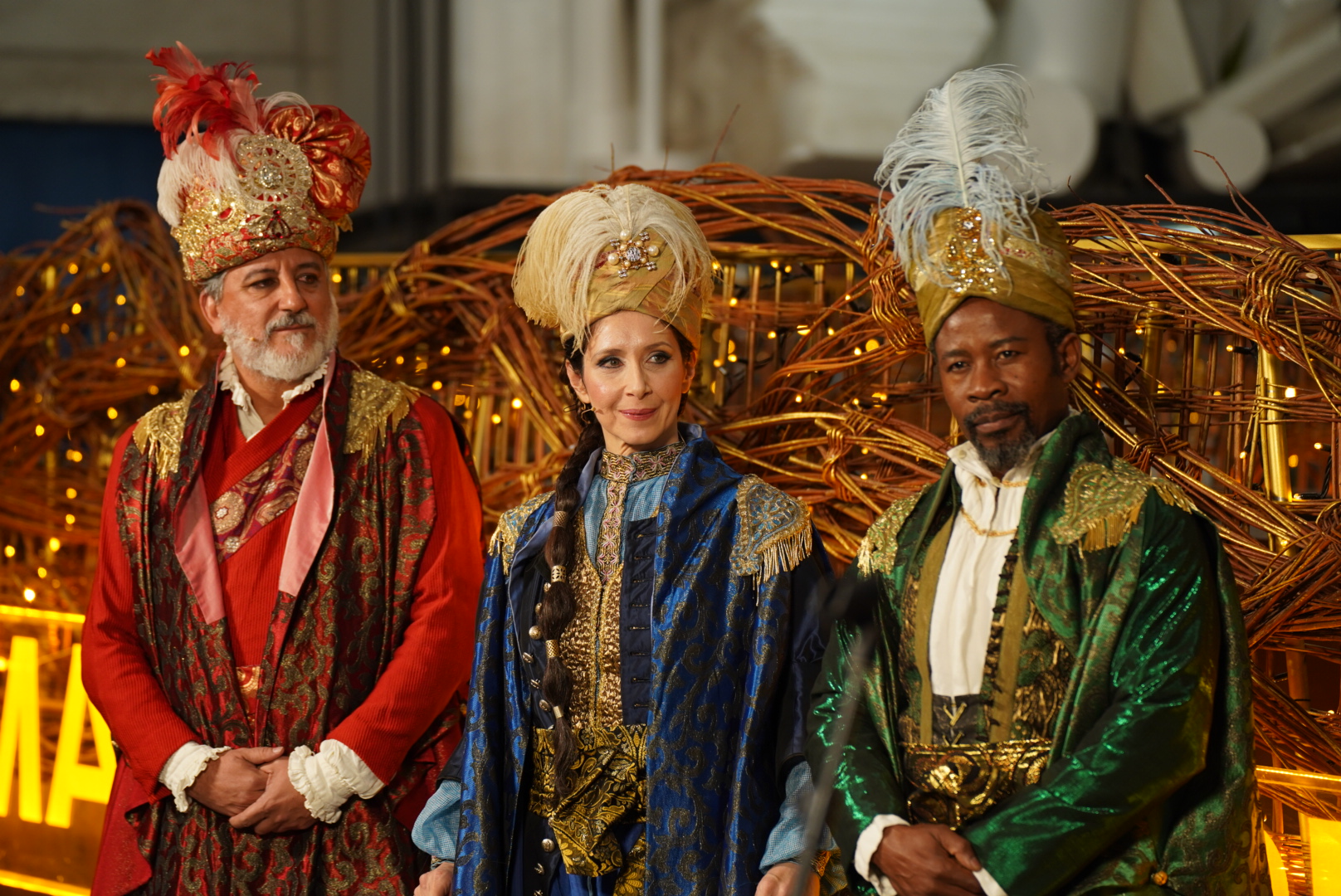 En esta grandiosa comitiva, conformada por alrededor de 1.500 personas, participarán cinco compañías nacionales y siete internacionales, más de 200 pajes reales y 15 abanderados, todos unidos para tejer la trama de una noche única. Se repartirán 1.200 kilos de caramelos desde las carrozas de los Reyes Magos. Más de cien jóvenes músicos de la banda de marcha The Blue Valley North Marching Band, de Kansas City (Estados Unidos), se unirán a la cabalgata. Con clarinetes, oboes, flautas, saxofones, piccolos, bombos, cajas y platillos, los ‘marching mustangs’ amenizarán el desfile, convirtiéndose en parte de la tradición de la cabalgata que celebra la Navidad y la llegada de los Reyes Magos junto a los madrileños.