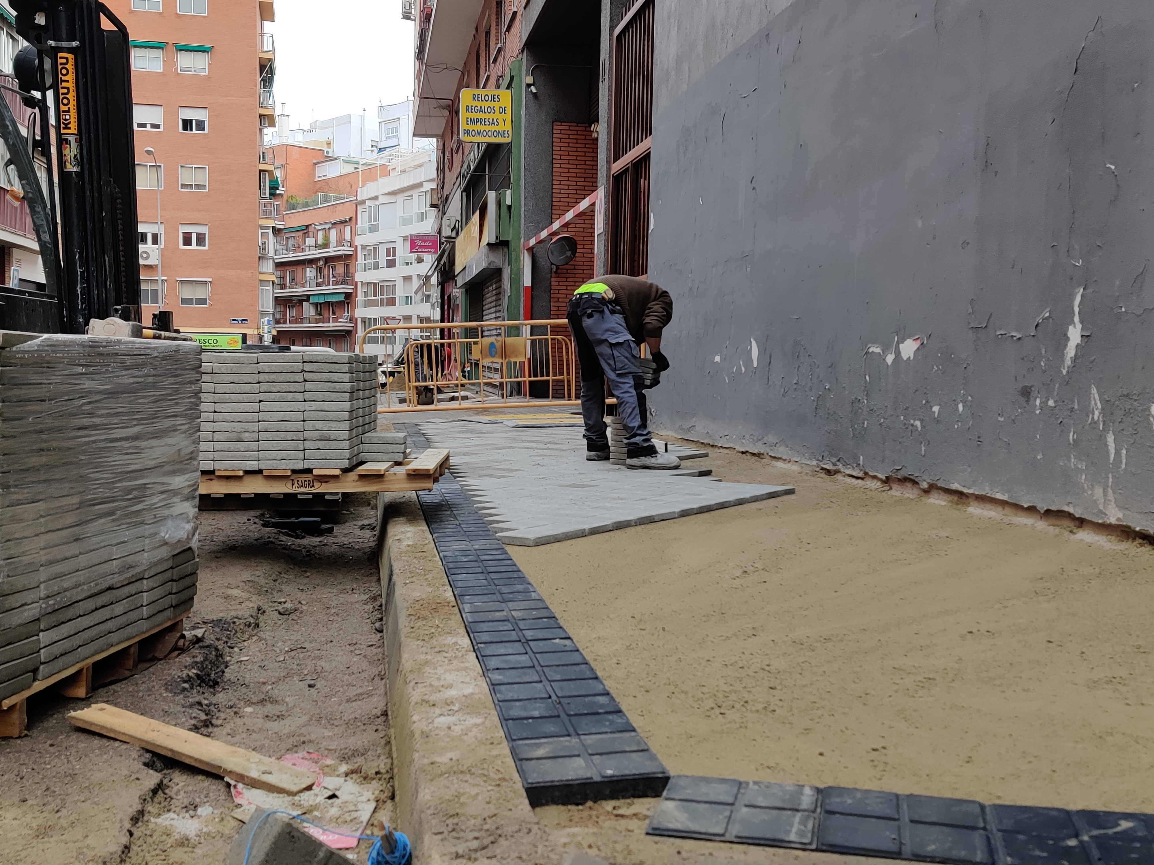 Los trabajos en la calle Fuenlabrada consisten en la redistribución del espacio para dotar de accesibilidad a las aceras, que actualmente son demasiado estrechas. Para lograrlo, el proyecto suprime un sentido de circulación. De esta manera se consigue reducir la calzada para así ampliar las aceras sin necesidad de eliminar plazas de aparcamiento. Asimismo, el tráfico de vehículos podrá ser más cómodo y seguro.