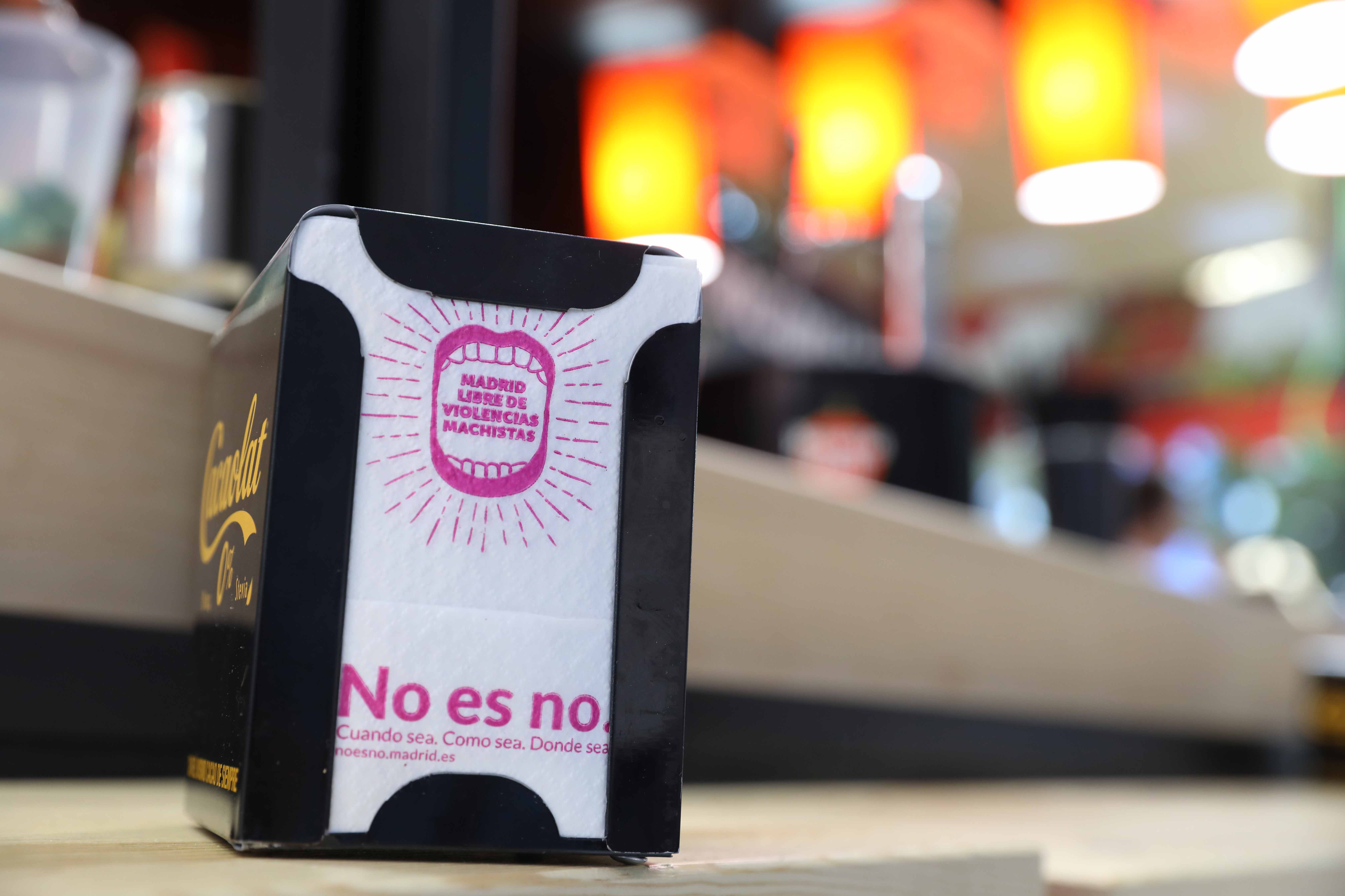 “No es no. Cuando sea. Como sea. Donde sea. Madrid libre de violencias machistas”. El lema de la campaña que el Ayuntamiento de Madrid lanzó en julio ya está en la calle y en las redes. En las fiestas del distrito Centro los materiales con este mensaje se han repartido en casetas y establecimientos. Además, los videos de personas del mundo del cine, la música y la televisión registran tasas récord de difusión en redes sociales.