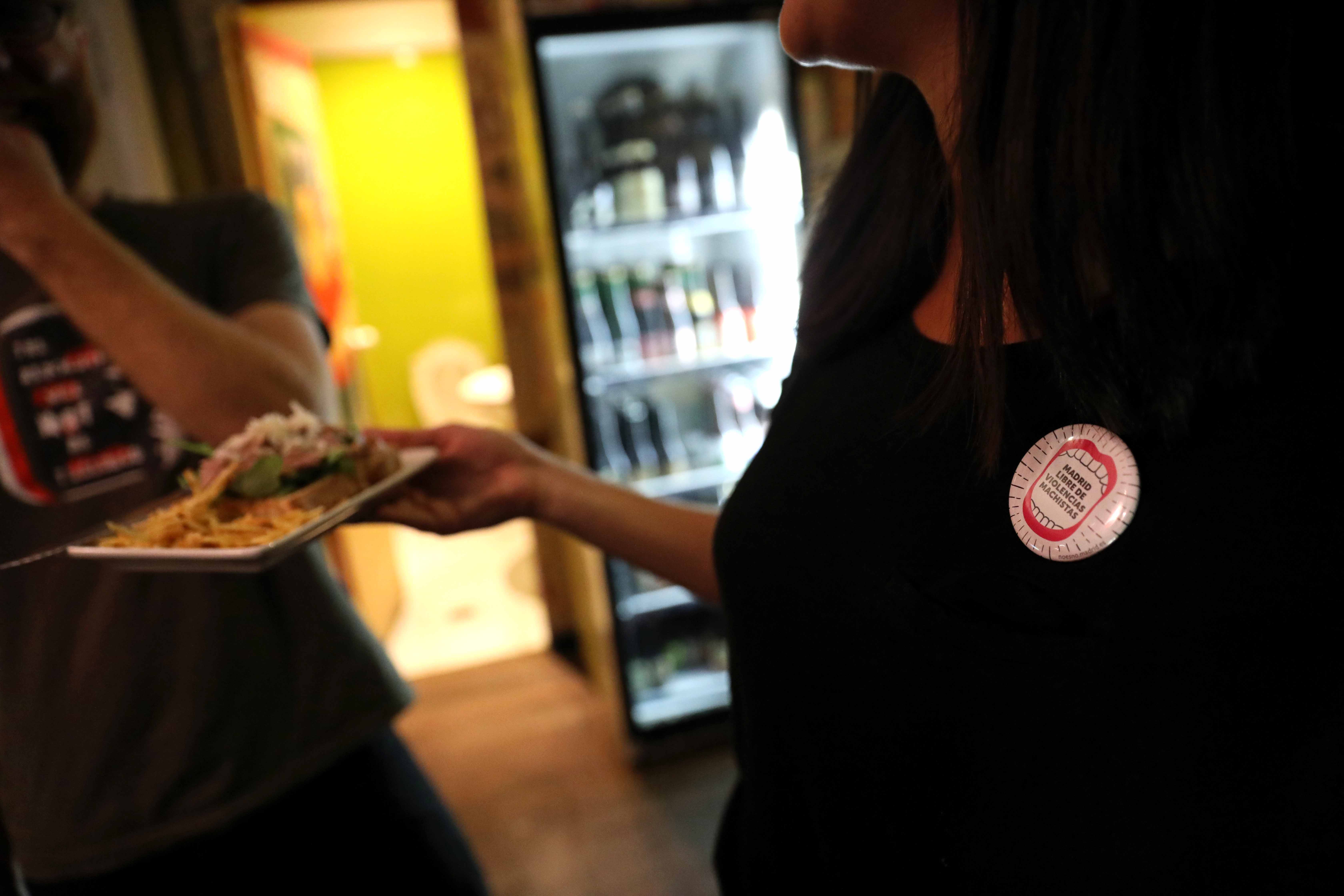 - En las fiestas del distrito Centro se han repartido tarjetas de orientación, chapas, pegatinas, carteles y servilletas con el lema de la campaña