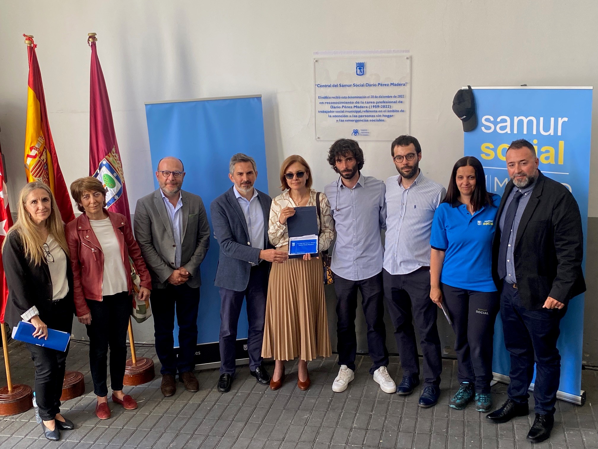 La central donde trabajan los equipos del Samur Social pasa a llamarse, desde hoy, Central del Samur Social Darío Pérez Madera en reconocimiento a la atención a las personas sin hogar y las emergencias sociales por parte del que fuera jefe del departamento del Samur Social desde su creación hasta 2022. Una placa así lo recuerda en la central del Samur Social, situada en la Carrera de San Francisco, 10.