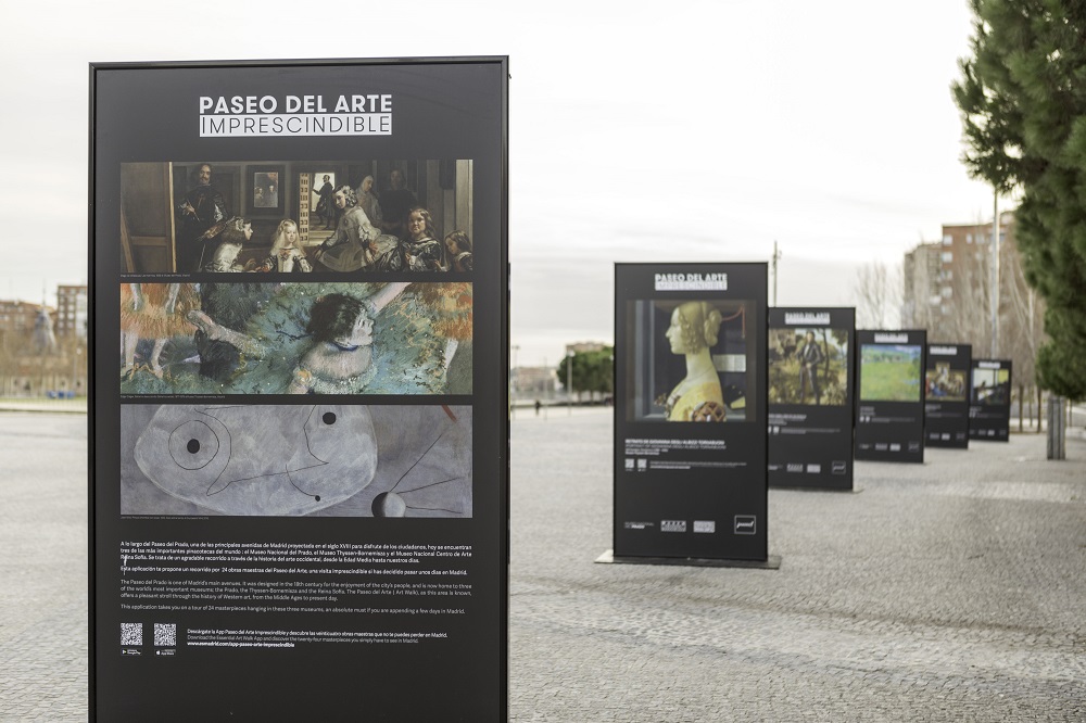 - La exposición incluye 14 estructuras que dan a conocer 24 de las obras de arte más destacadas de las tres grandes pinacotecas del Museo del Paseo del Arte: El Prado, el Thyssen-Bornemisza y el Reina Sofía