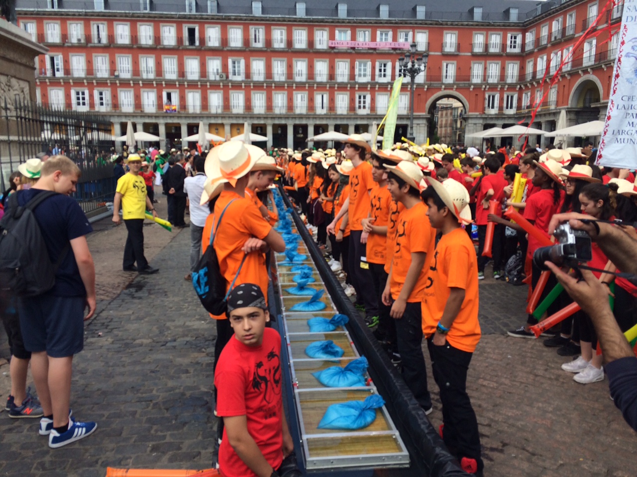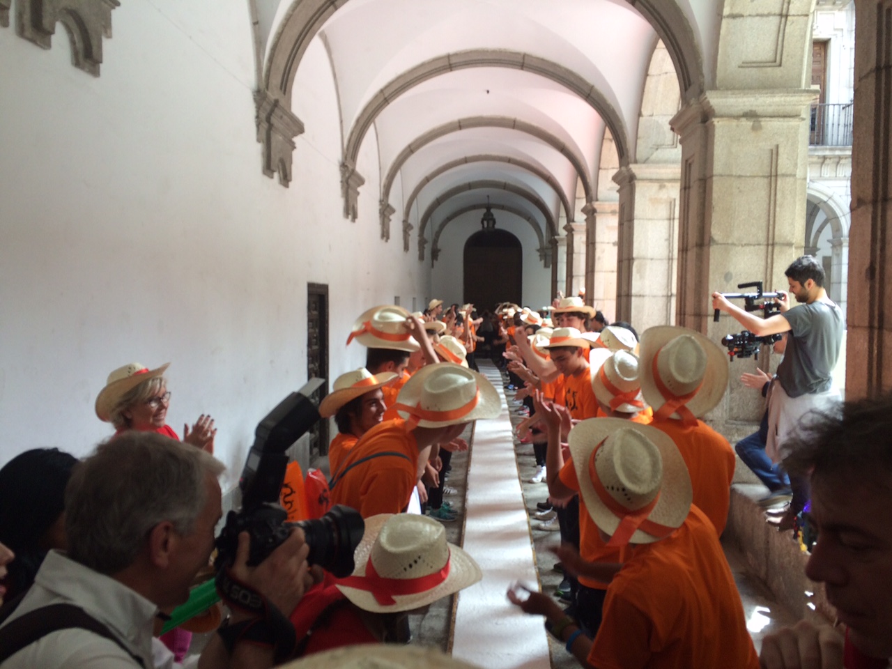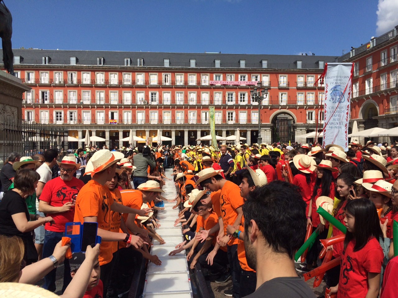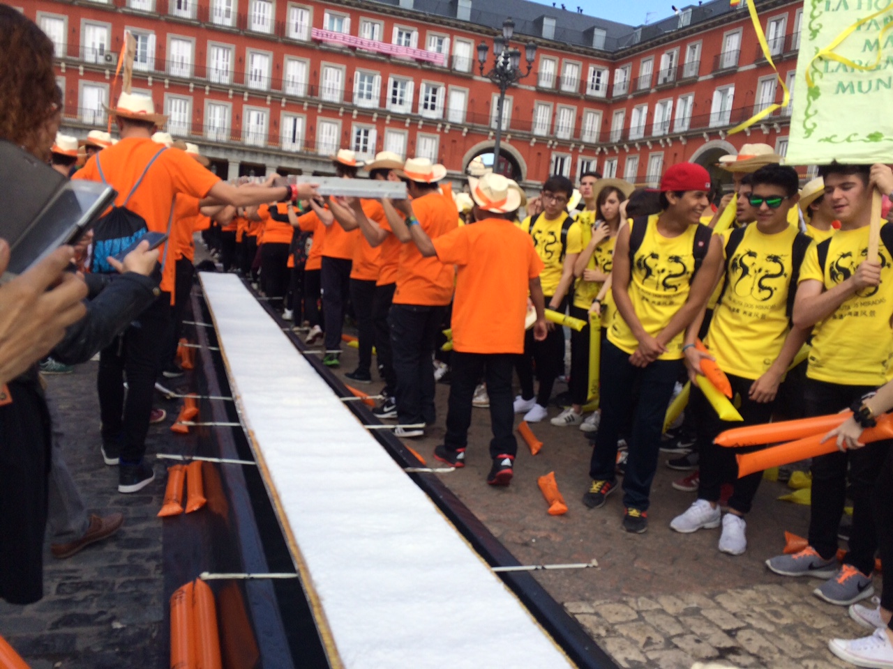Acto de la fabricación del papel artesano más largo del mundo en la Plaza Mayor