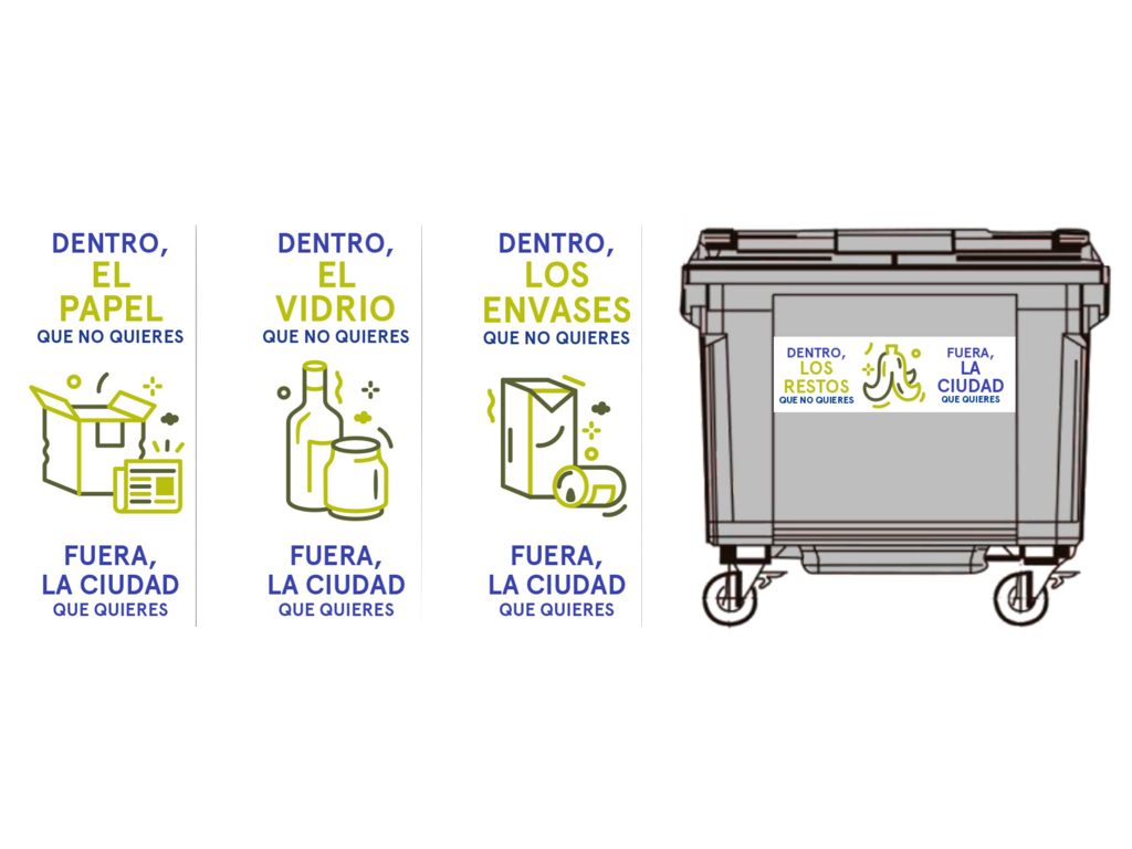 - Carteles en autobuses, en marquesinas, en camiones de recogida y contenedores, señales en la calle, formación en los colegios y en las Juntas Municipales de distrito, son algunas de las actuaciones que conforman esta campaña
